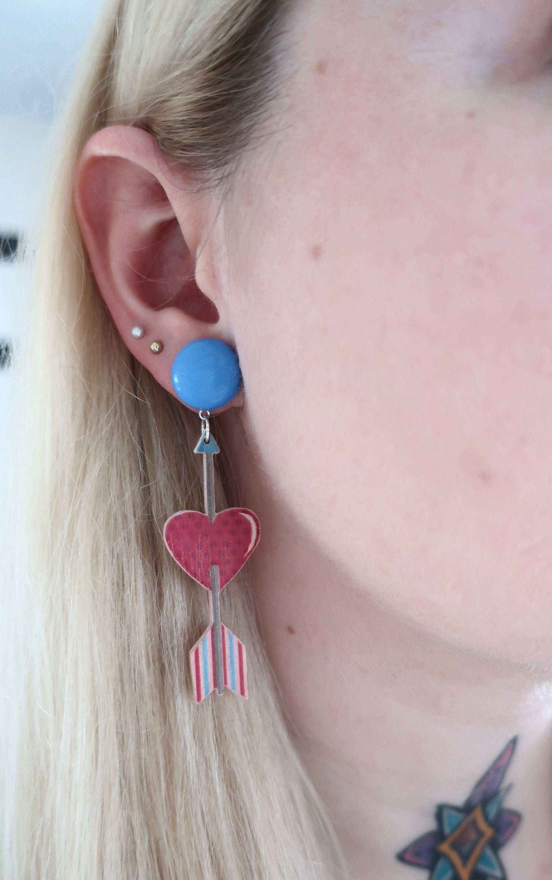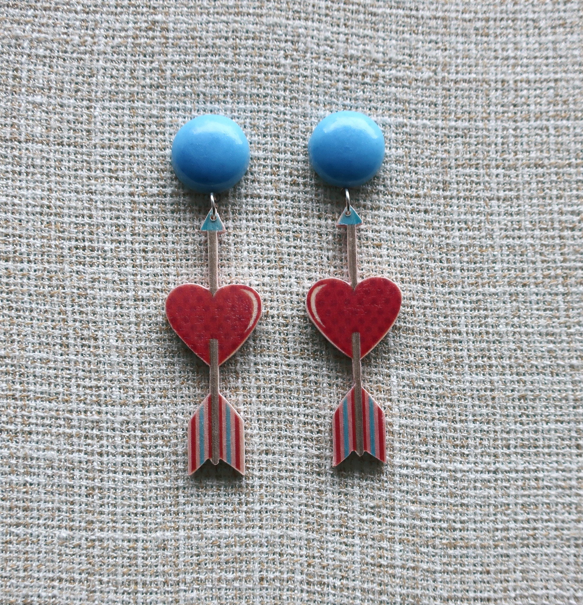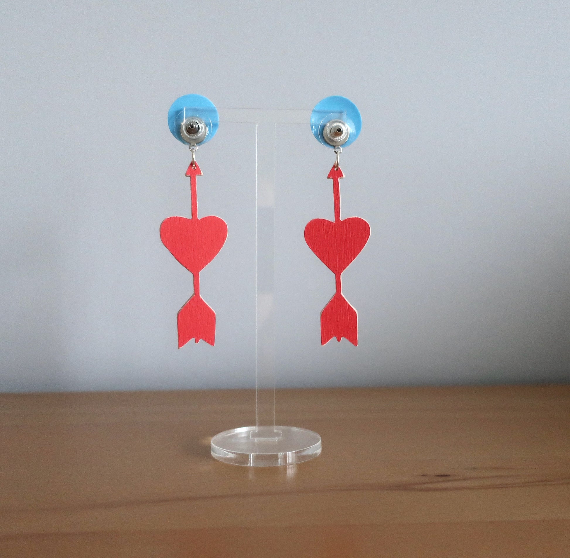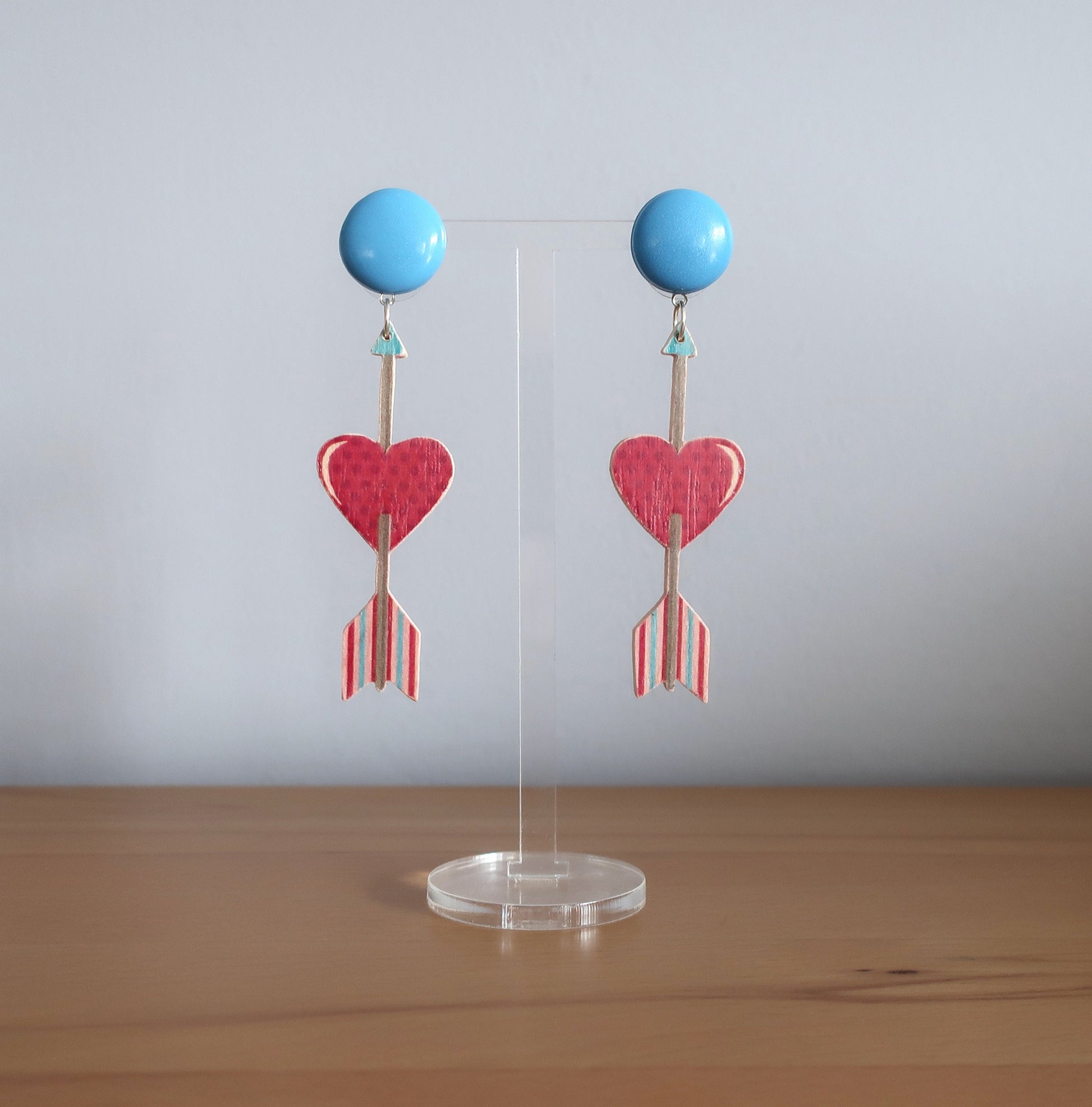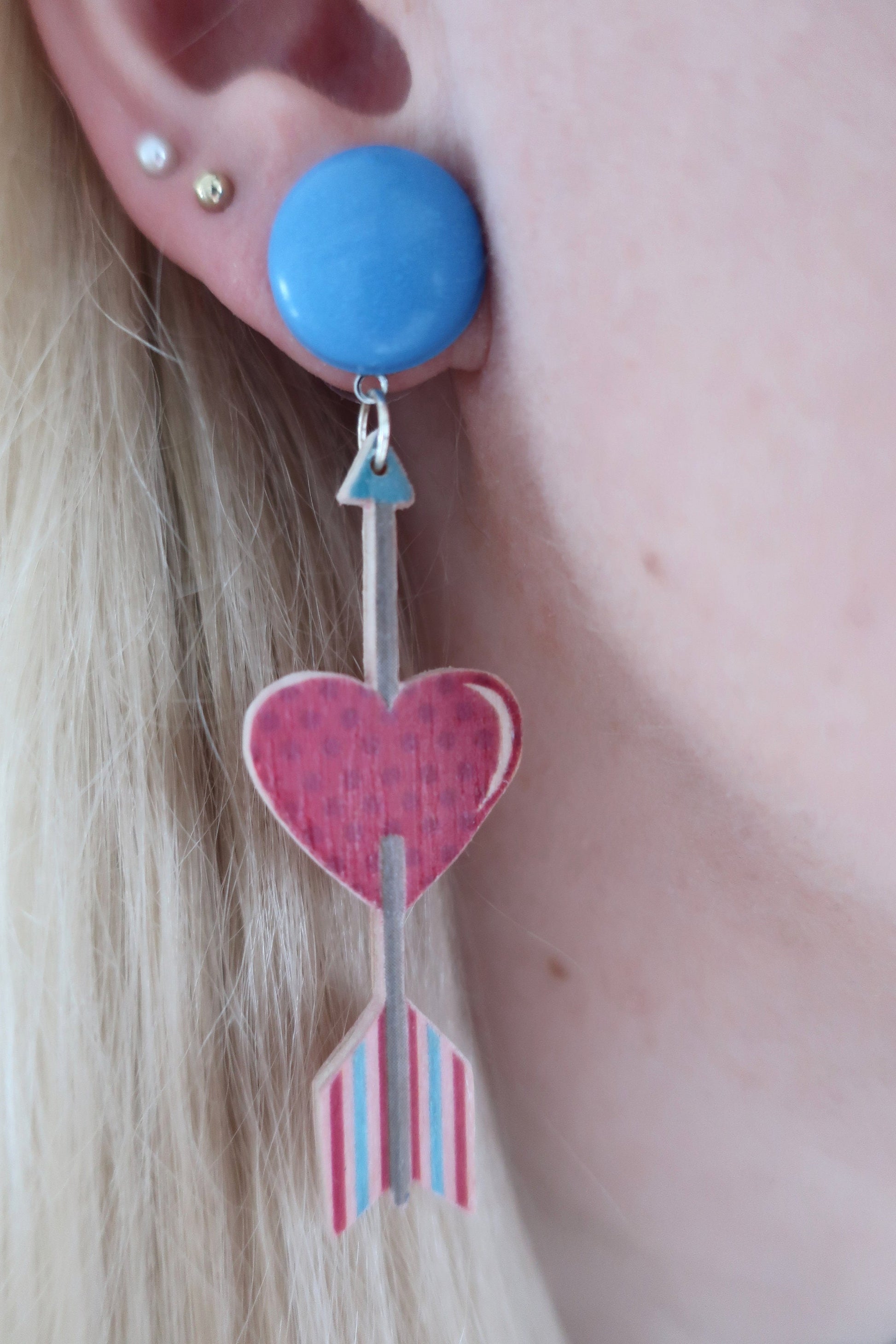 Für diese Ohrringe habe ich eine Zeichnung am Computer erstellt, die ich anschließend manuell auf Birkenholz übertragen und dann mit einer Dekupiersäge ausgesägt habe. Um die Haltbarkeit zu verbessern wurde eine Schicht matter Lack aufgetragen.