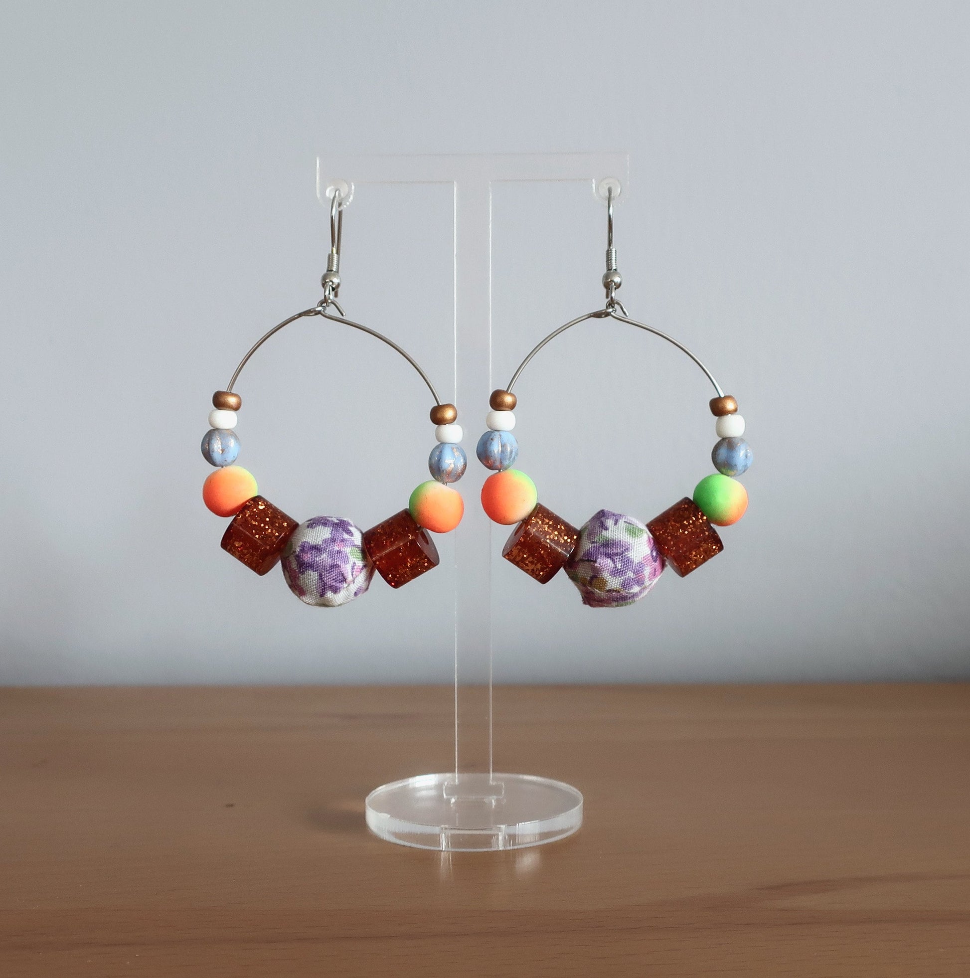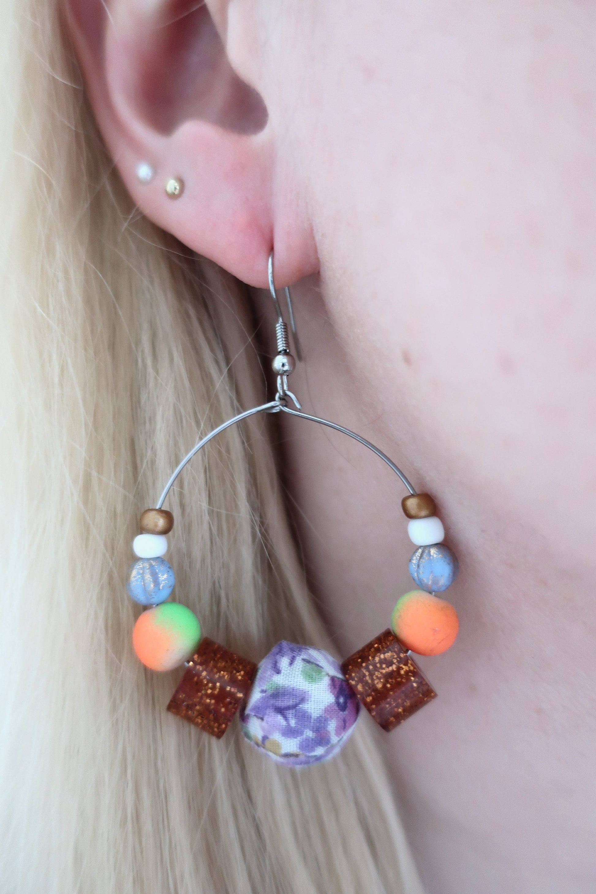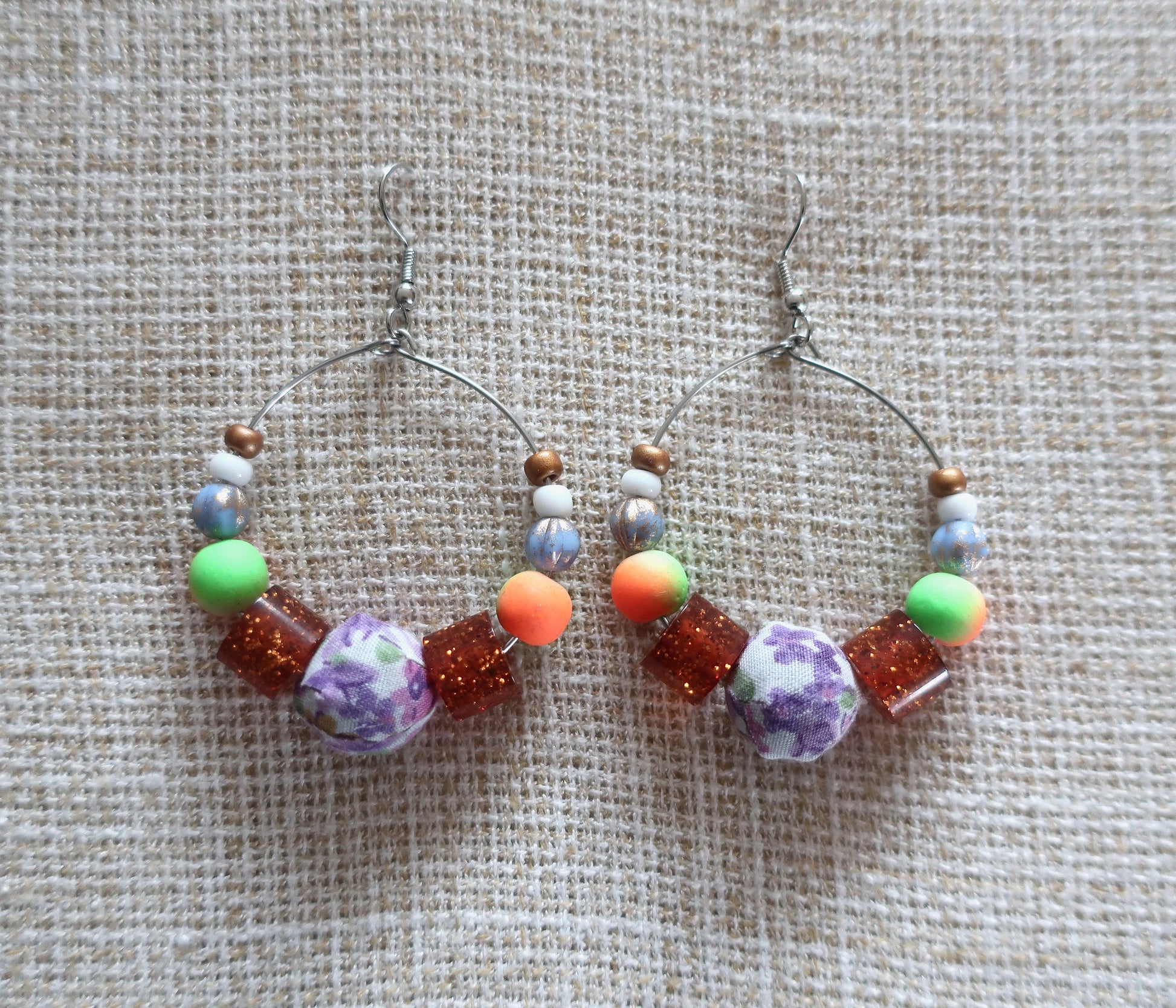 Materialien: Plastikperlen, Glasperlen, Stoffperlen, Edelstahlcreolen, Messinghaken