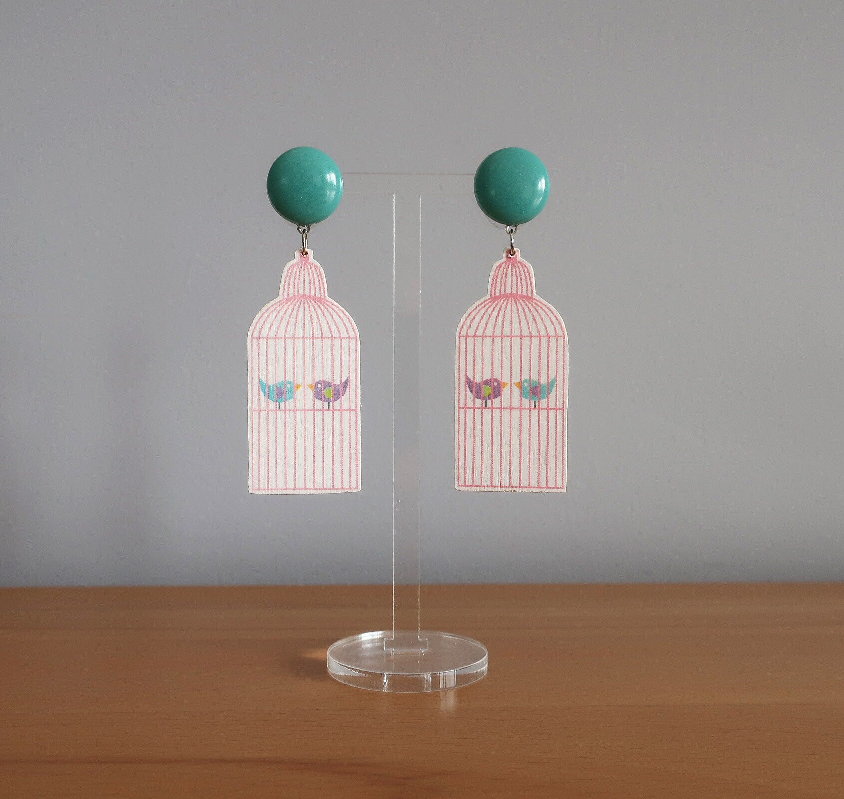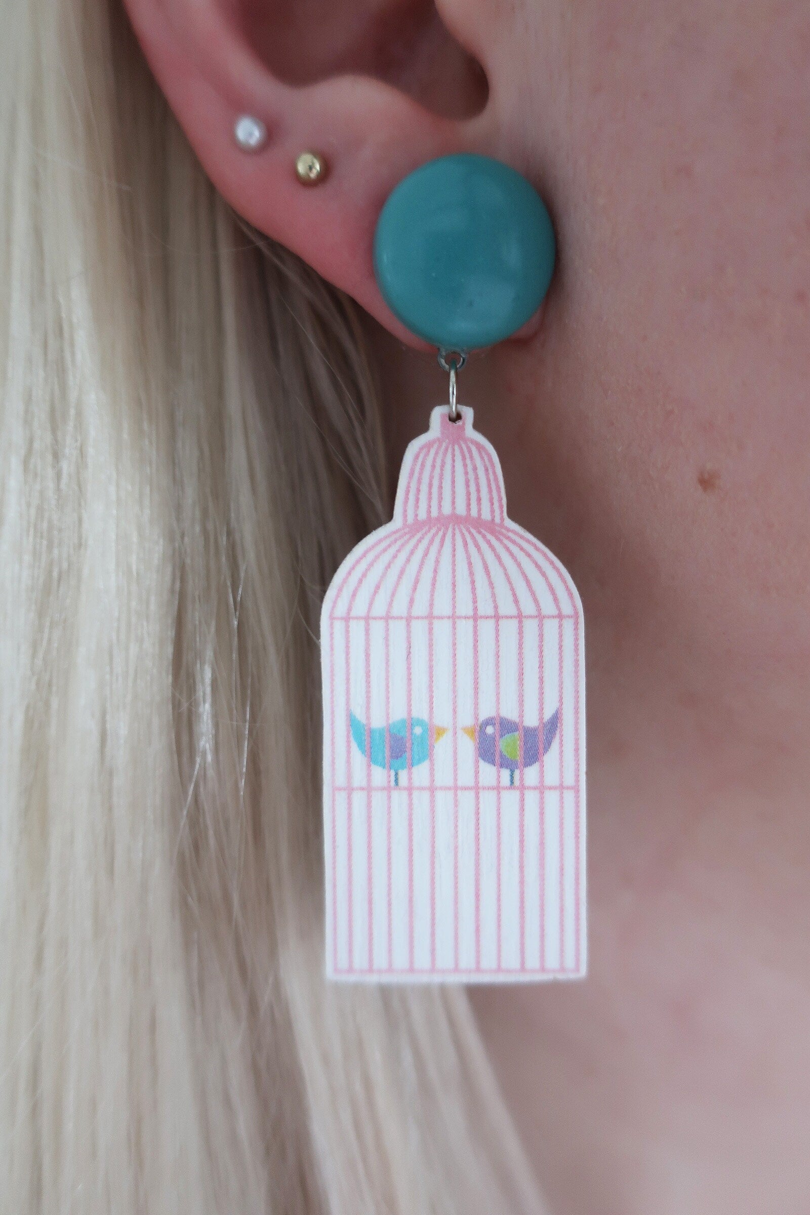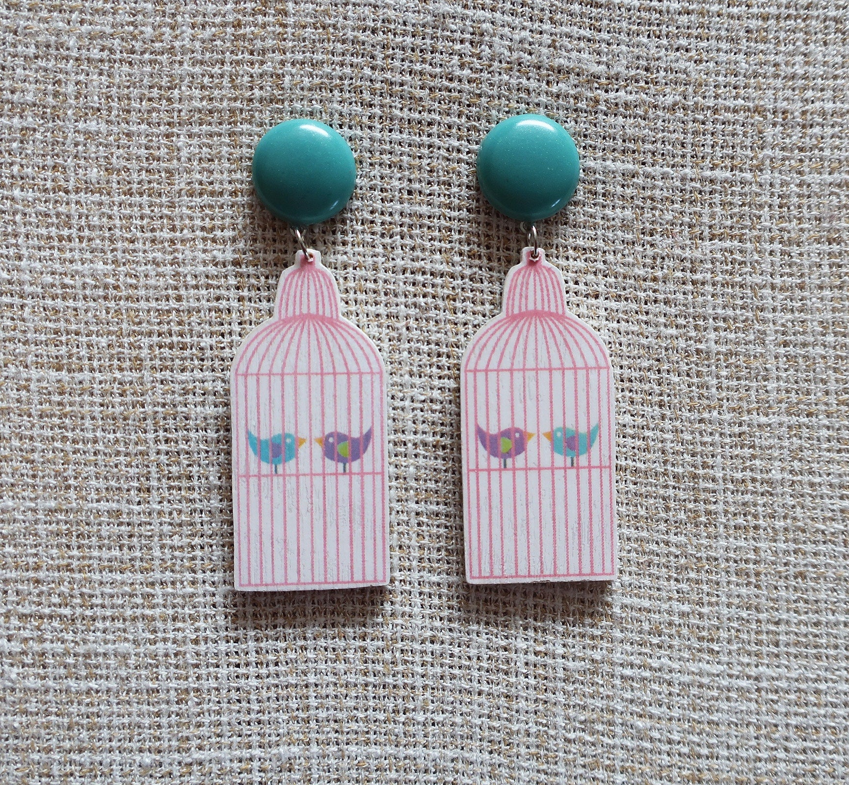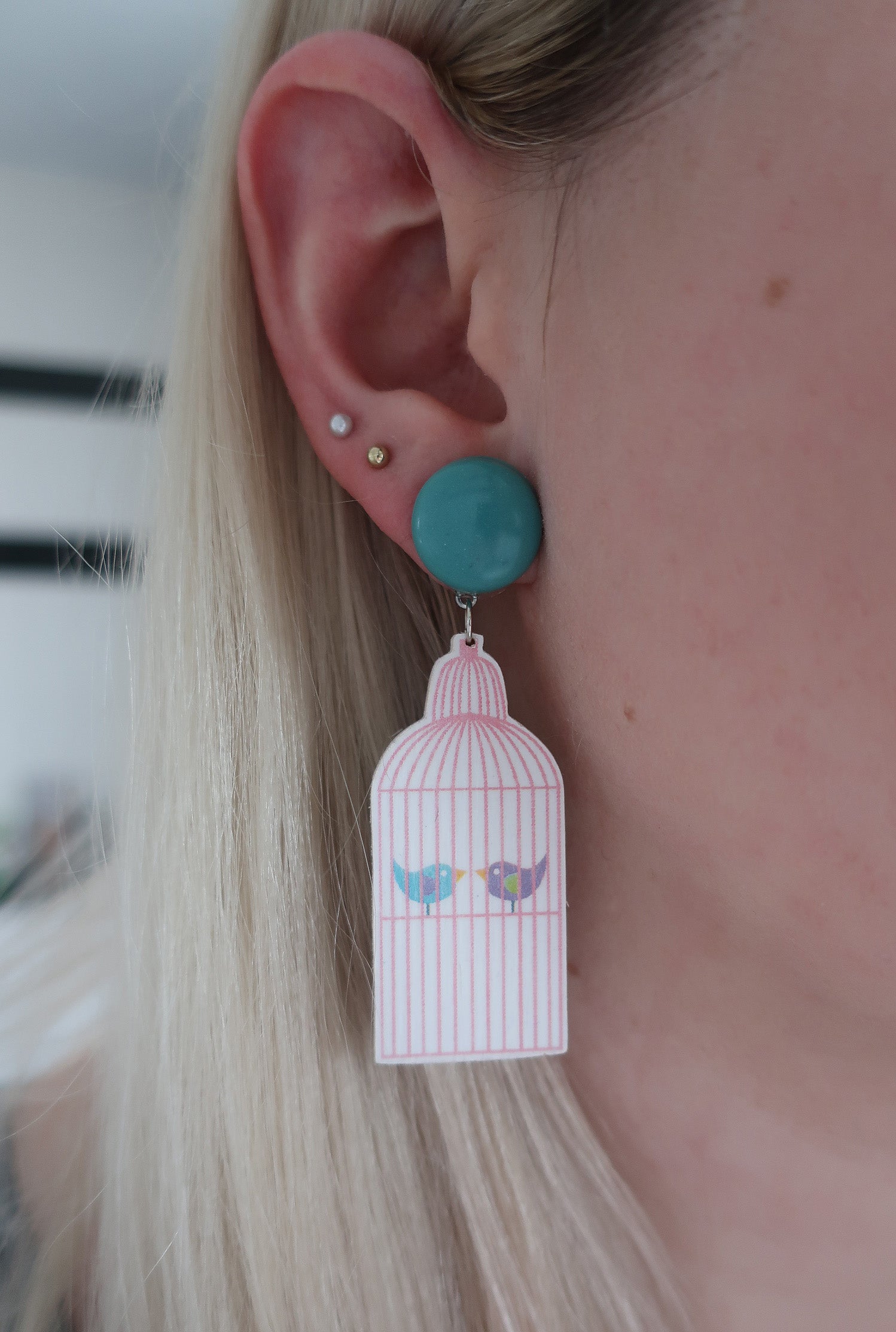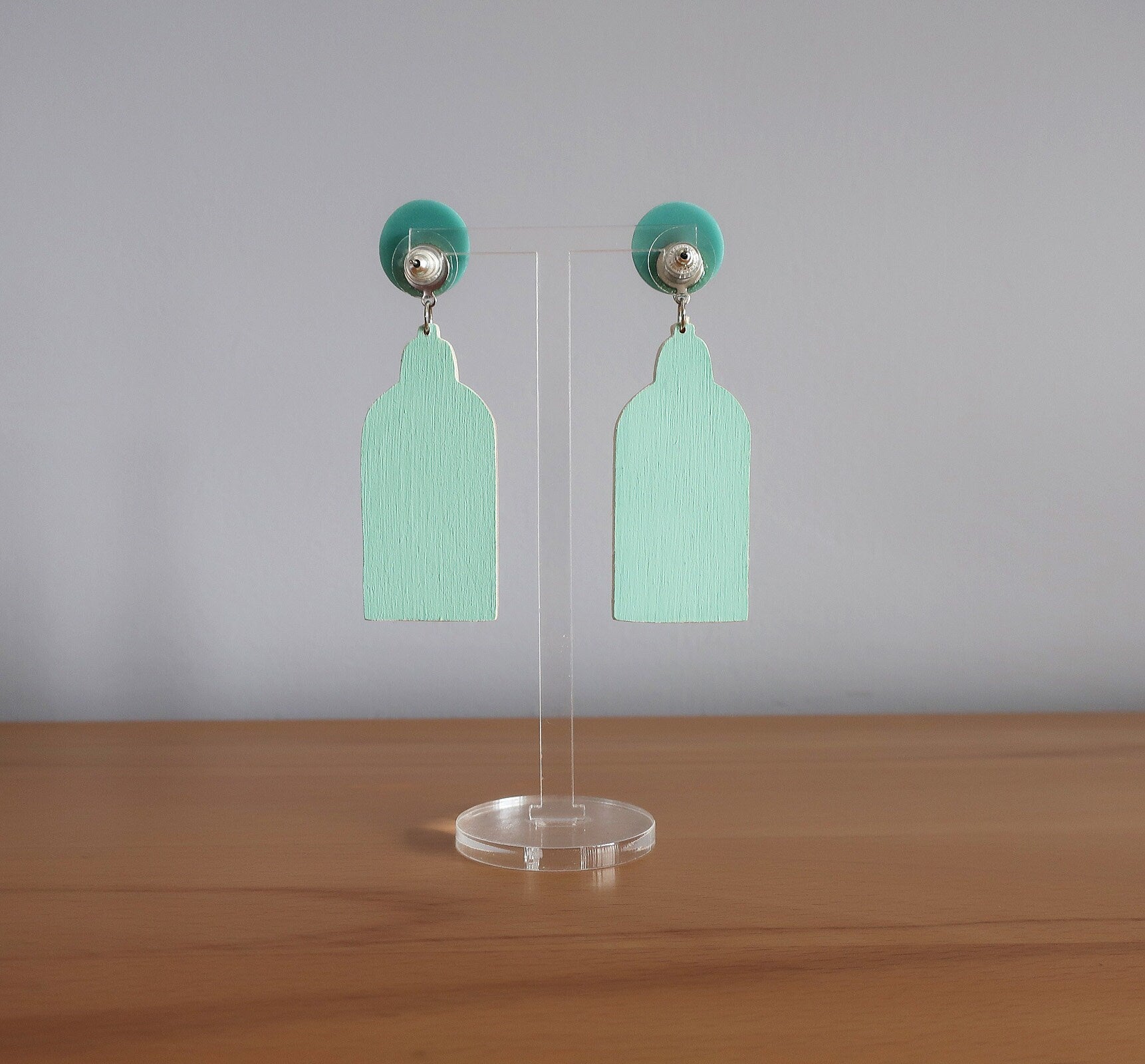 Für diese Ohrringe habe ich eine Zeichnung am Computer erstellt, die ich anschließend manuell auf Birkenholz übertragen und dann mit einer Dekupiersäge ausgesägt habe. Um die Haltbarkeit zu verbessern wurde eine Schicht matter Lack aufgetragen.