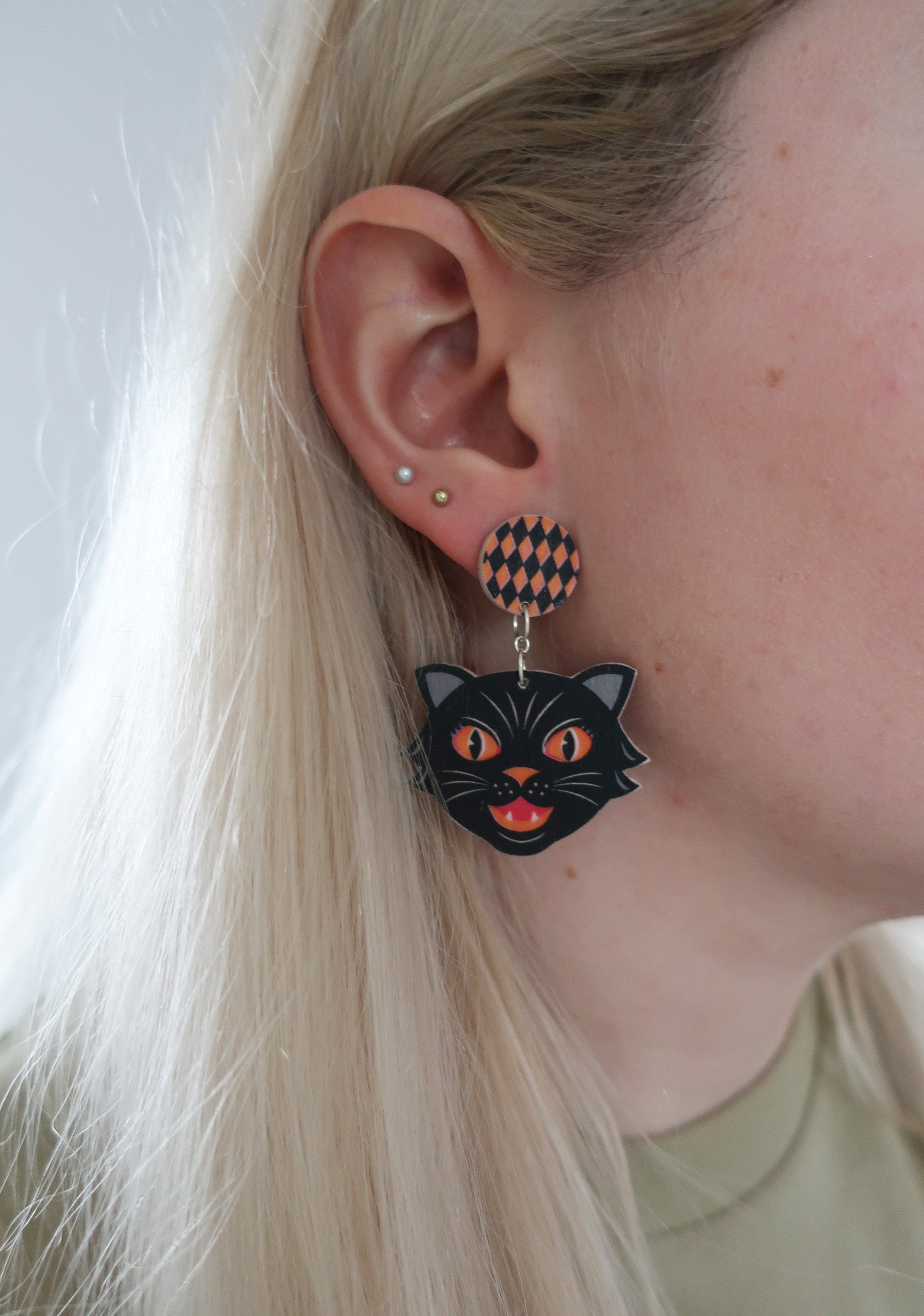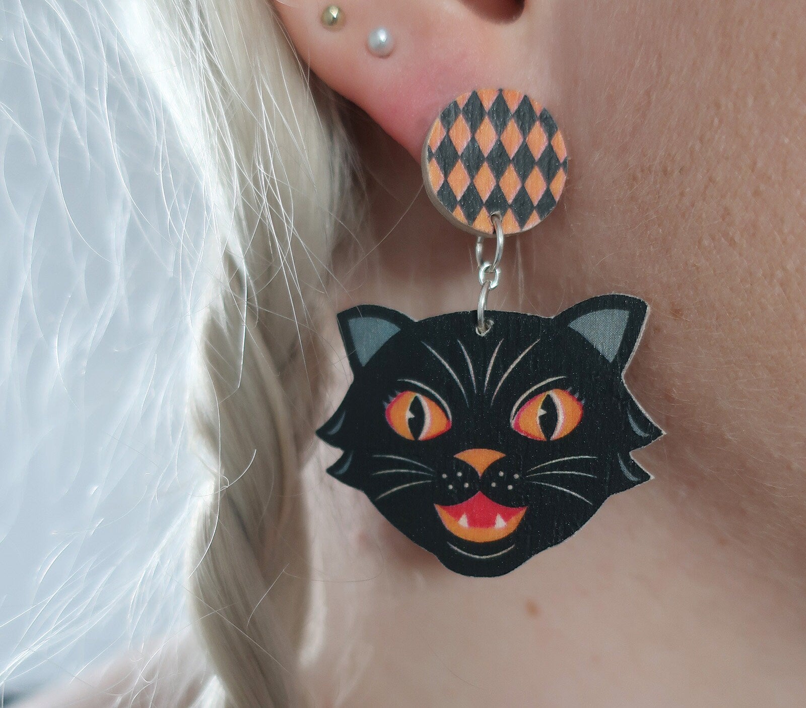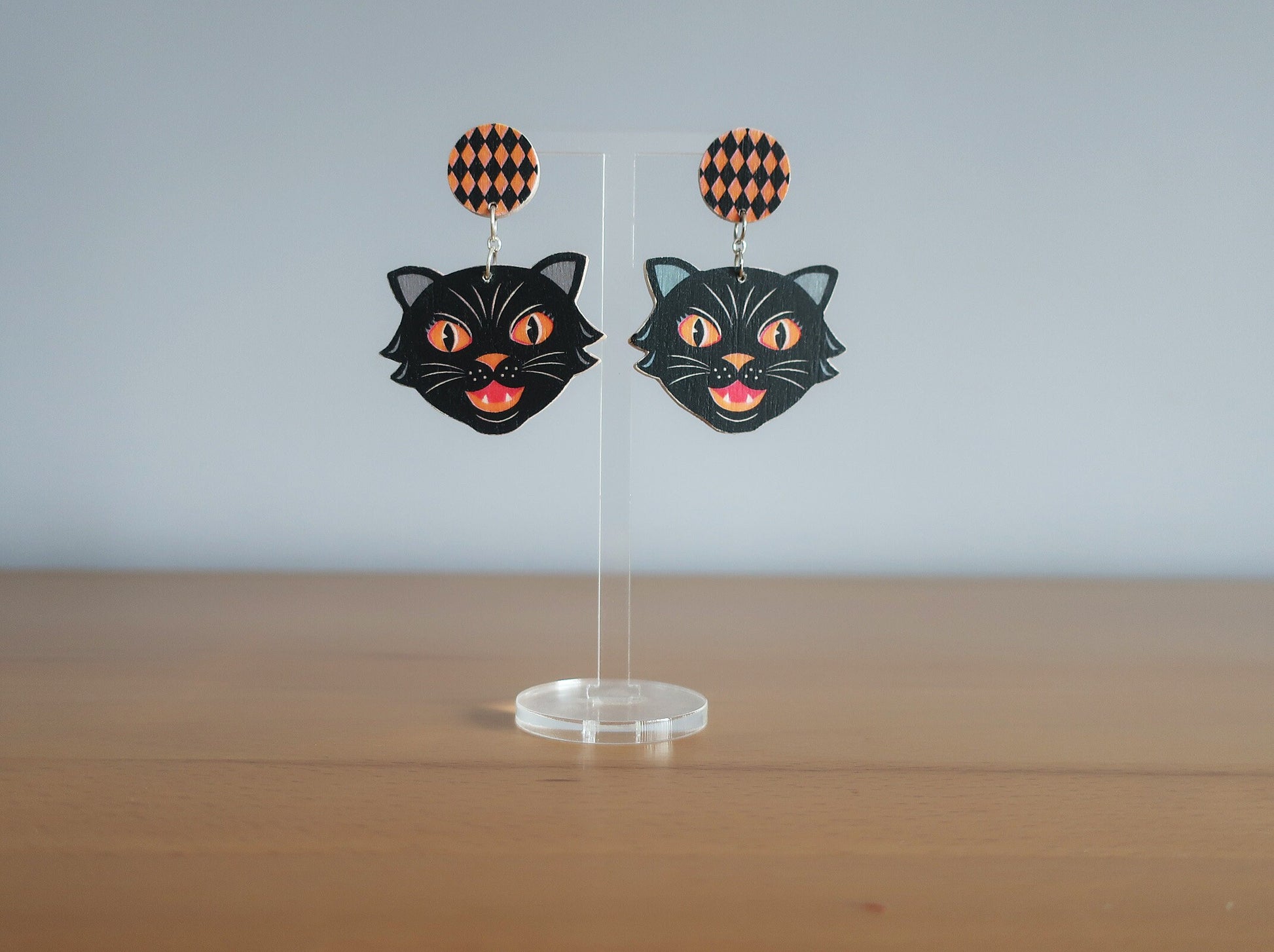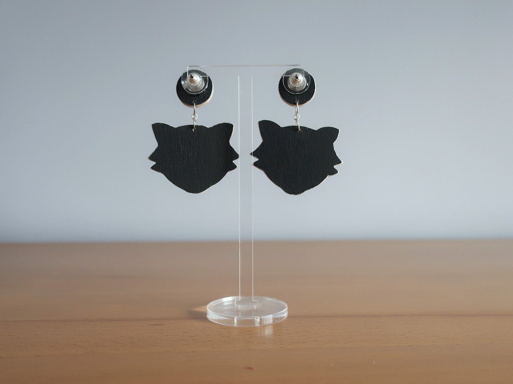 Für diese Ohrringe habe ich eine Zeichnung am Computer erstellt, die ich anschließend manuell auf Birkenholz übertragen und dann mit einer Dekupiersäge ausgesägt habe. Um die Haltbarkeit zu verbessern wurde eine Schicht matter Lack aufgetragen.