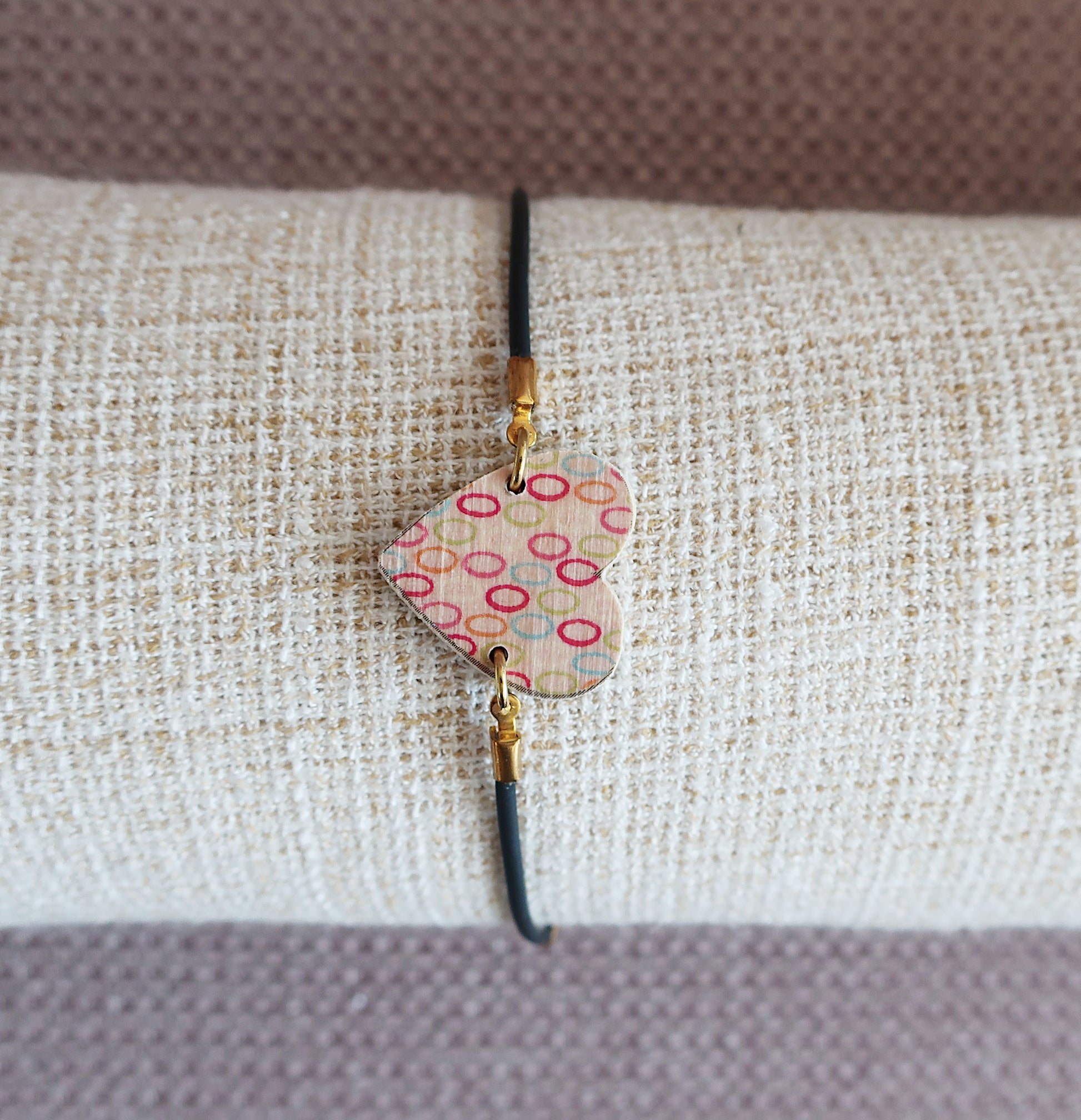 Schwarzes Kautschukarmband mit gemustertem Herz-Charm