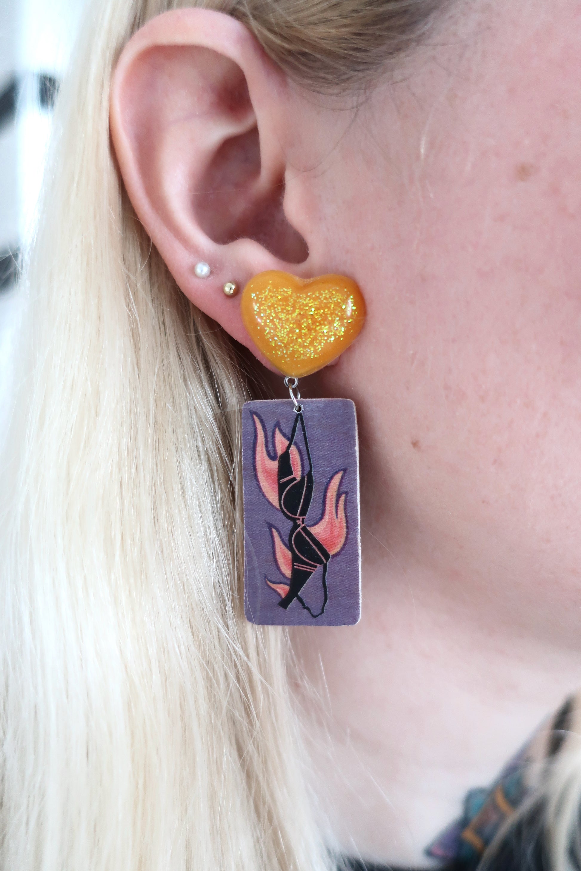 Materialien: Birkensperrholz, Epoxidharz, Glitzer, Edelstahlstecker, Binderinge