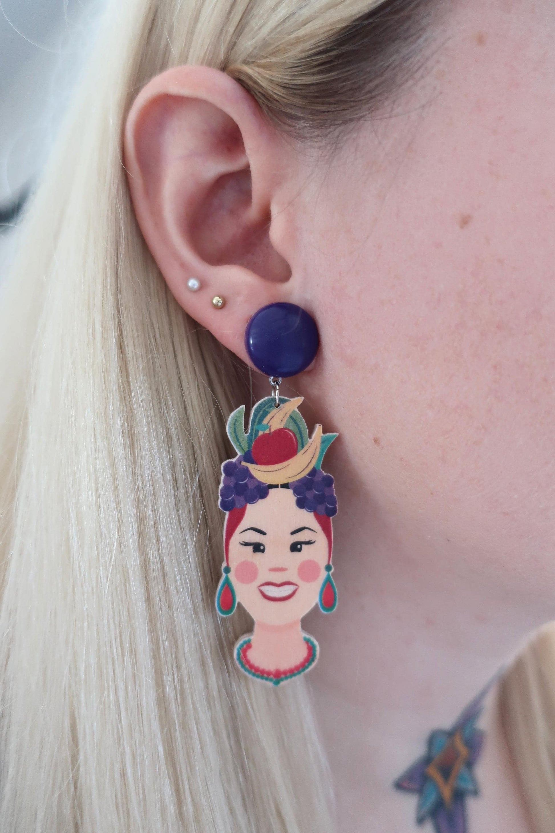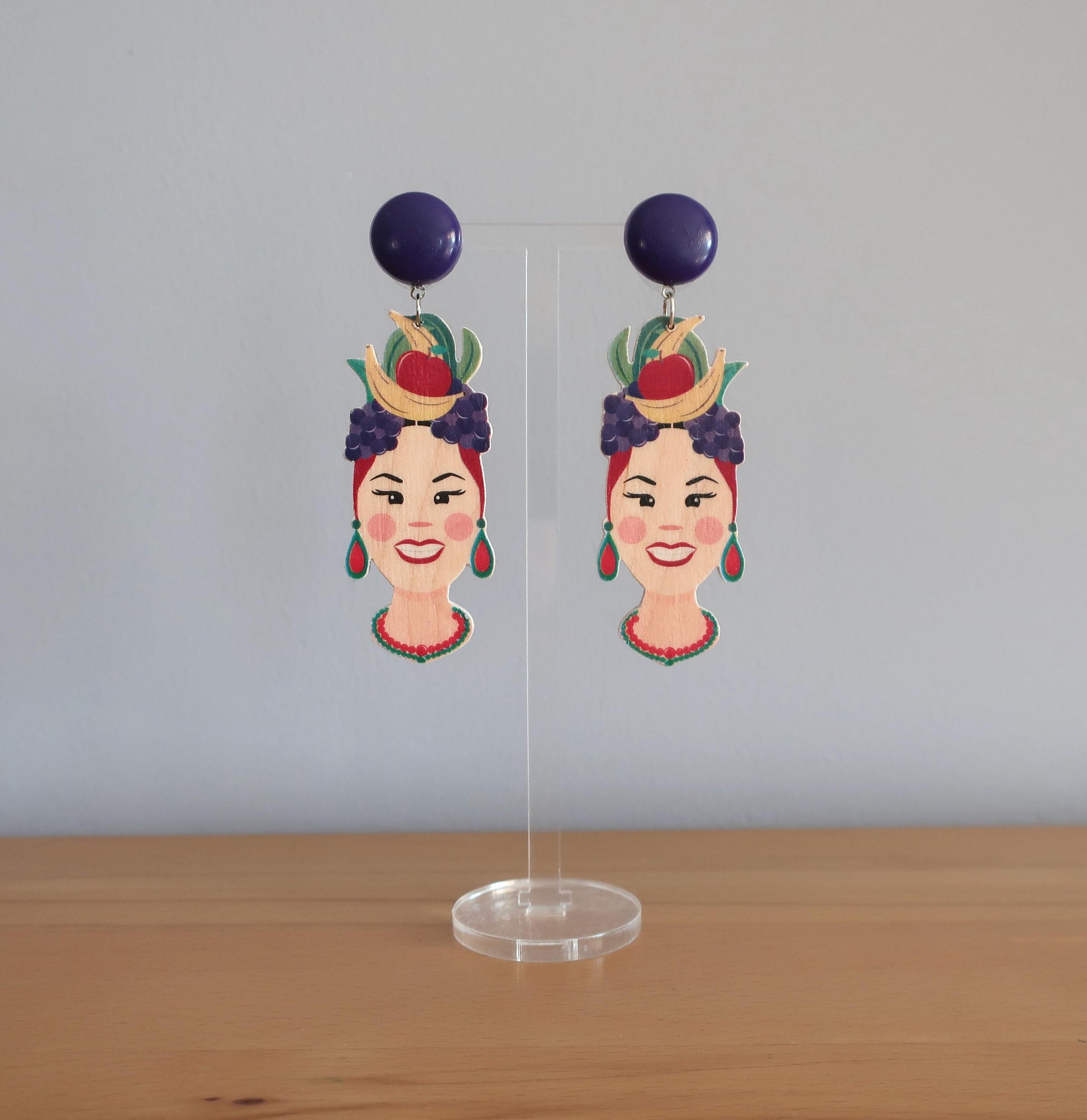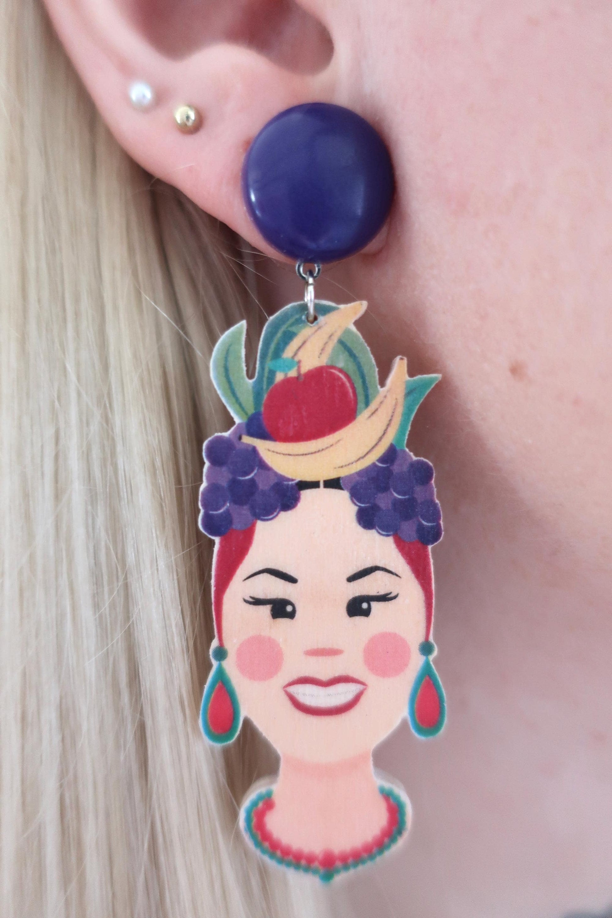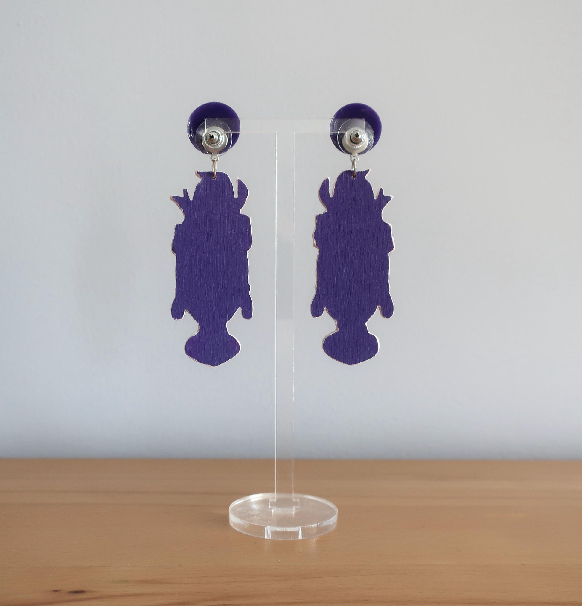 Für diese Ohrringe habe ich eine Zeichnung am Computer erstellt, die ich anschließend manuell auf Birkenholz übertragen und dann mit einer Dekupiersäge ausgesägt habe. Um die Haltbarkeit zu verbessern wurde eine Schicht matter Lack aufgetragen.