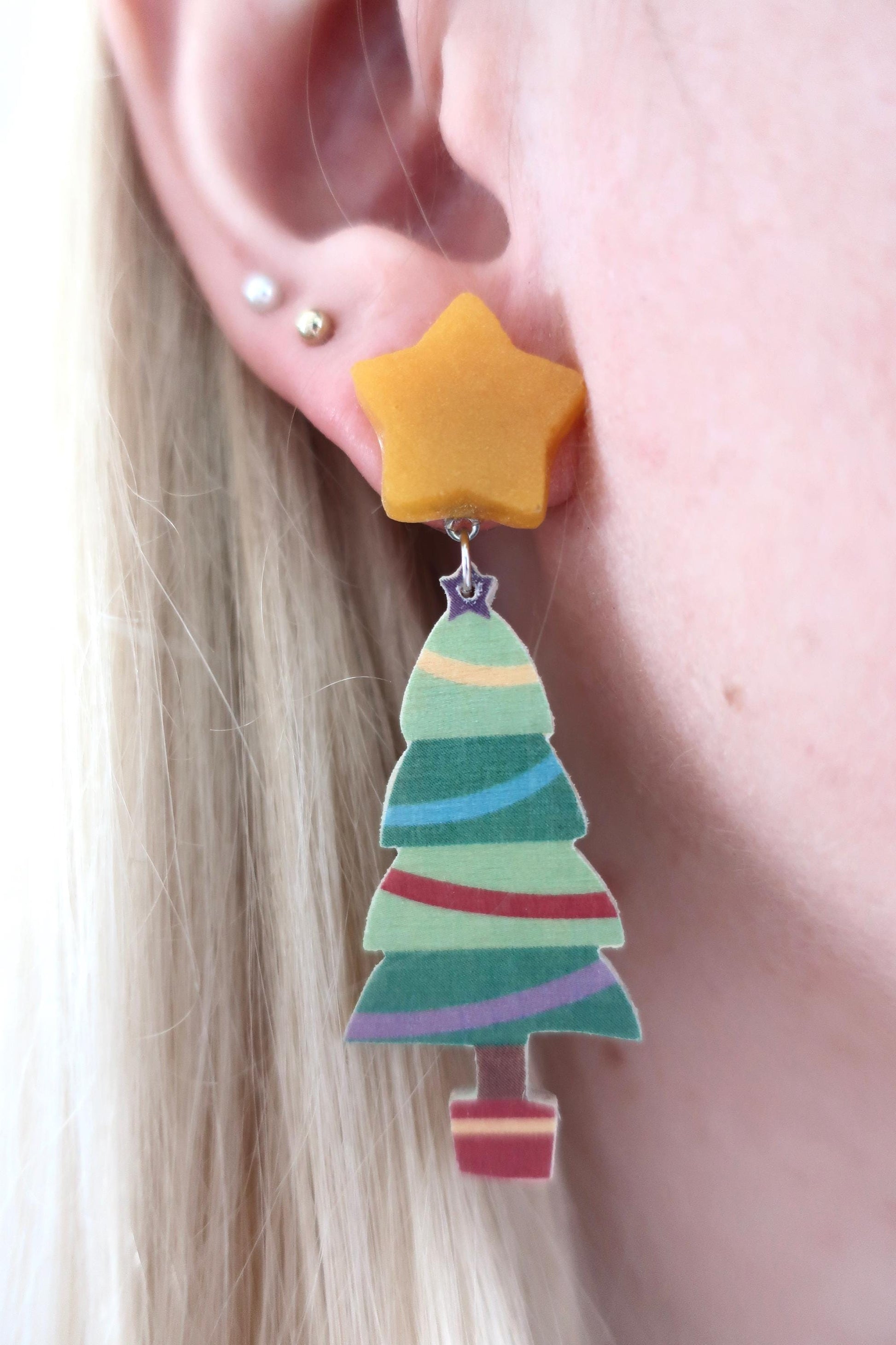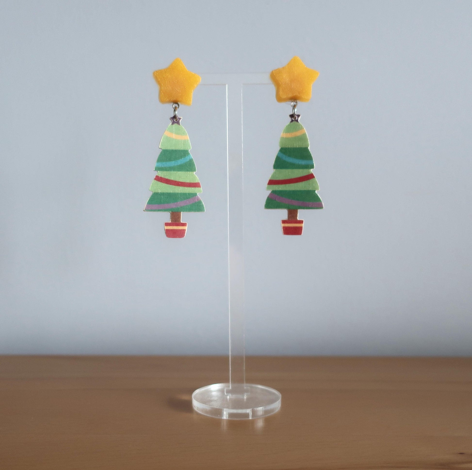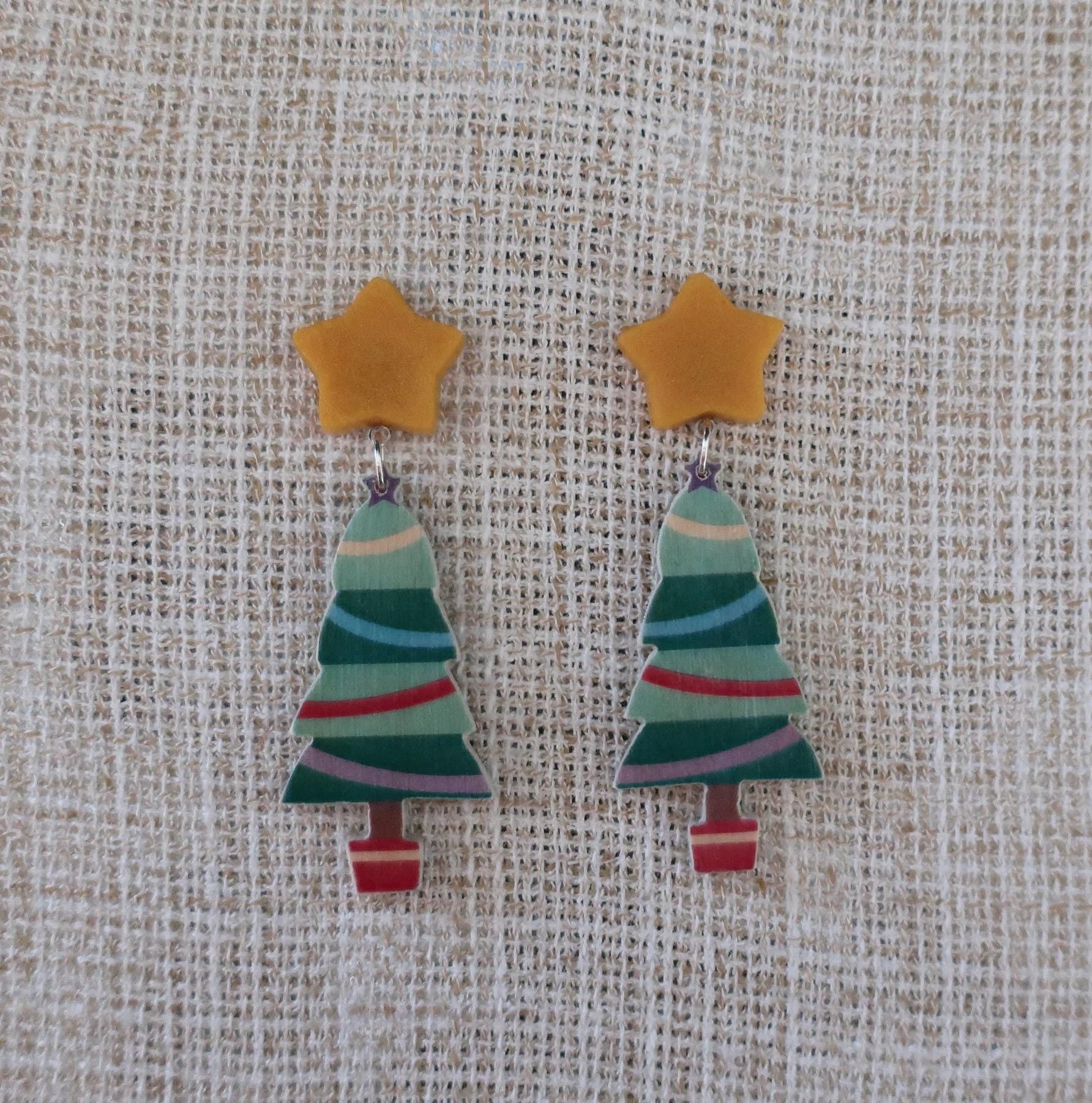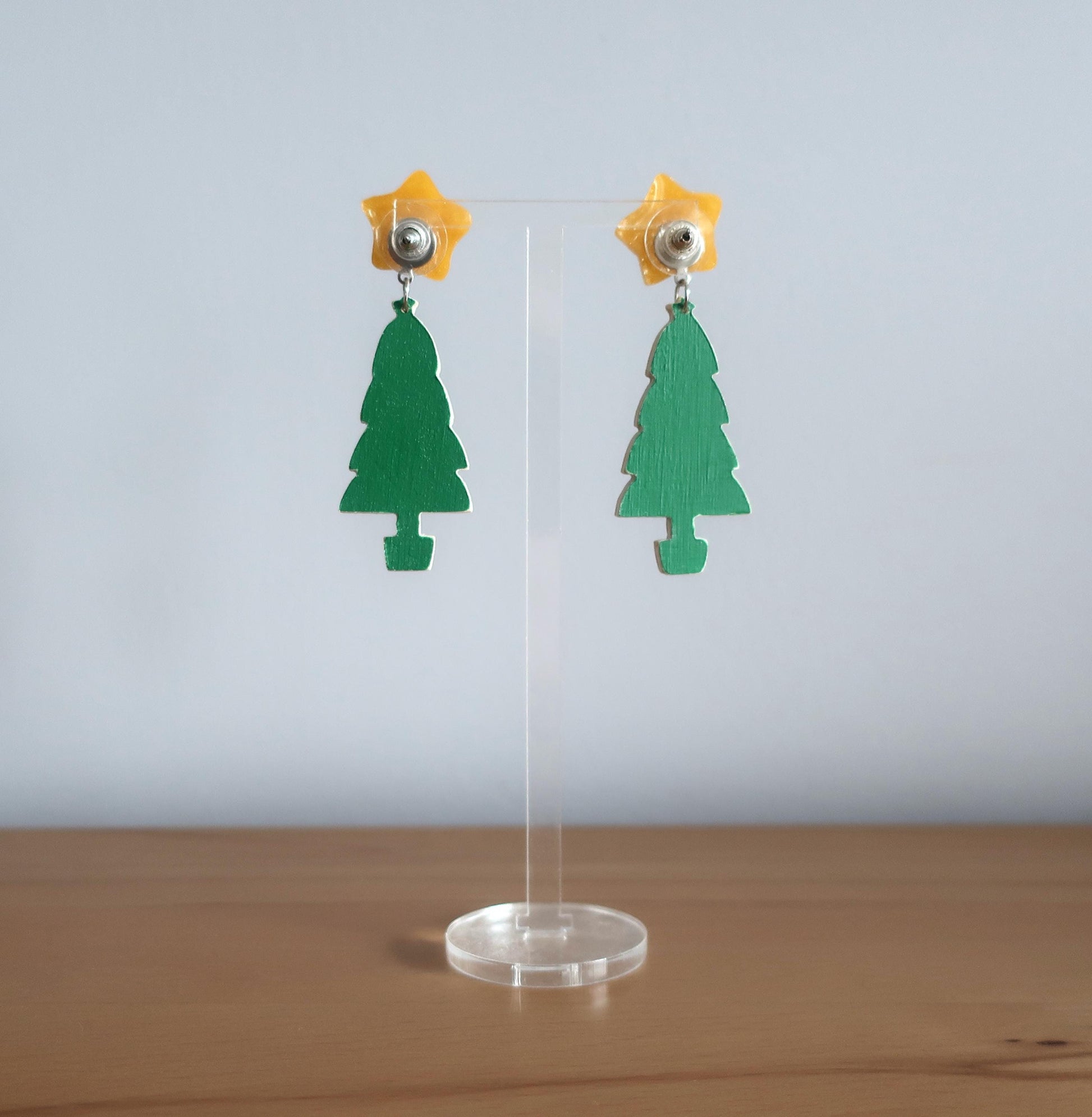Für diese Ohrringe habe ich eine Zeichnung am Computer erstellt, die ich anschließend manuell auf Birkenholz übertragen und dann mit einer Dekupiersäge ausgesägt habe. Um die Haltbarkeit zu verbessern wurde eine Schicht matter Lack aufgetragen.