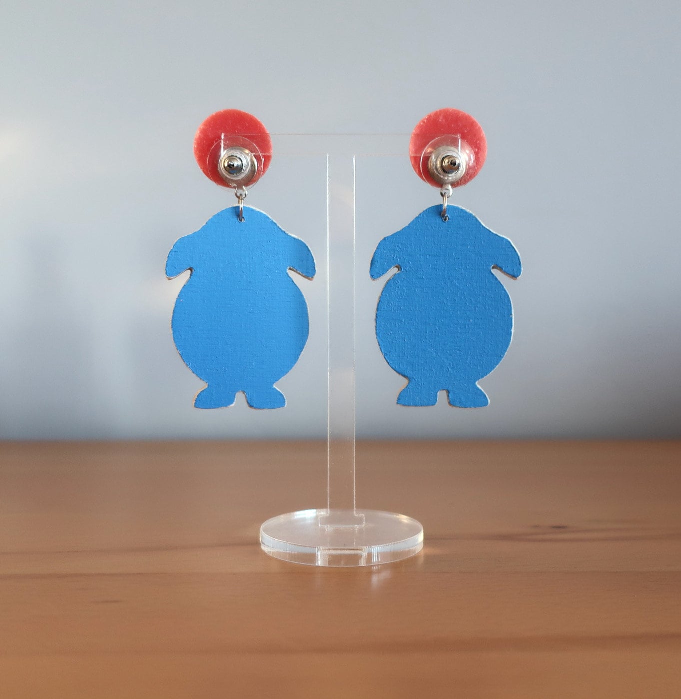 Für diese Ohrringe habe ich eine Zeichnung am Computer erstellt, die ich anschließend manuell auf Birkenholz übertragen und dann mit einer Dekupiersäge ausgesägt habe. Um die Haltbarkeit zu verbessern wurde eine Schicht matter Lack aufgetragen.