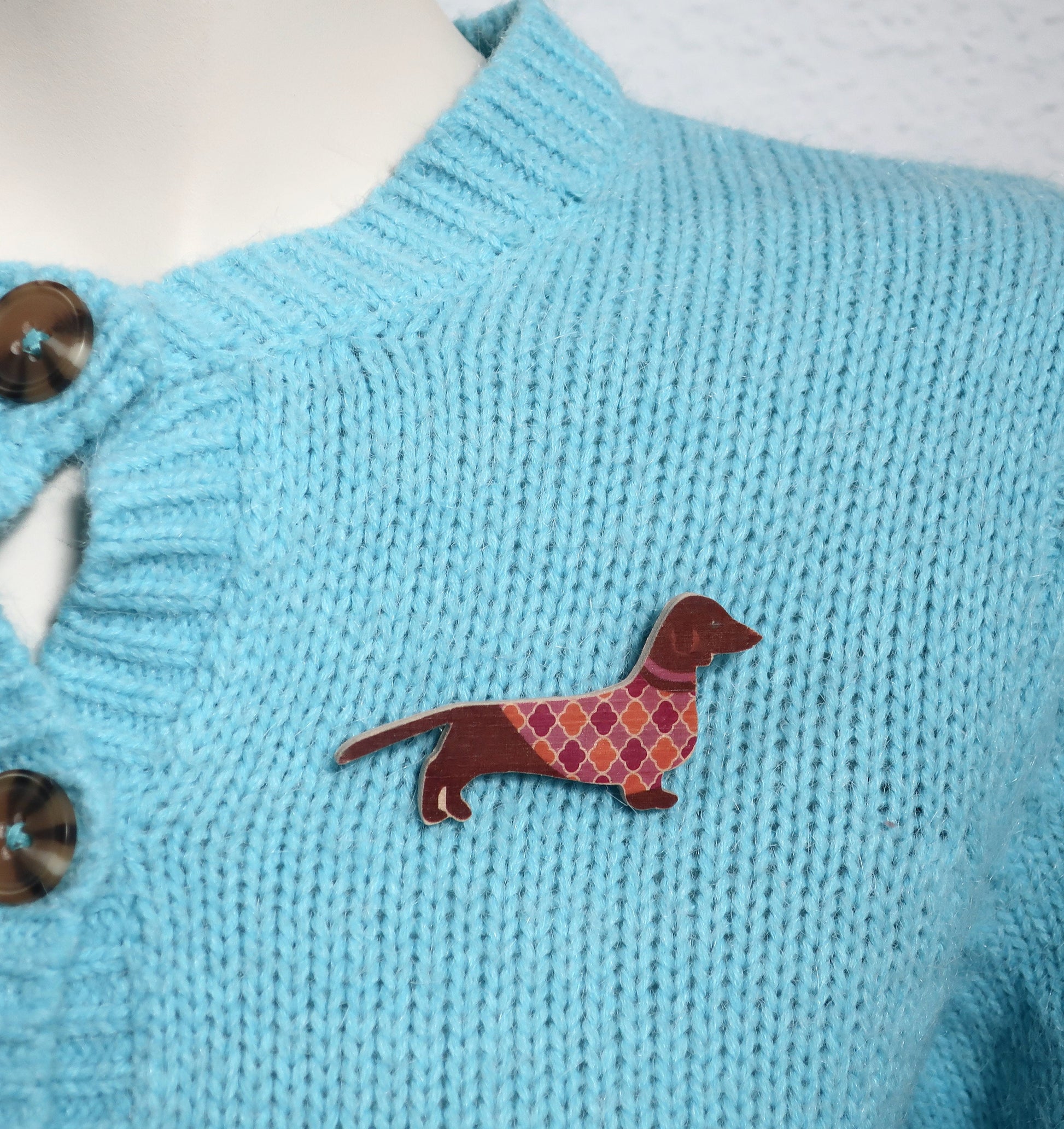 Für diese Brosche habe ich eine Zeichnung am Computer erstellt, die ich anschließend manuell auf Birkenholz übertragen und dann mit einer Dekupiersäge ausgesägt habe. Um die Haltbarkeit zu verbessern wurde eine Schicht matter Lack aufgetragen.
