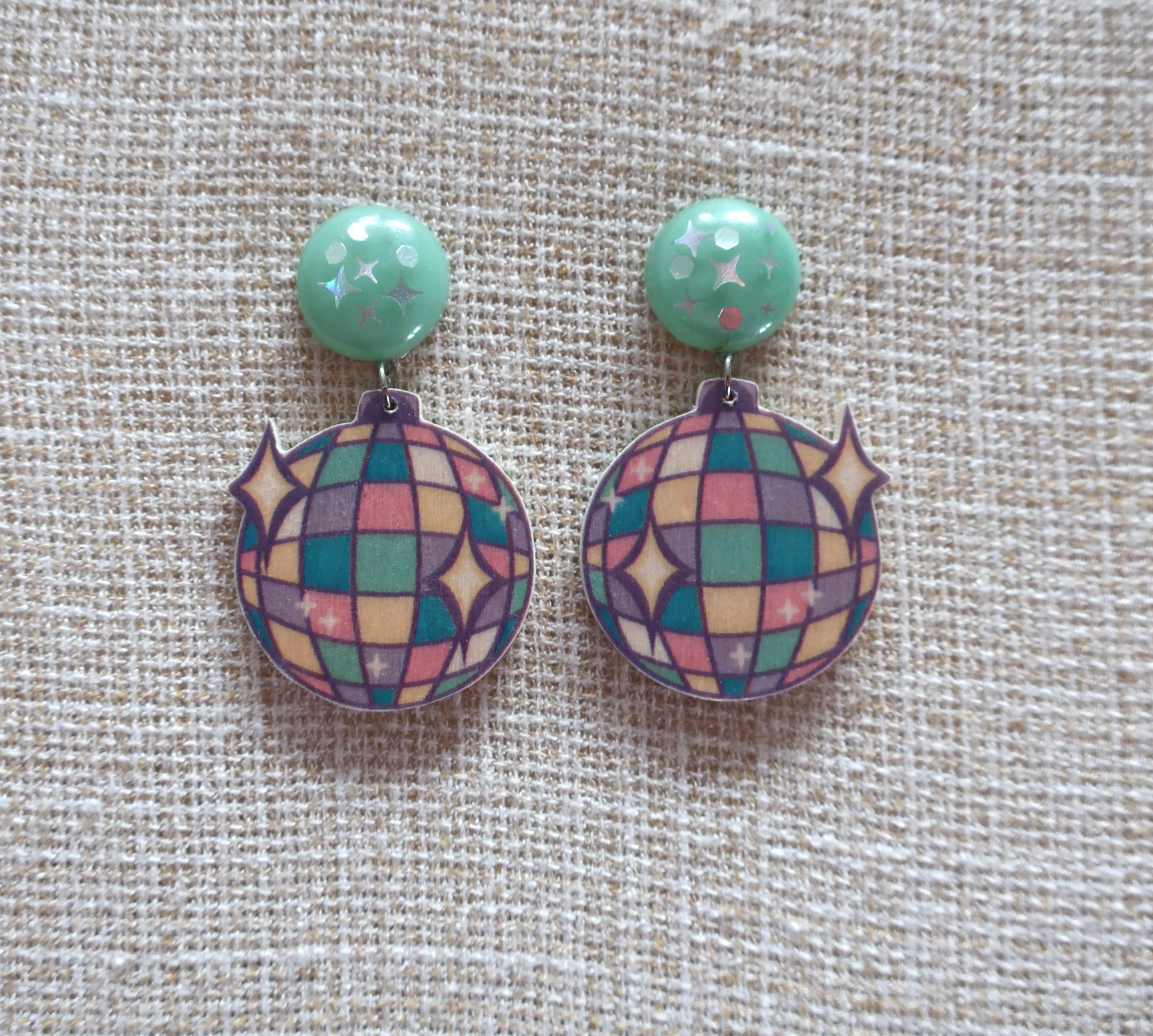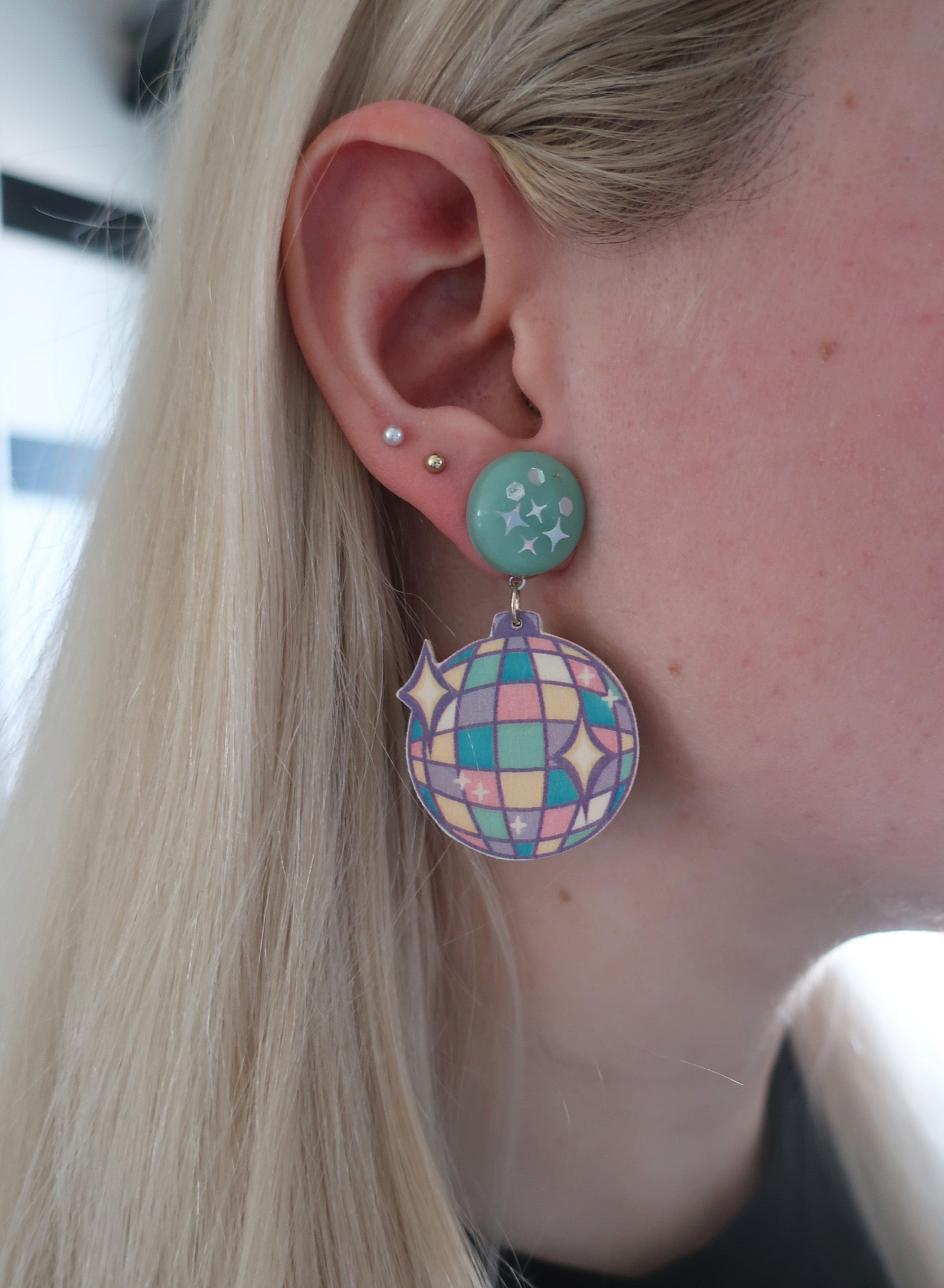 Materialien: Birkensperrholz, Epoxidharz, Glitzer, Edelstahlstecker, Binderinge