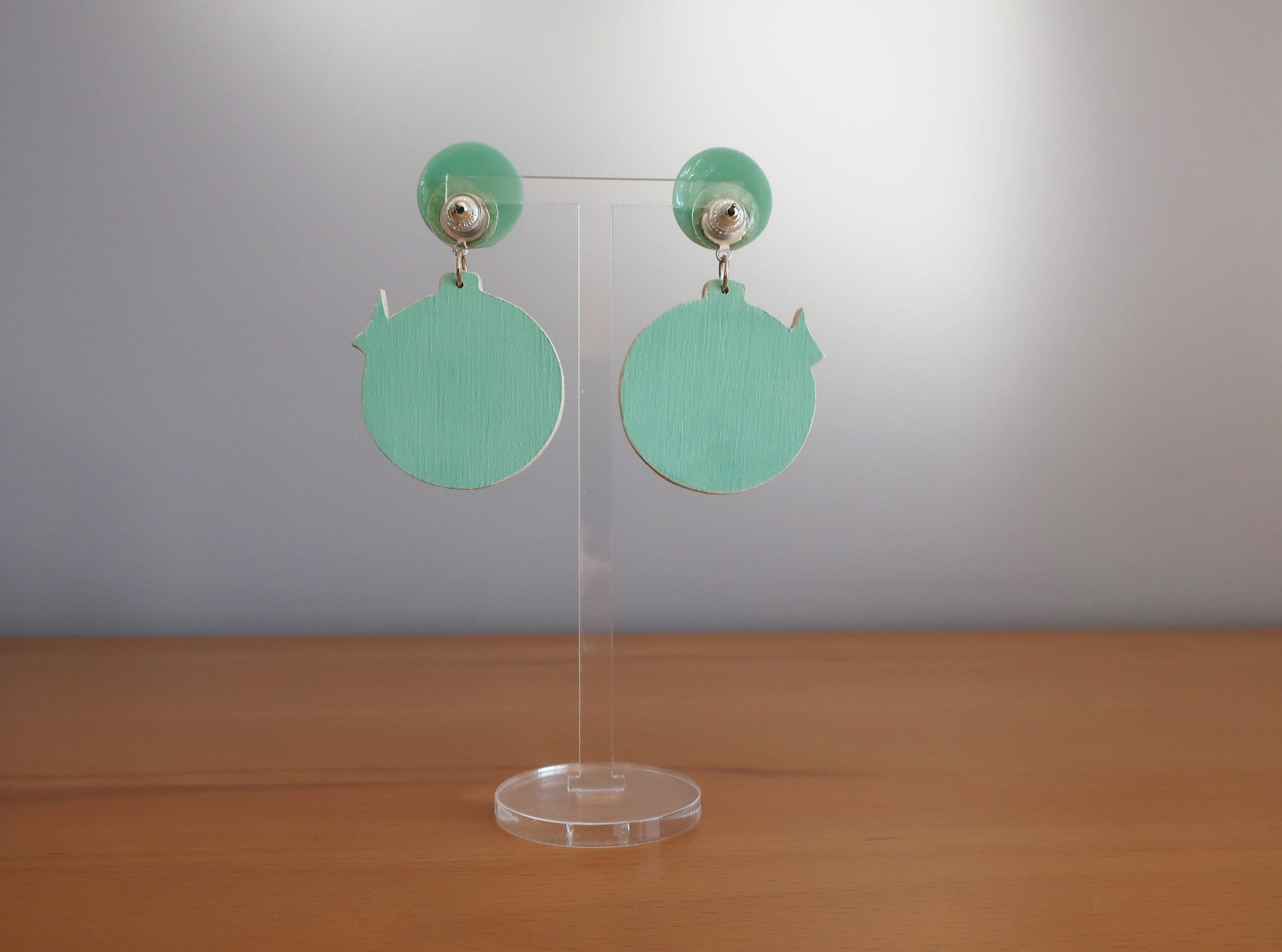 Für diese Ohrringe habe ich eine Zeichnung am Computer erstellt, die ich anschließend manuell auf Birkenholz übertragen und dann mit einer Dekupiersäge ausgesägt habe. Um die Haltbarkeit zu verbessern wurde eine Schicht matter Lack aufgetragen.