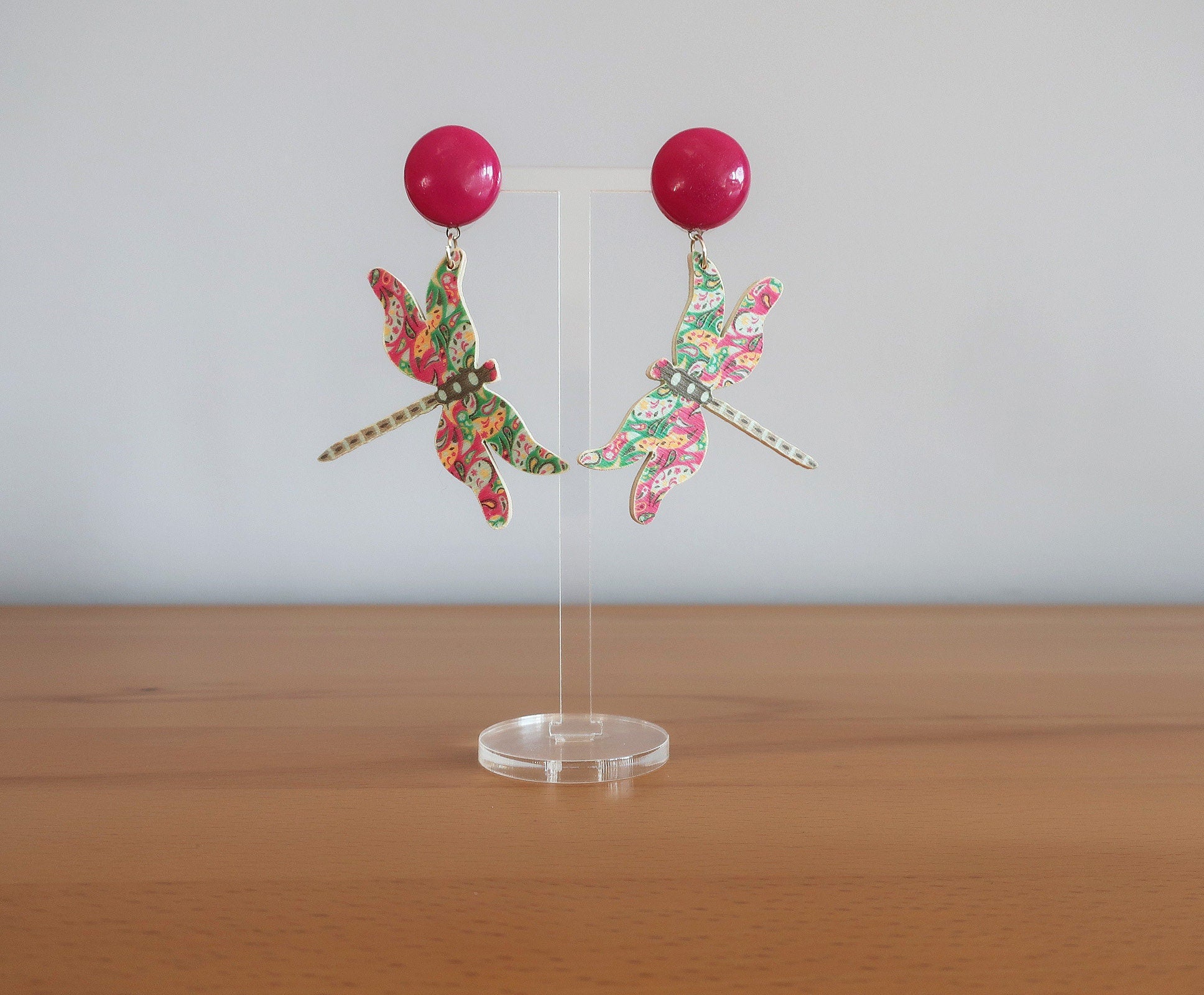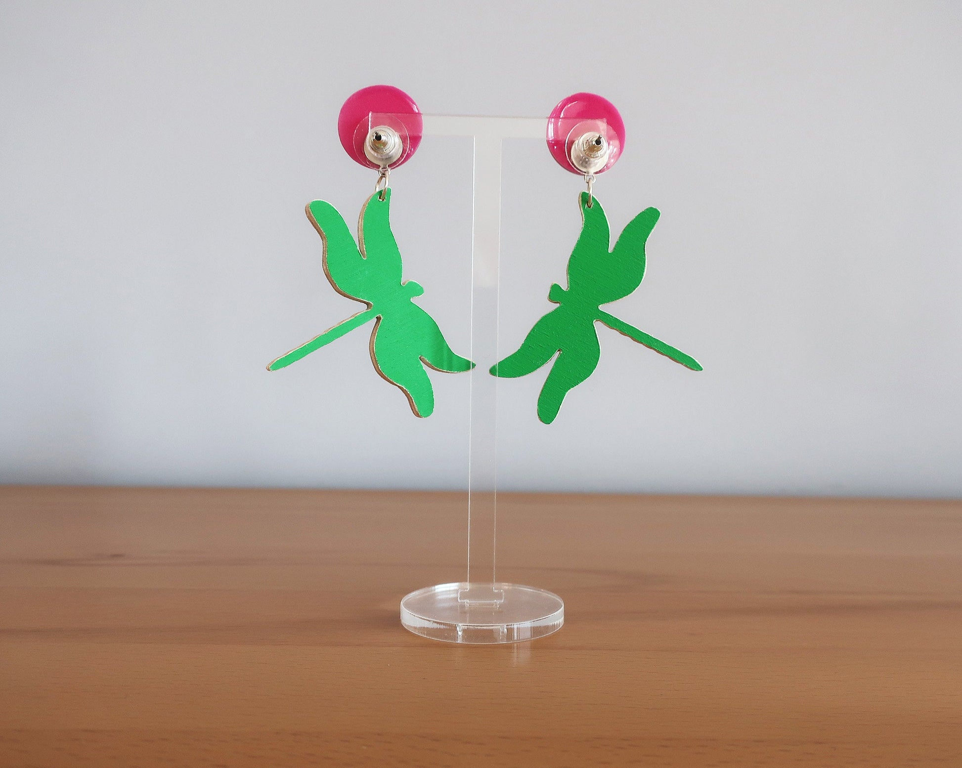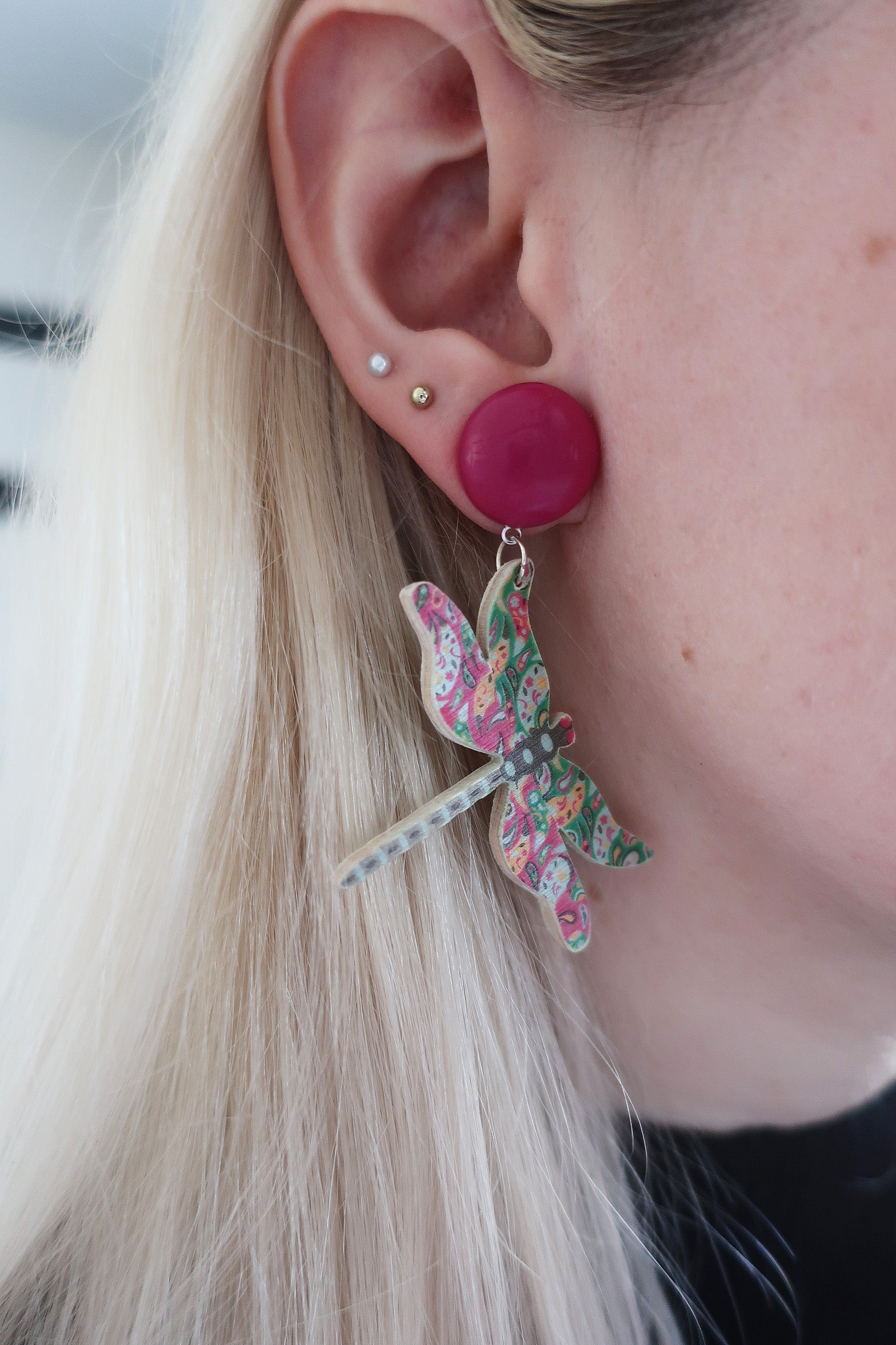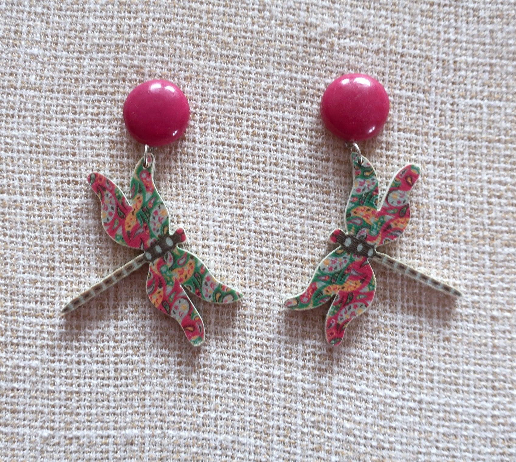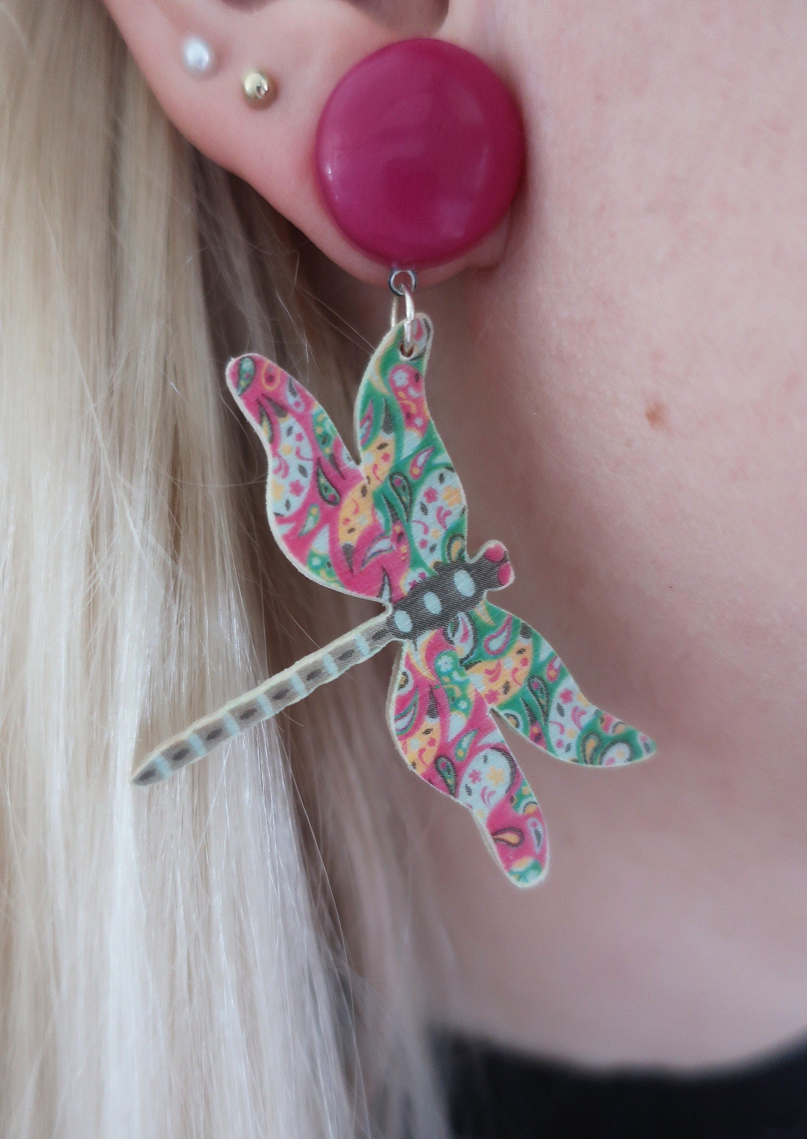 Für diese Ohrringe habe ich eine Zeichnung am Computer erstellt, die ich anschließend manuell auf Birkenholz übertragen und dann mit einer Dekupiersäge ausgesägt habe. Um die Haltbarkeit zu verbessern wurde eine Schicht matter Lack aufgetragen.