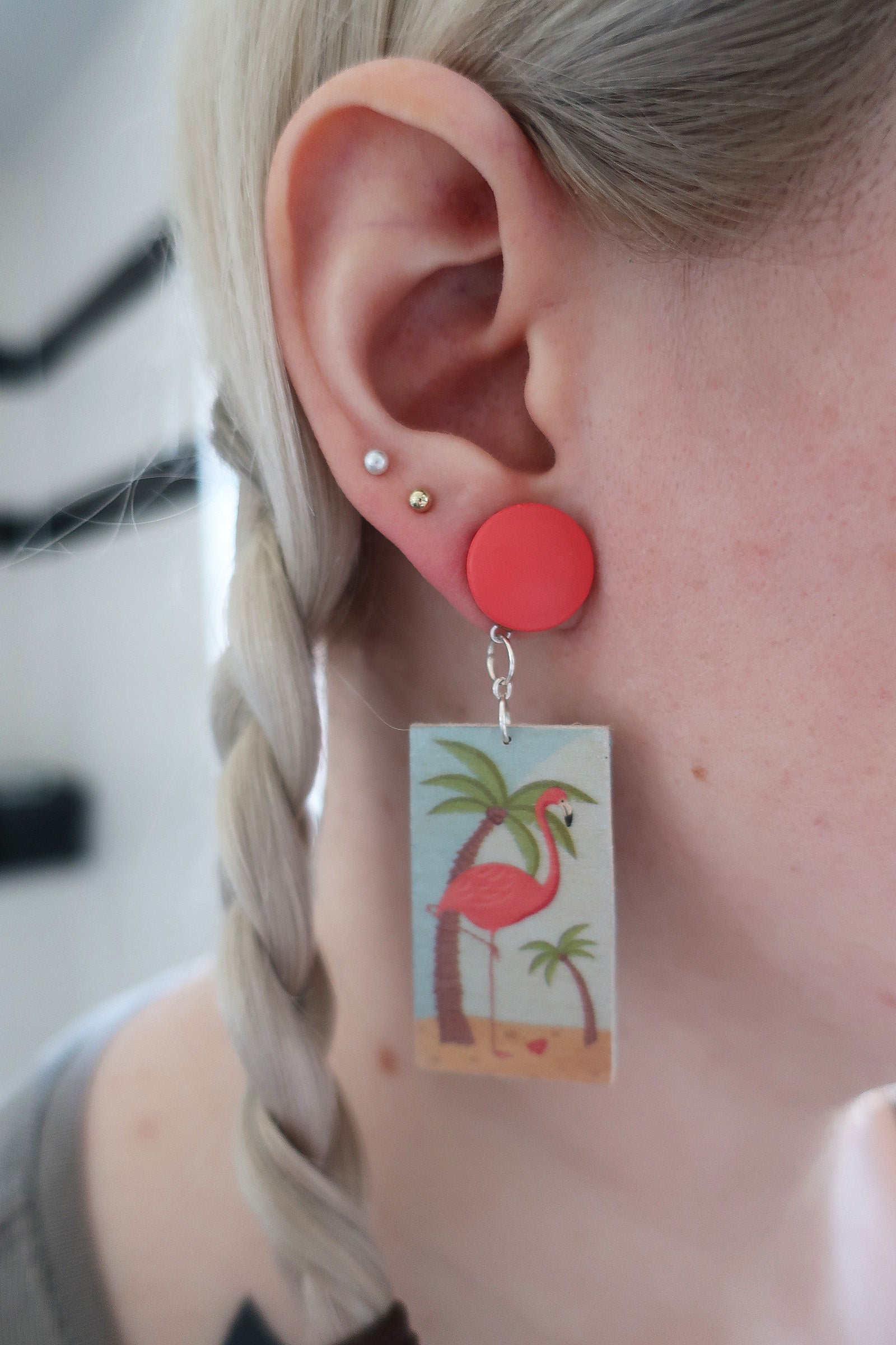 Die Stecker wurden aus bemalten Holzcabochons und Edelstahlsteckern gefertigt.