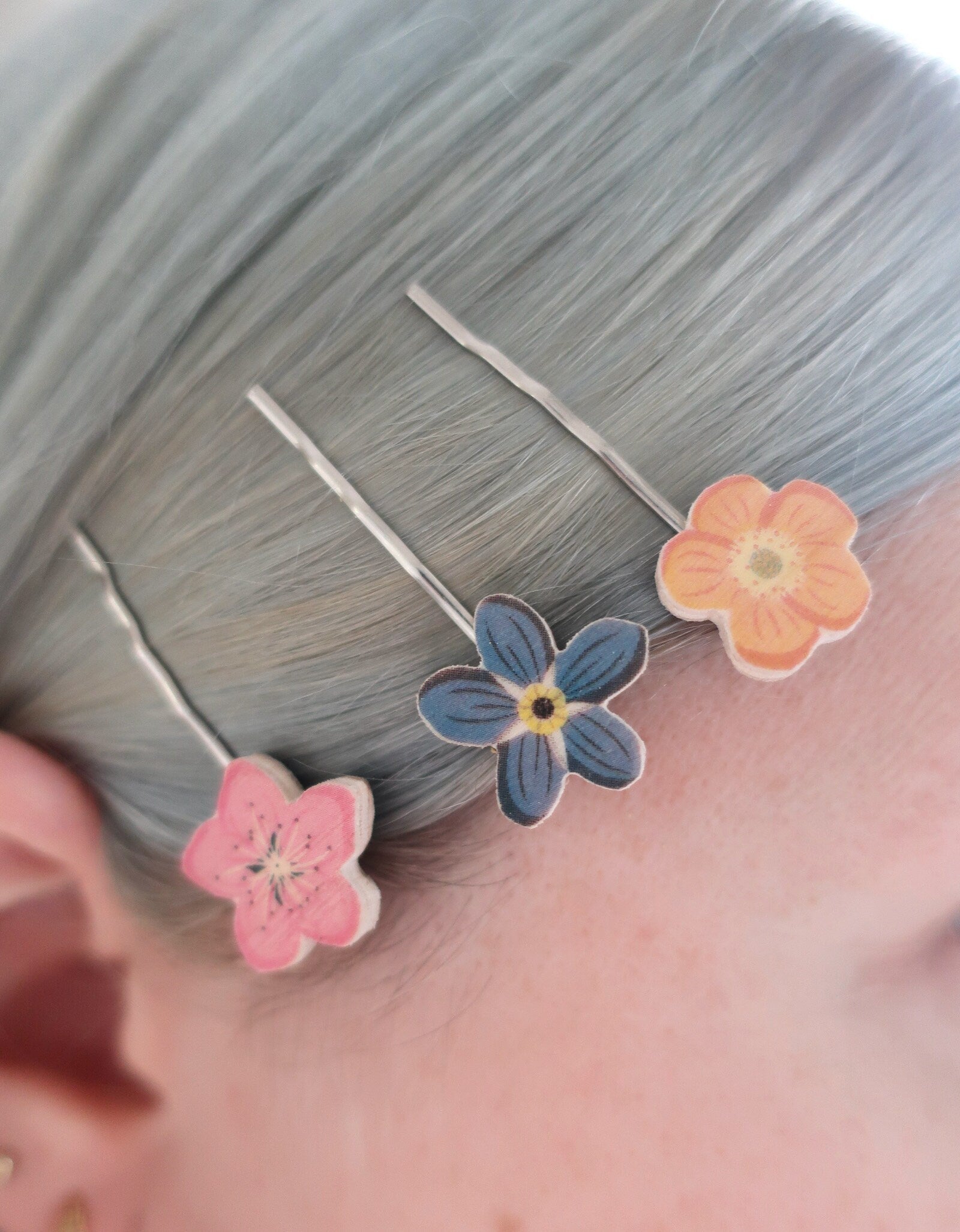 Haarnadeln 'Blumen', Set mit drei Blumen-Haarpins