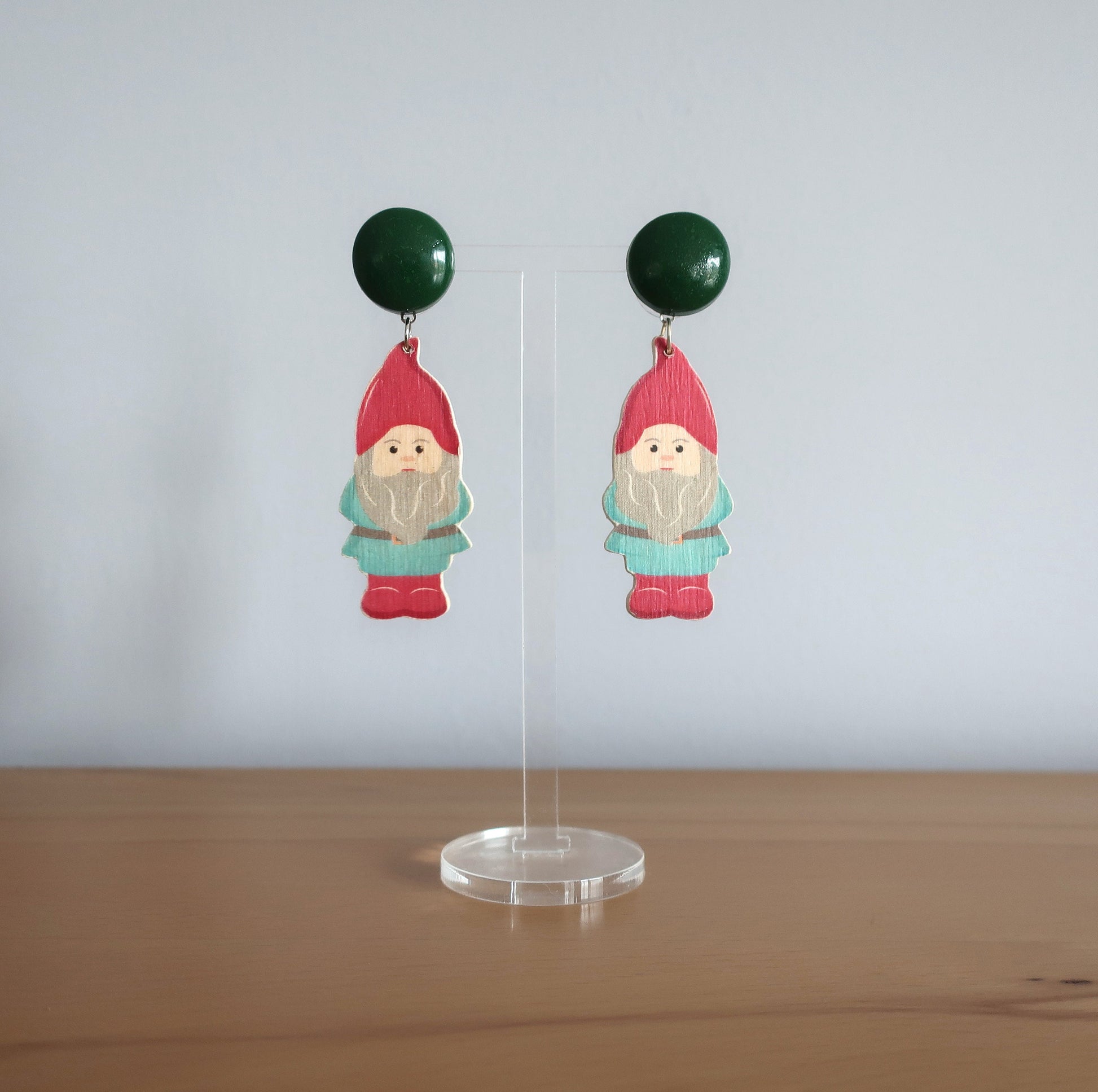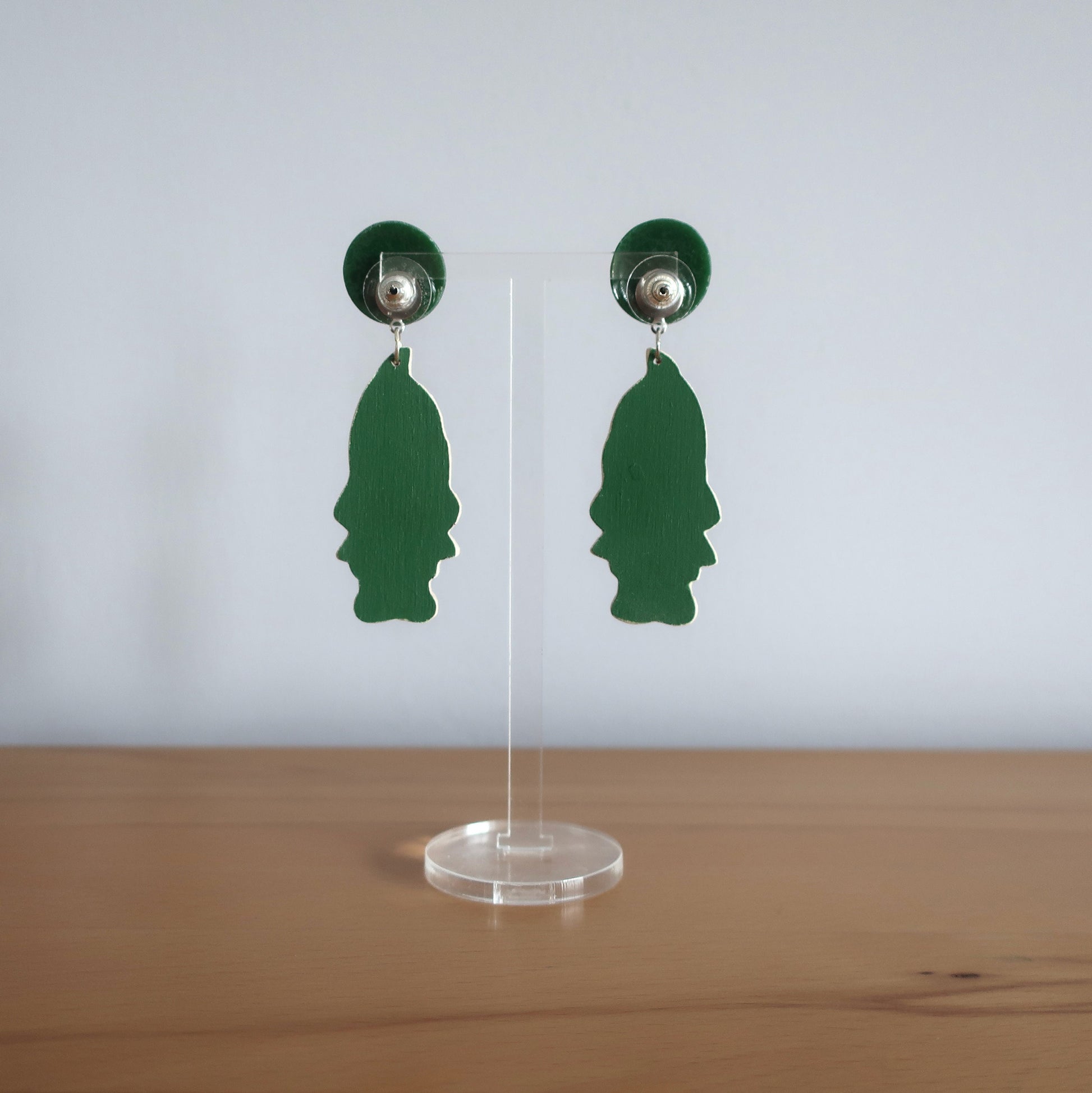 Für diese Ohrringe habe ich eine Zeichnung am Computer erstellt, die ich anschließend manuell auf Birkenholz übertragen und dann mit einer Dekupiersäge ausgesägt habe. Um die Haltbarkeit zu verbessern wurde eine Schicht matter Lack aufgetragen.