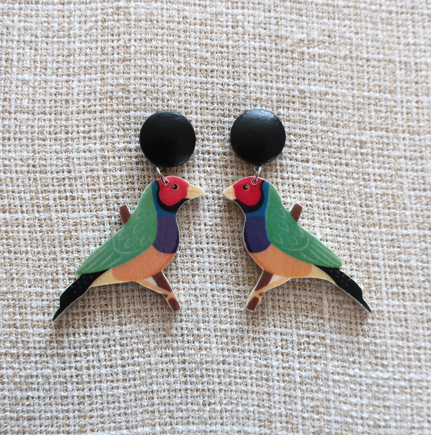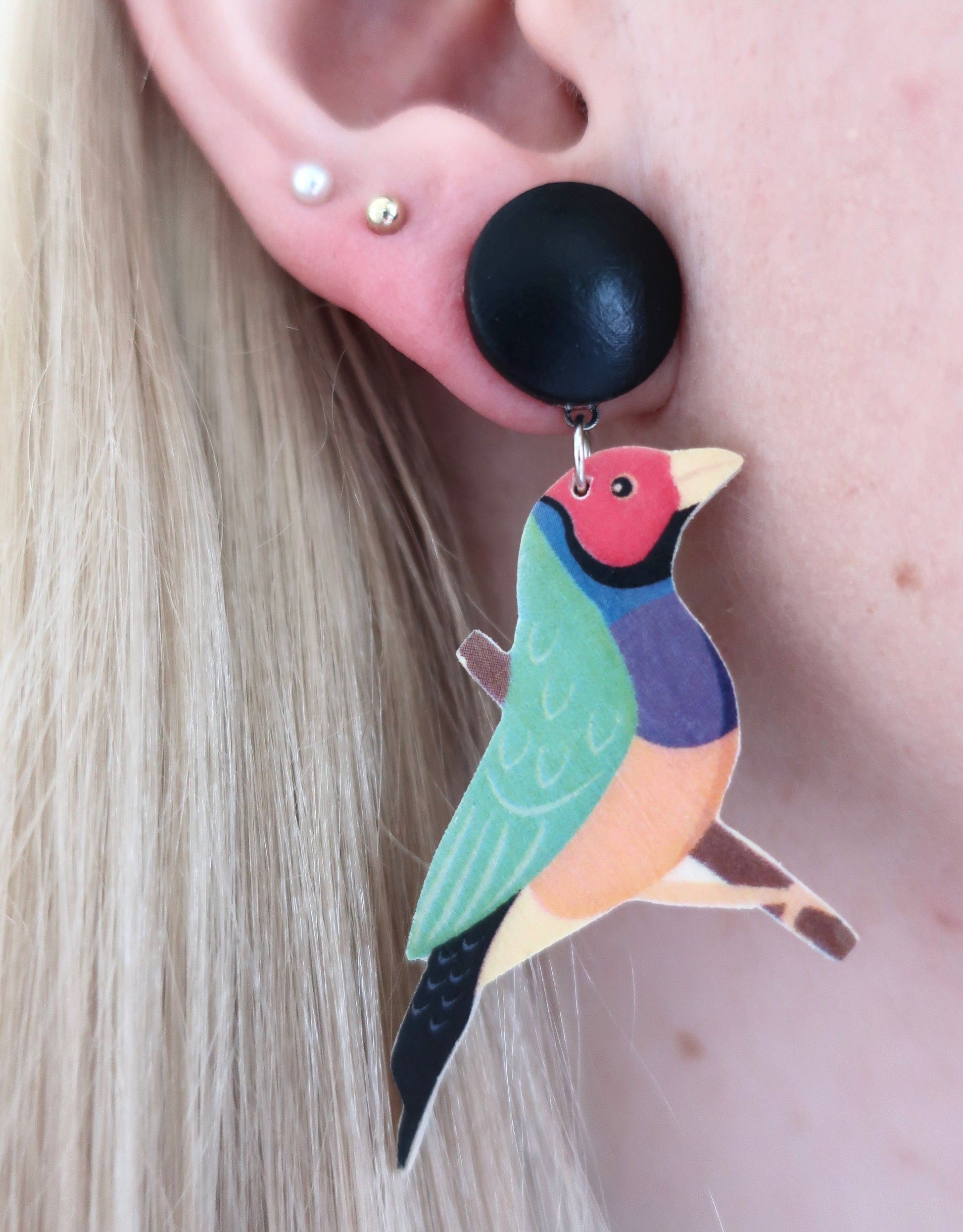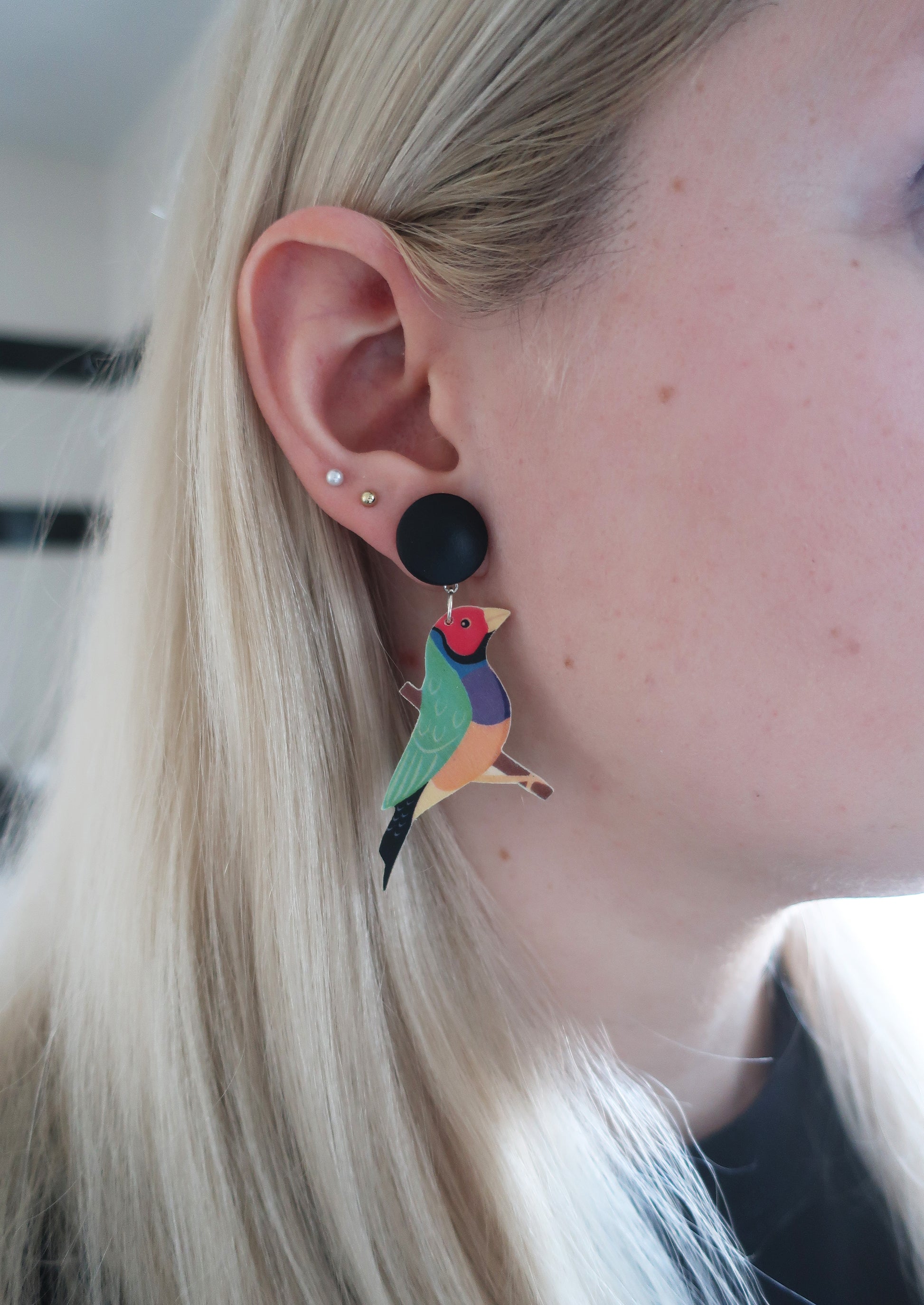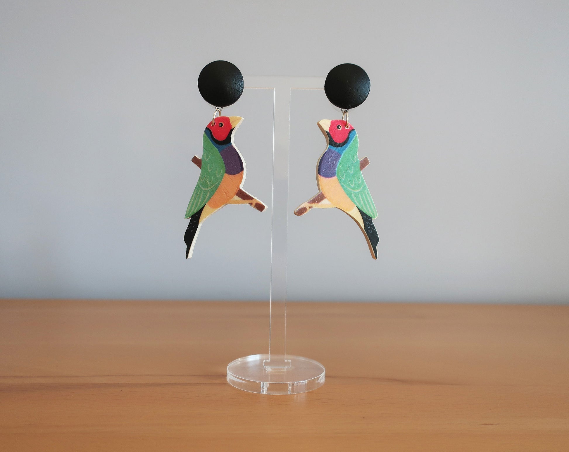 Die Stecker wurden aus mit Acrylfarbe bemalten Holzcabochons und Edelstahlsteckern gefertigt.
