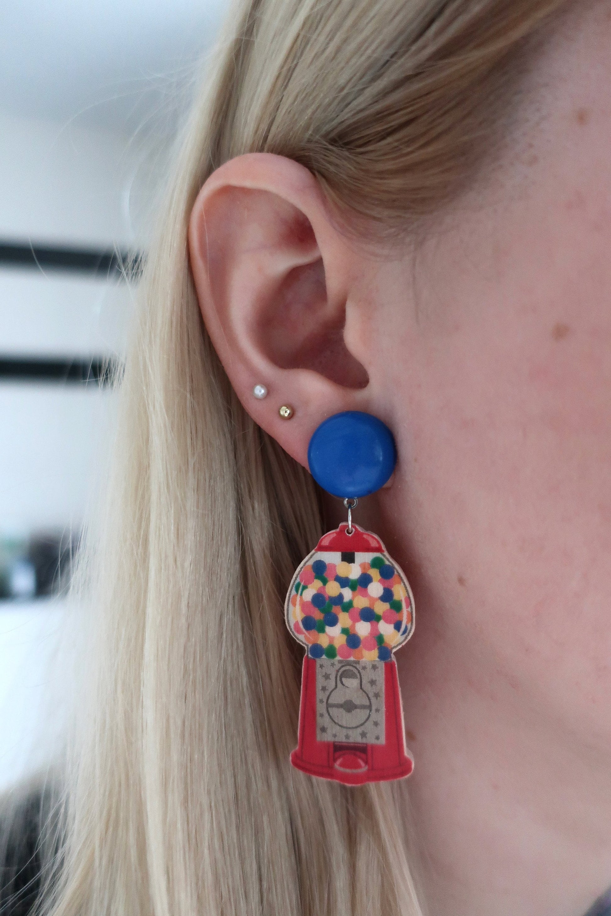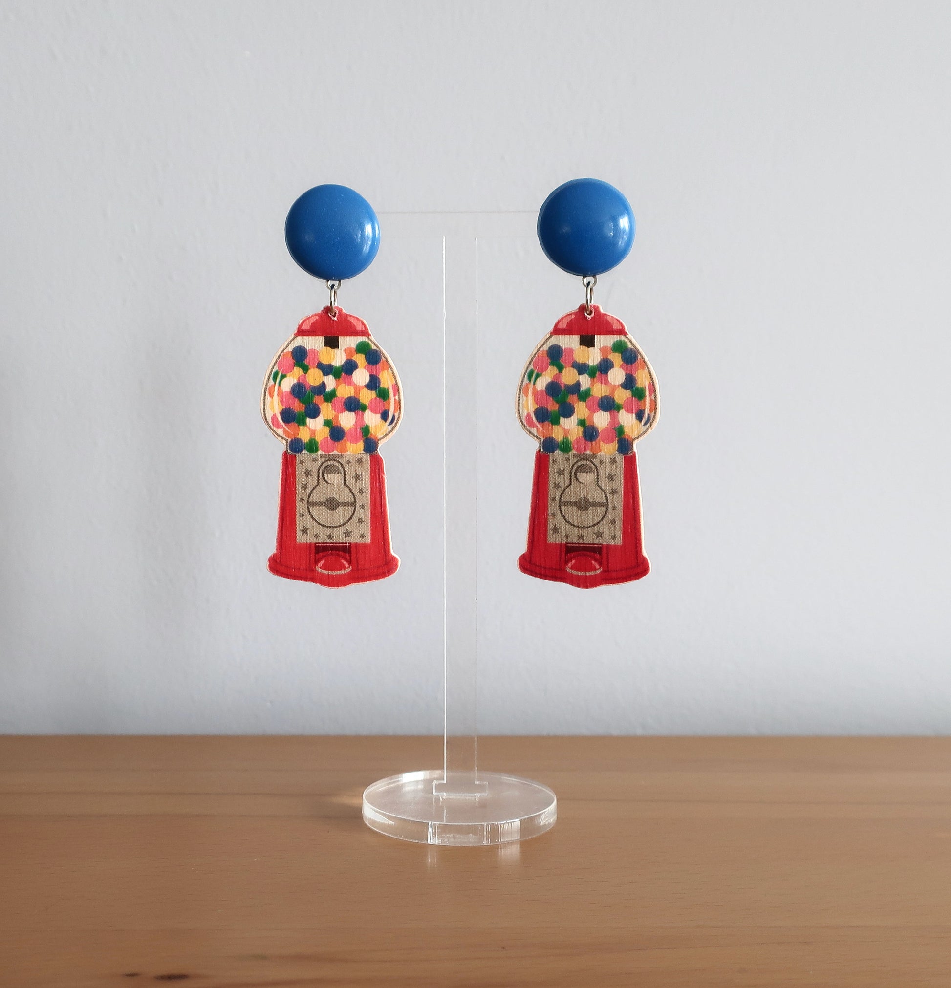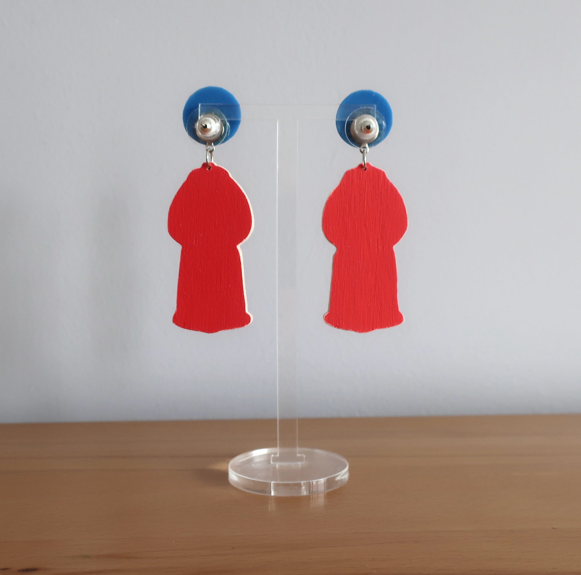 Für diese Ohrringe habe ich eine Zeichnung am Computer erstellt, die ich anschließend manuell auf Birkenholz übertragen und dann mit einer Dekupiersäge ausgesägt habe. Um die Haltbarkeit zu verbessern wurde eine Schicht matter Lack aufgetragen.