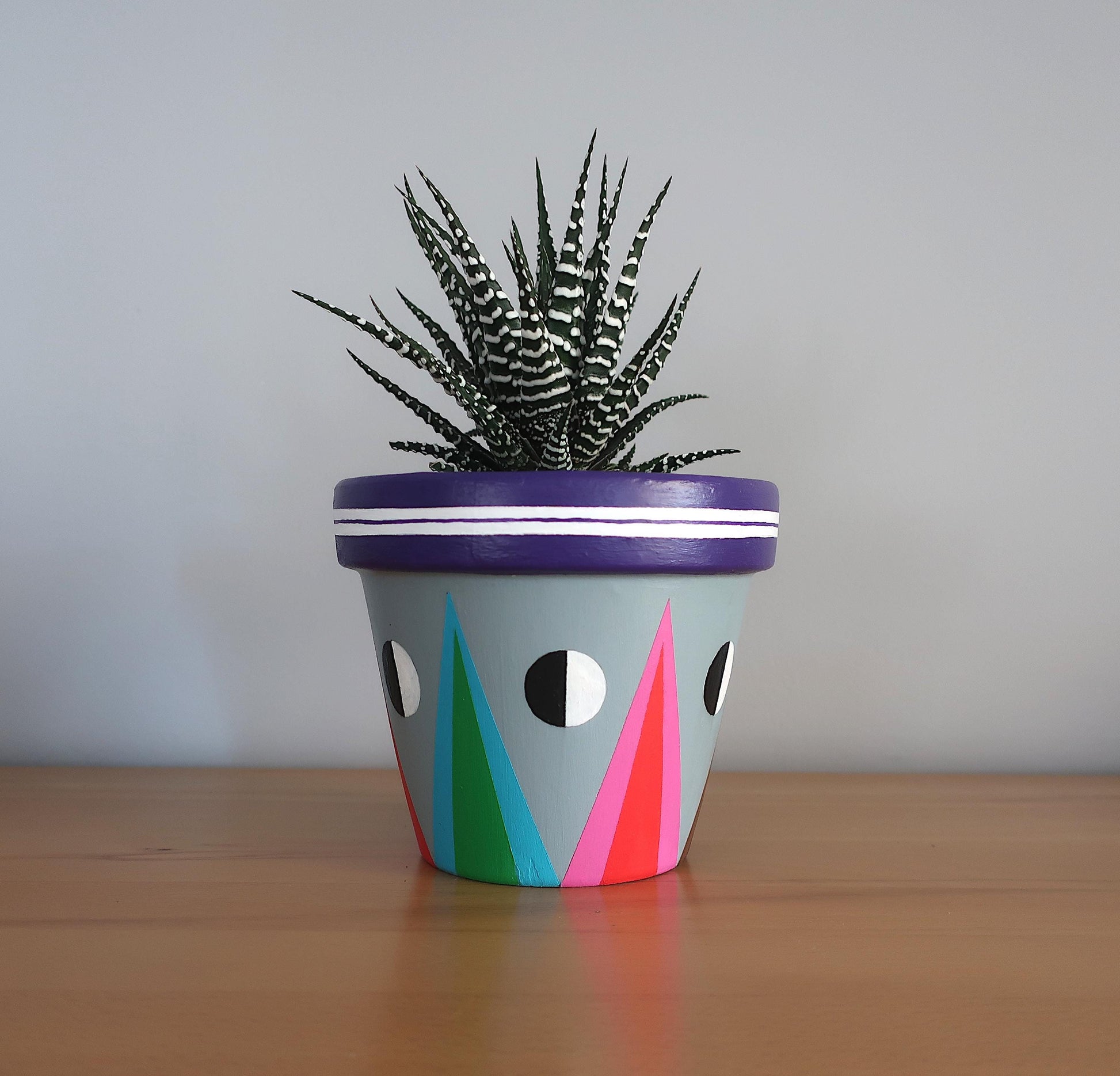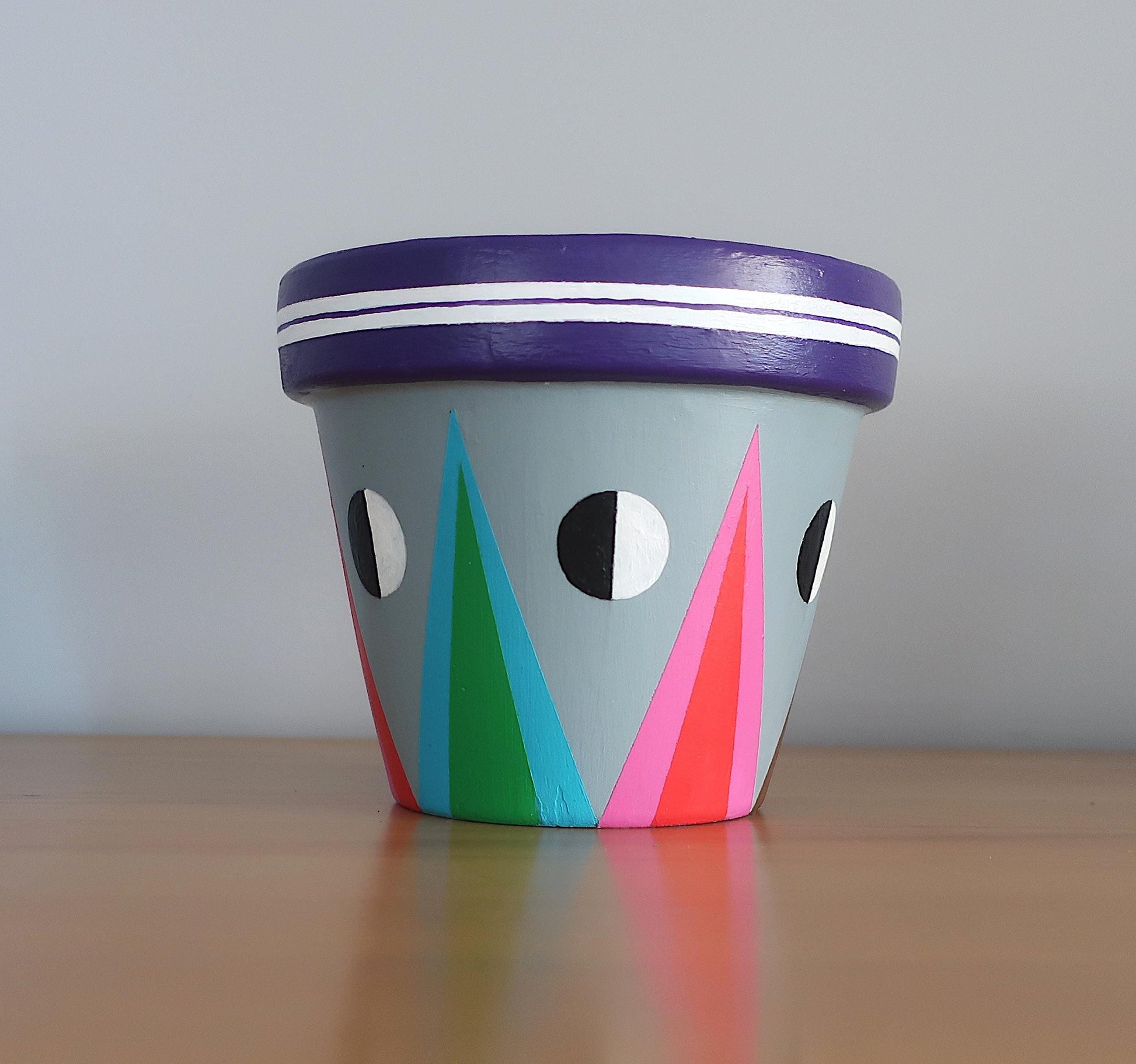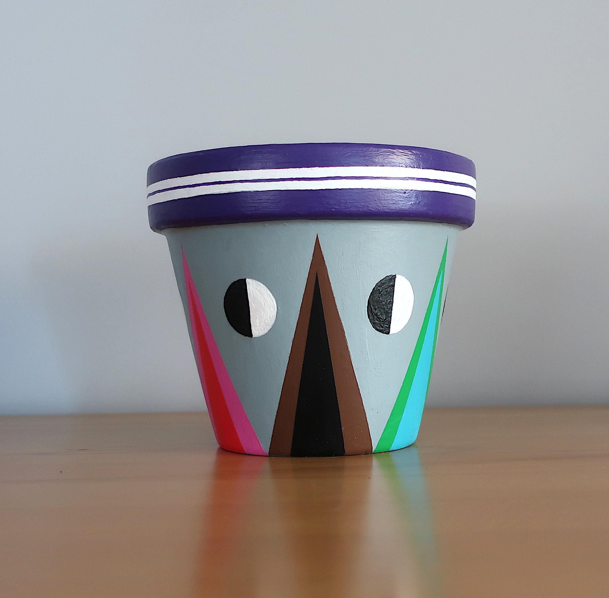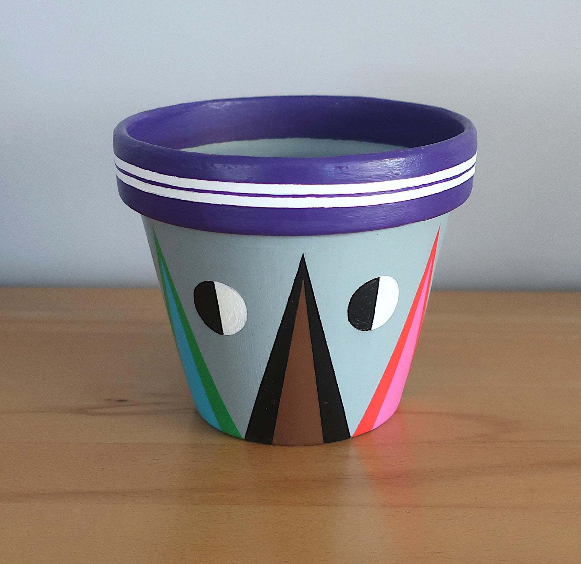 Handbemalter Blumentopf mit geometrischem Muster