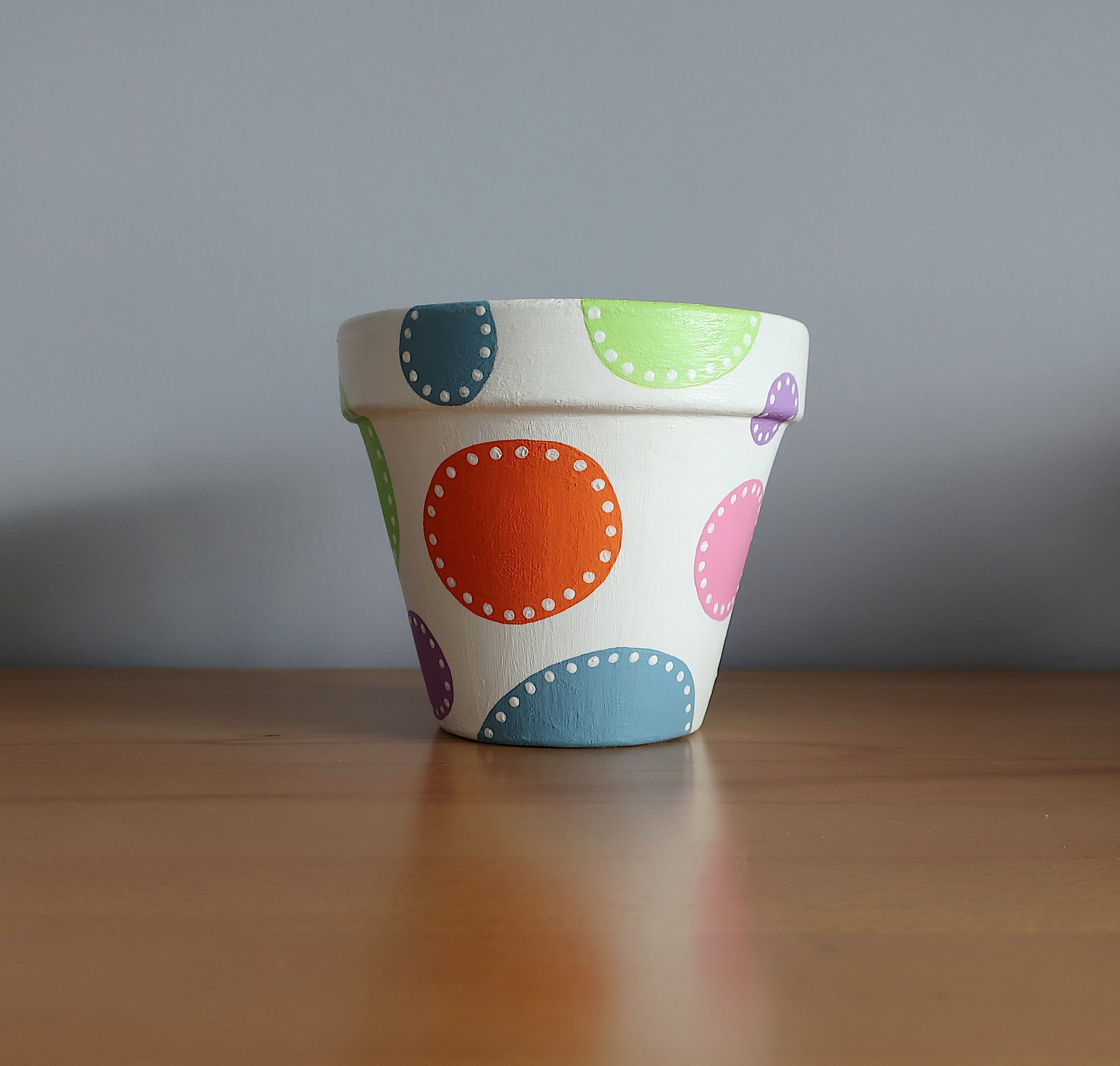 Handbemalter Blumentopf mit bunten Punkten
