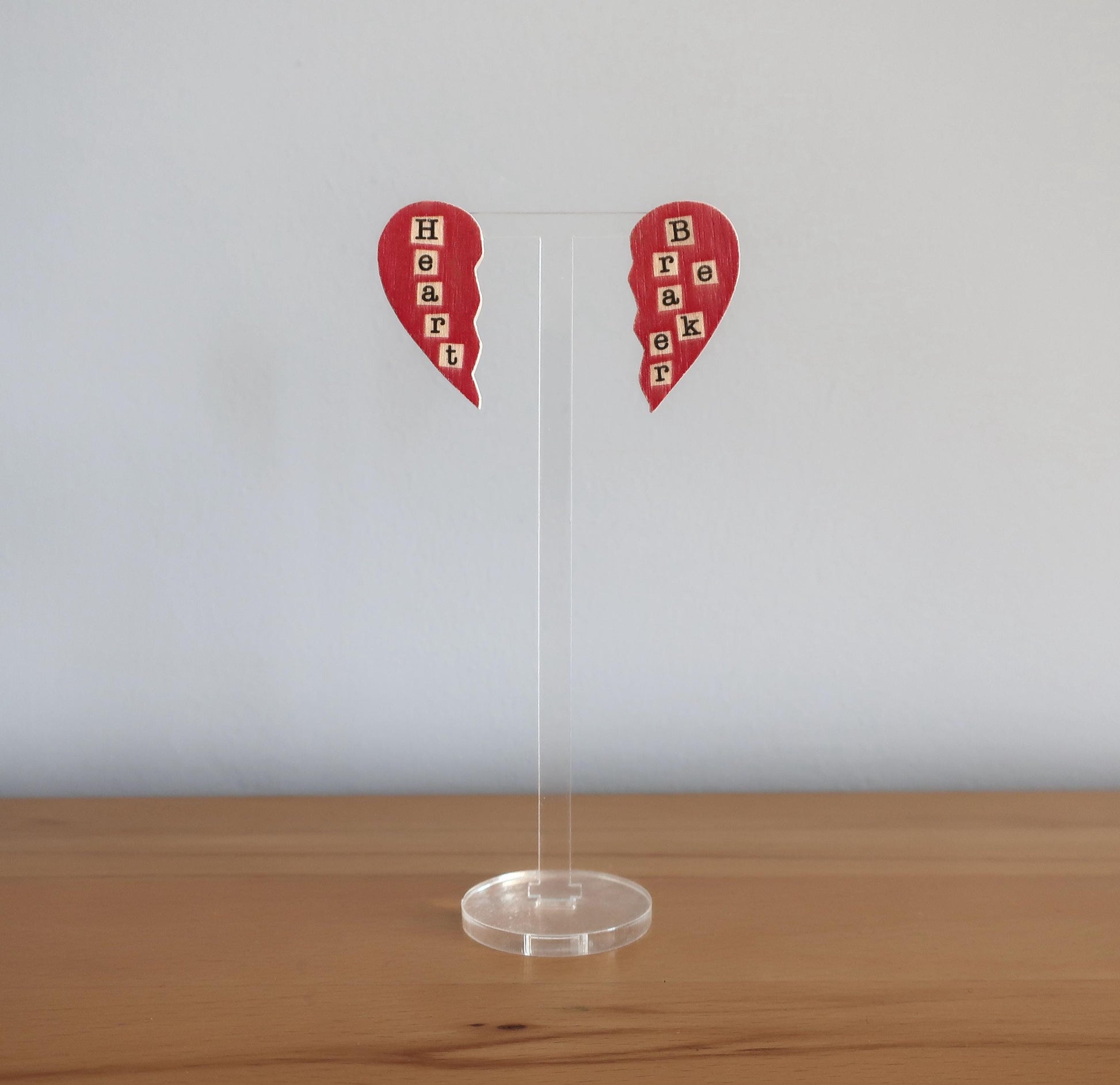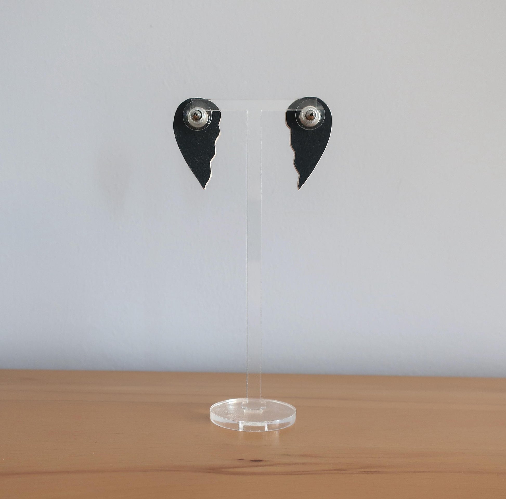 Für diese Ohrringe habe ich eine Zeichnung am Computer erstellt, die ich anschließend manuell auf Birkenholz übertragen und dann mit einer Dekupiersäge ausgesägt habe. Um die Haltbarkeit zu verbessern wurde eine Schicht matter Lack aufgetragen.