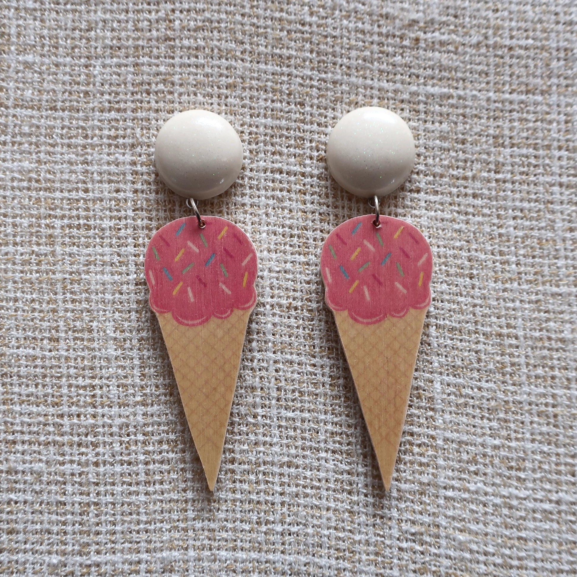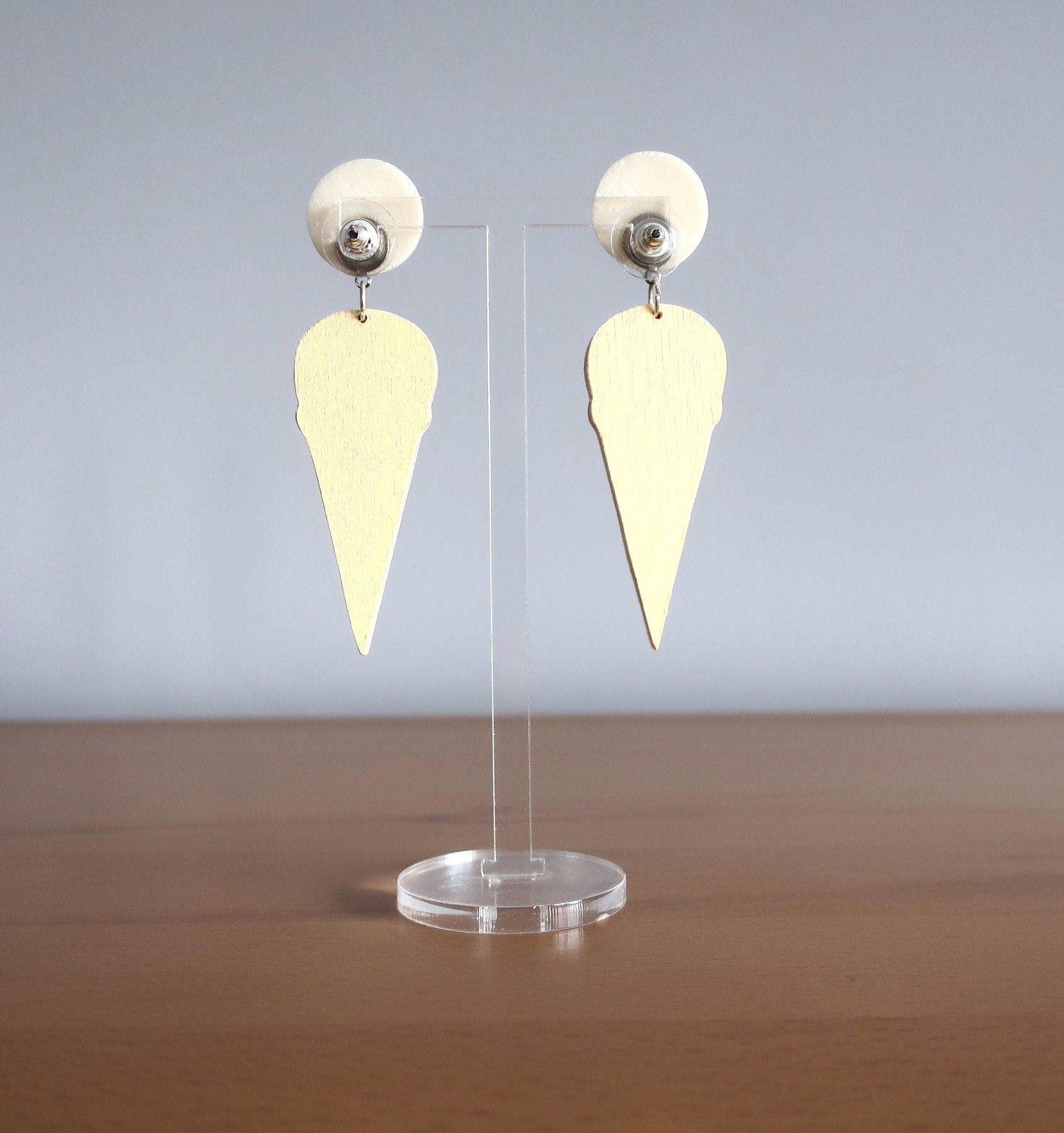 Für diese Ohrringe habe ich eine Zeichnung am Computer erstellt, die ich anschließend manuell auf Birkenholz übertragen und dann mit einer Dekupiersäge ausgesägt habe. Um die Haltbarkeit zu verbessern wurde eine Schicht matter Lack aufgetragen.