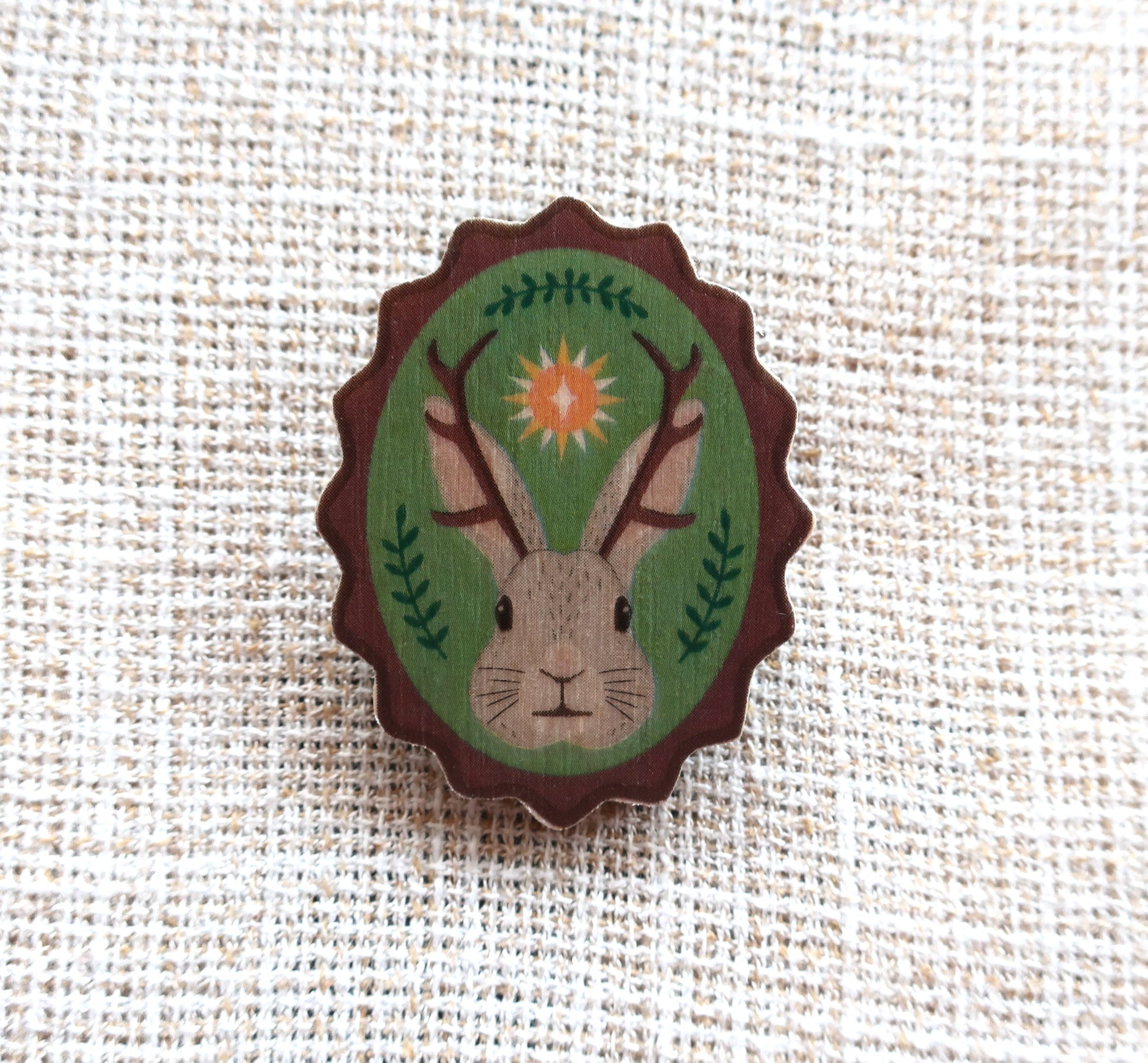 Für diese Brosche habe ich eine Zeichnung am Computer erstellt, die ich anschließend manuell auf Birkenholz übertragen und dann mit einer Dekupiersäge ausgesägt habe. Um die Haltbarkeit zu verbessern wurde eine Schicht matter Lack aufgetragen.