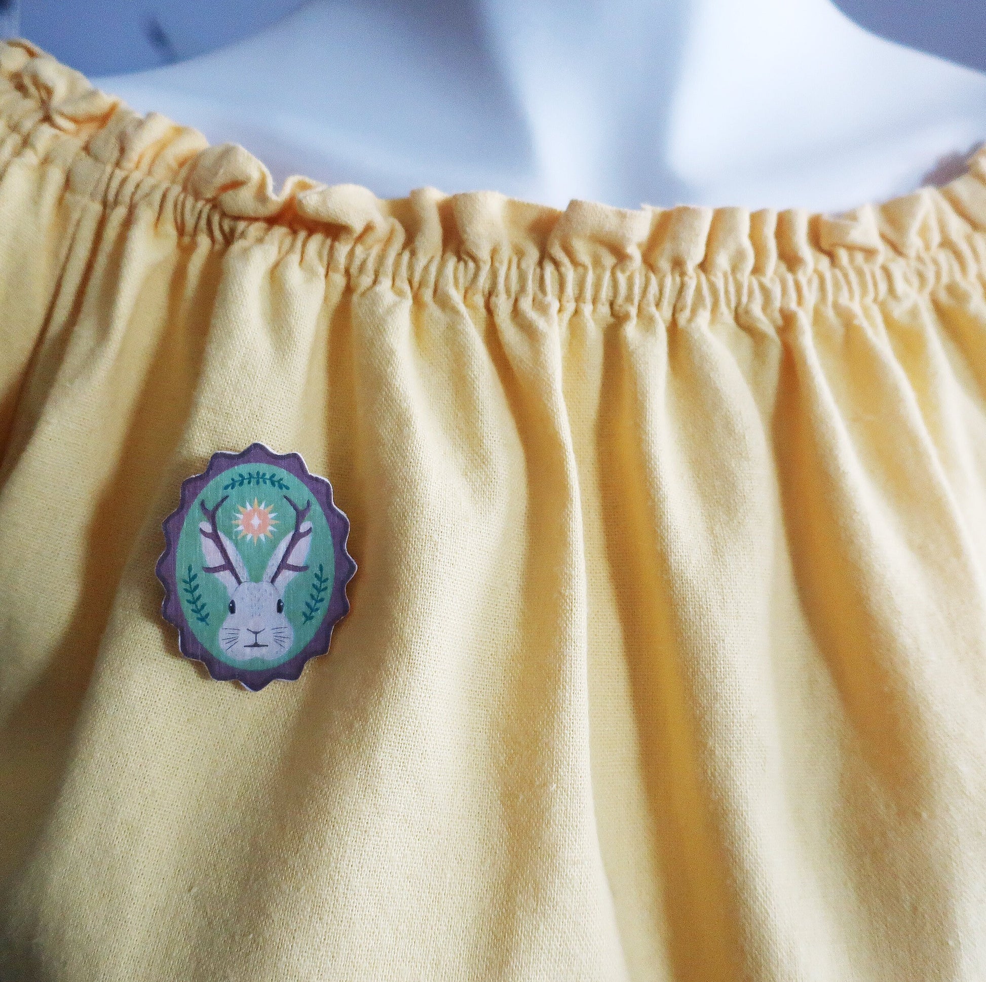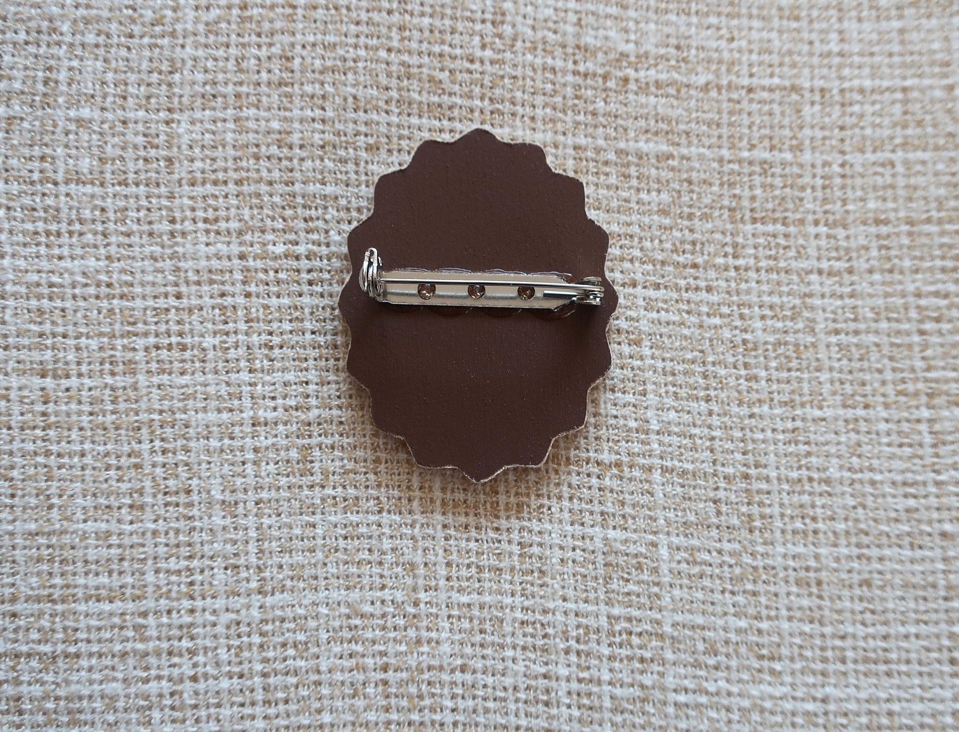 Der Metallpin auf der Rückseite is silber,-bronze,-oder goldfarben. (Davon abhängig, was ich auf Lager habe.)
