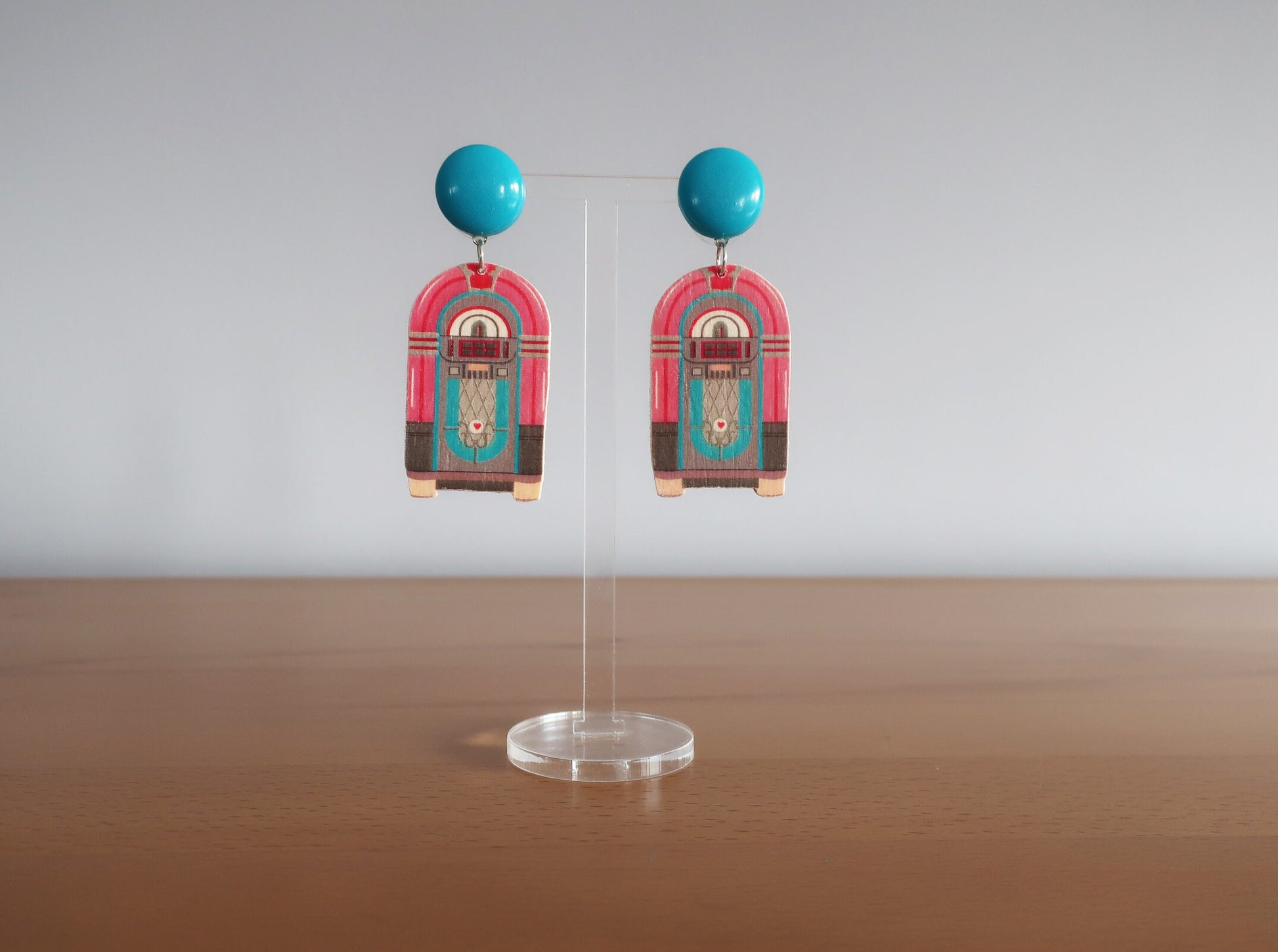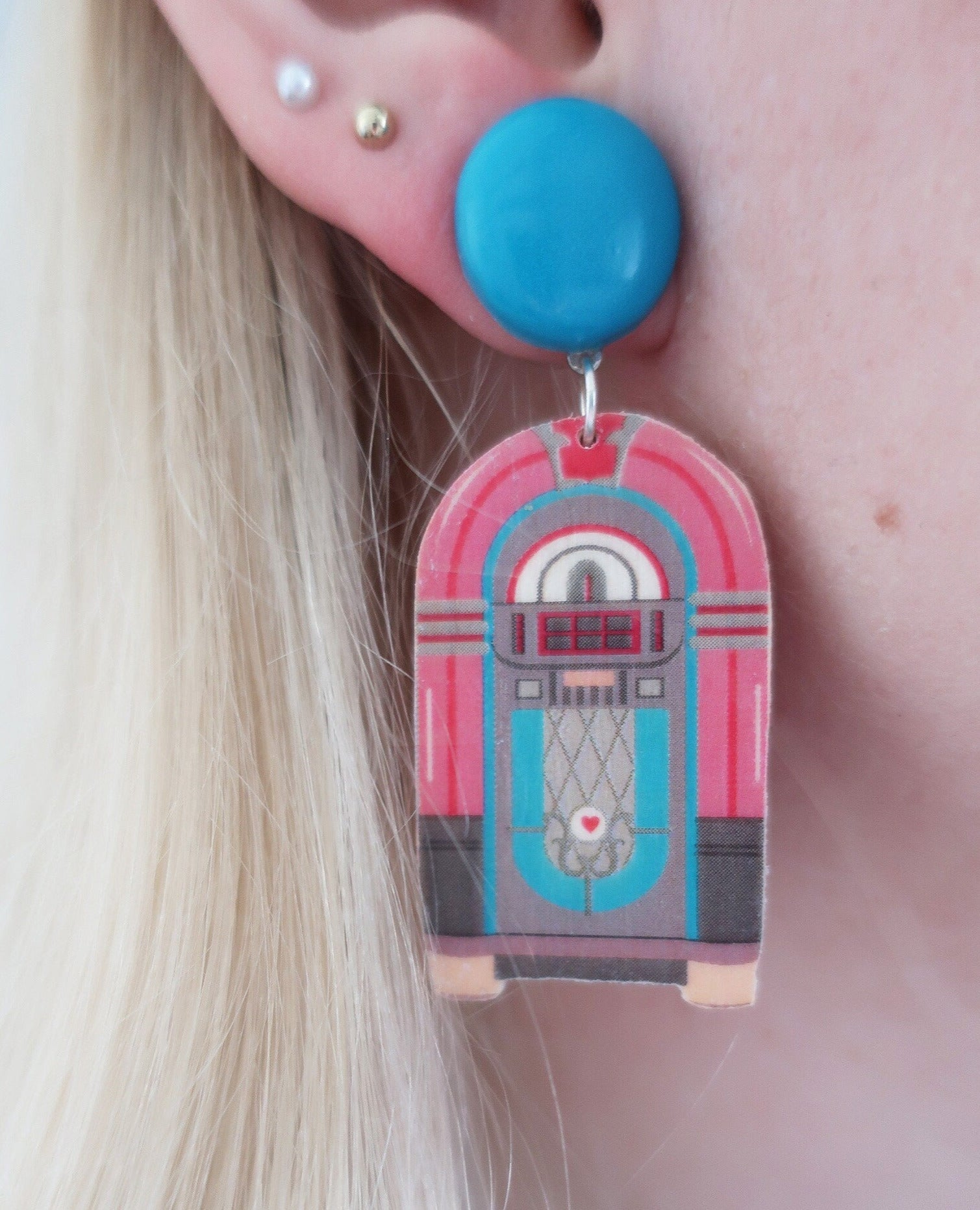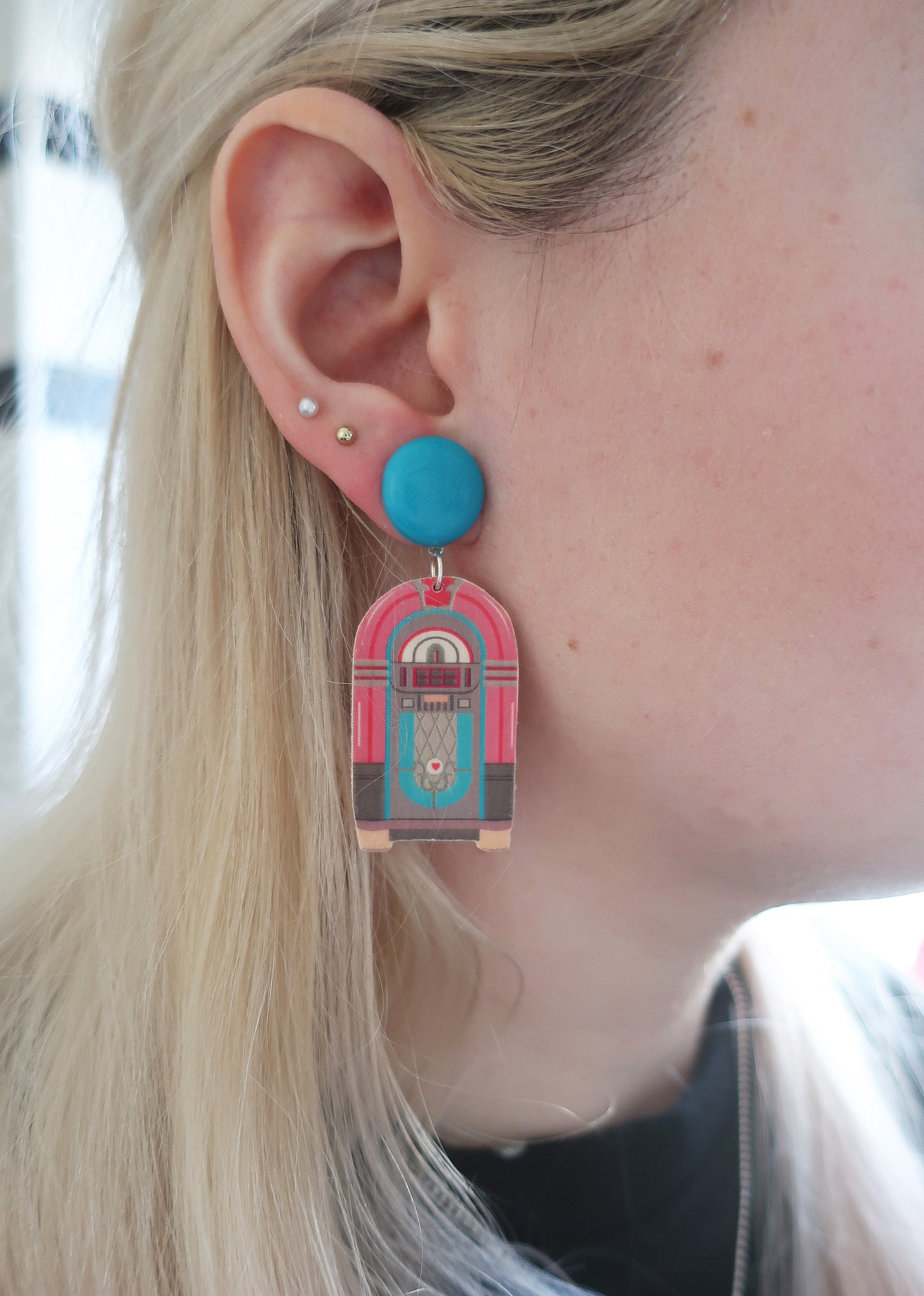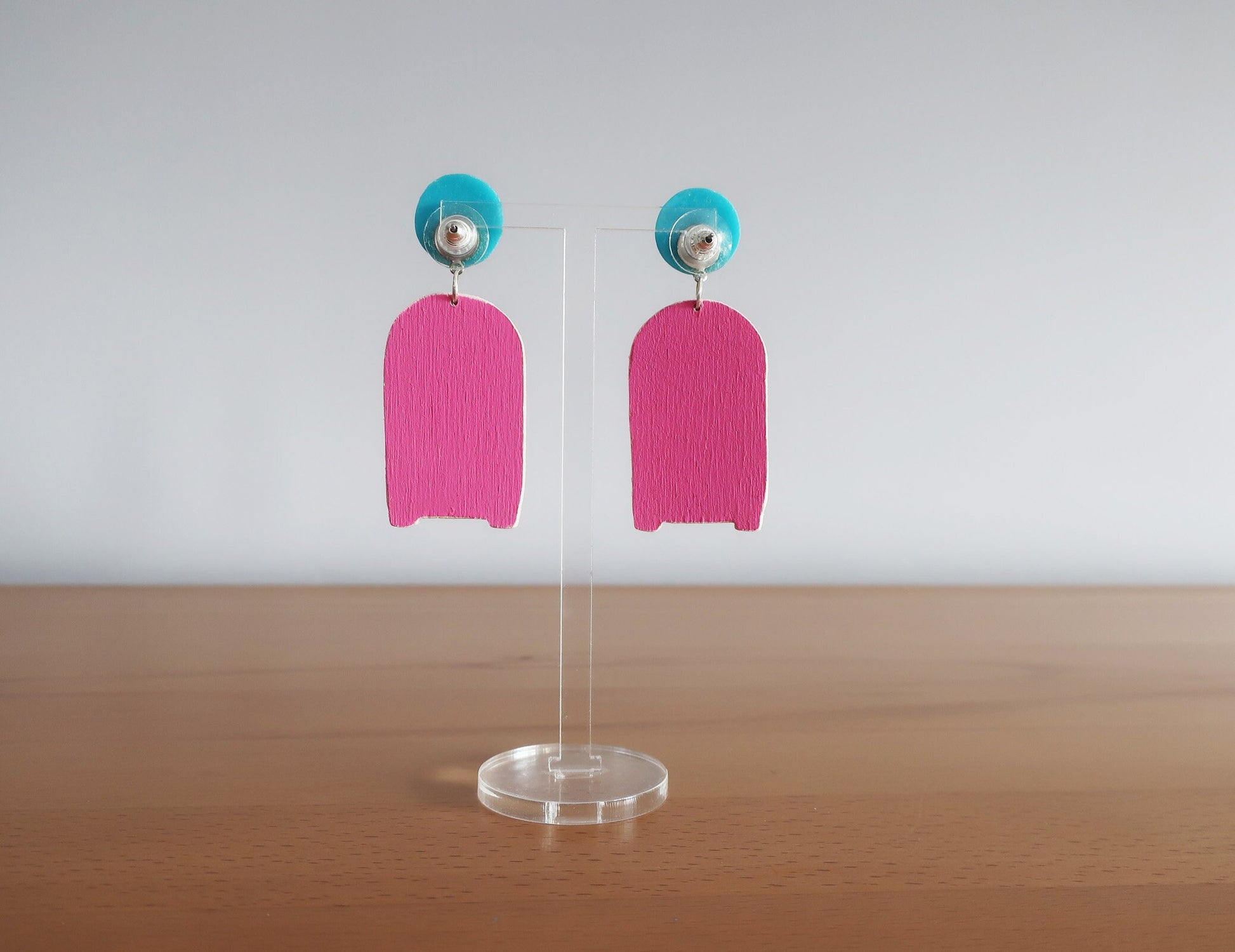 Für diese Ohrringe habe ich eine Zeichnung am Computer erstellt, die ich anschließend manuell auf Birkenholz übertragen und dann mit einer Dekupiersäge ausgesägt habe. Um die Haltbarkeit zu verbessern wurde eine Schicht matter Lack aufgetragen.