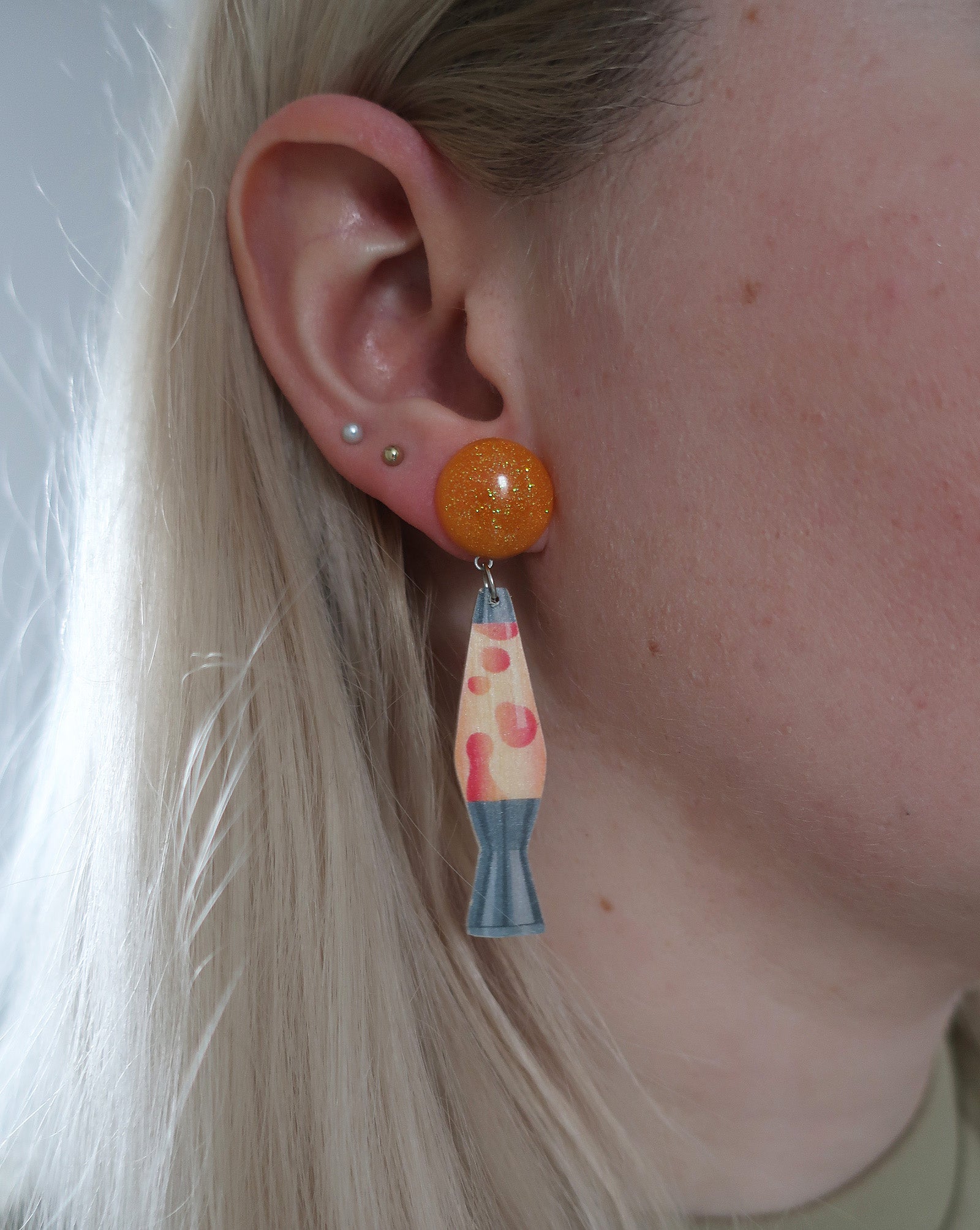 Die Topper wurden aus gefärbtem Epoxidharz und Edelstahlsteckern gefertigt.