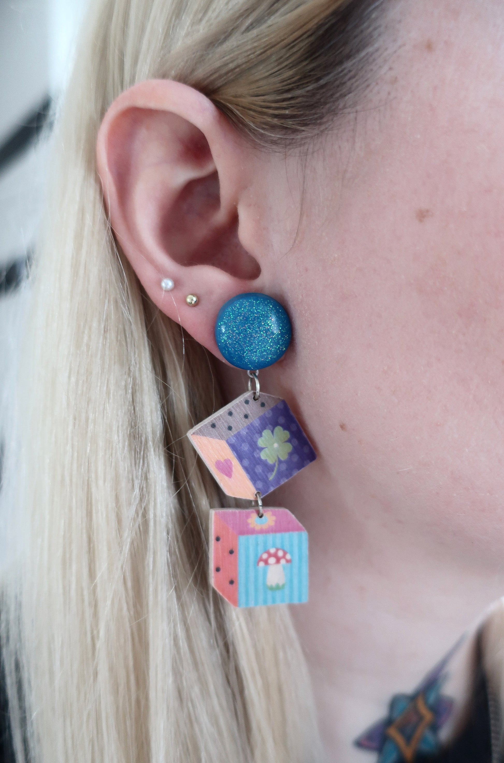 Materialien: Birkensperrholz, Epoxidharz, Glitzer, Edelstahlstecker, Binderinge