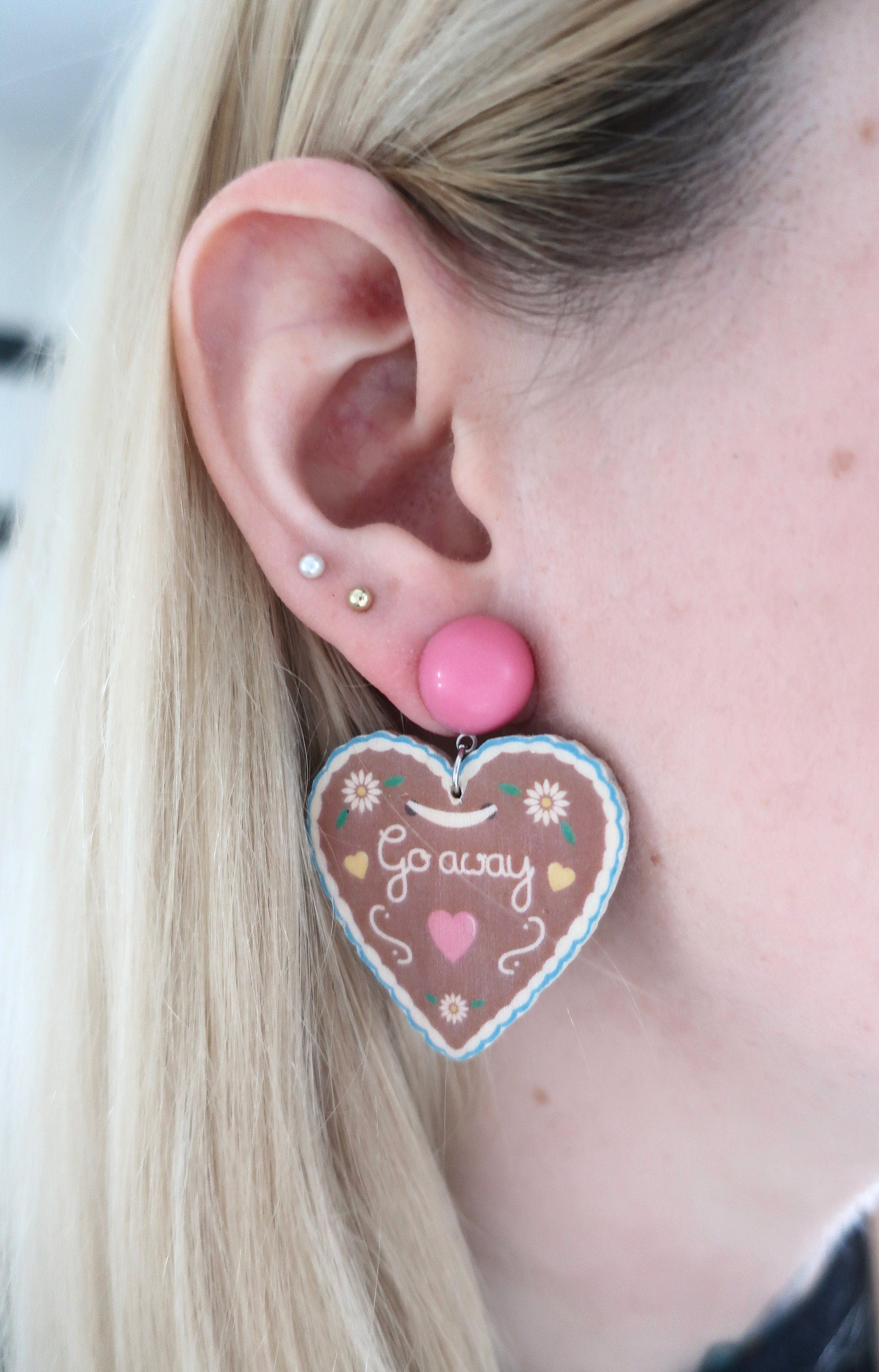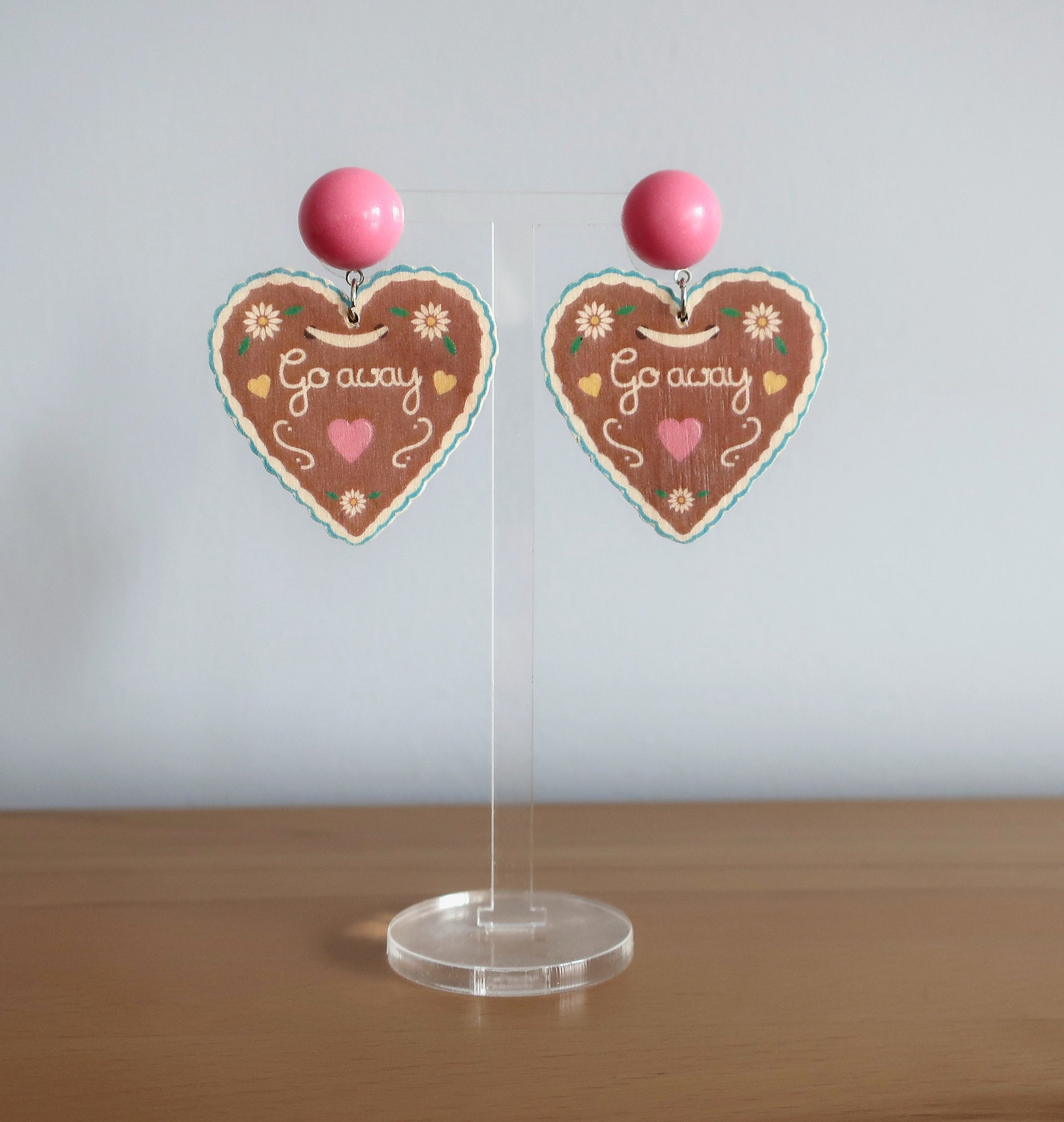 Für diese Ohrringe habe ich eine Zeichnung am Computer erstellt, die ich anschließend manuell auf Birkenholz übertragen und dann mit einer Dekupiersäge ausgesägt habe. Um die Haltbarkeit zu verbessern wurde eine Schicht matter Lack aufgetragen.