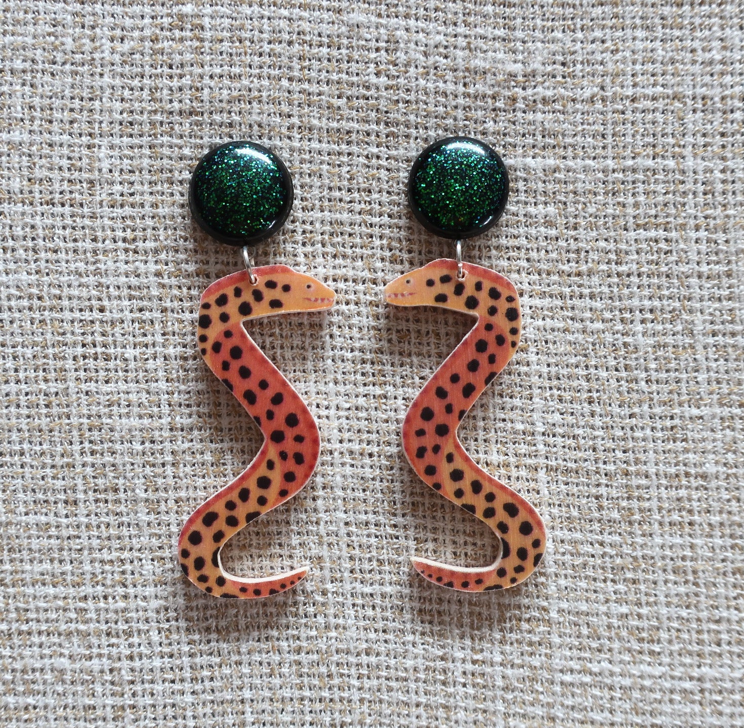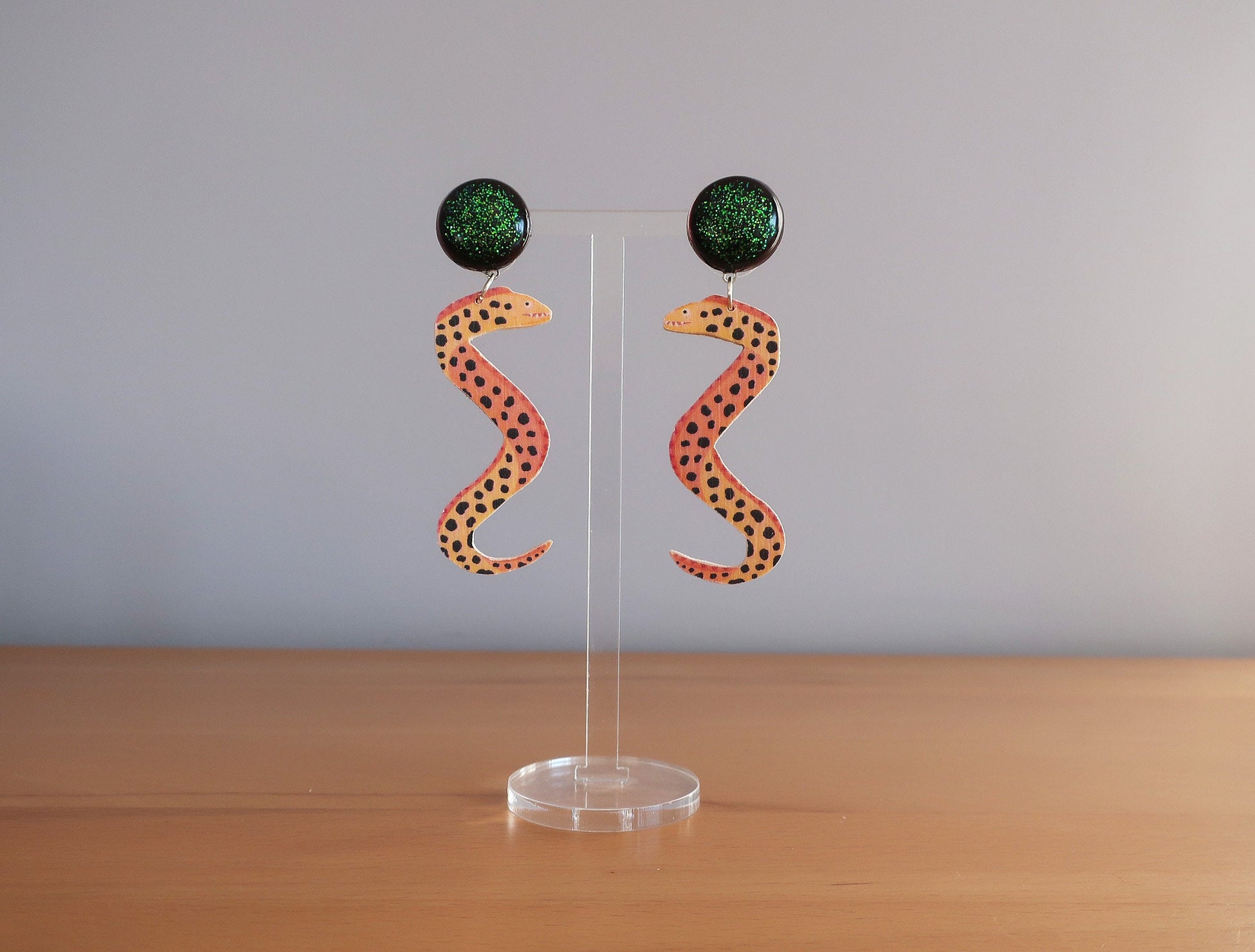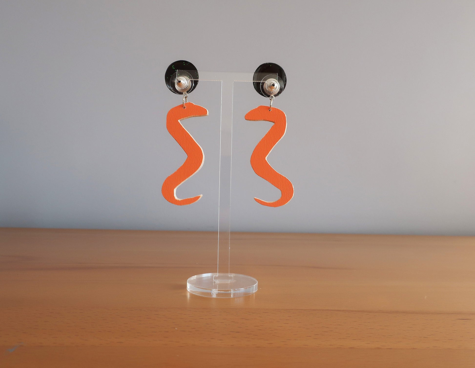 Materialien: Birkensperrholz, Epoxidharz, Glitzer, Edelstahlstecker, Binderinge