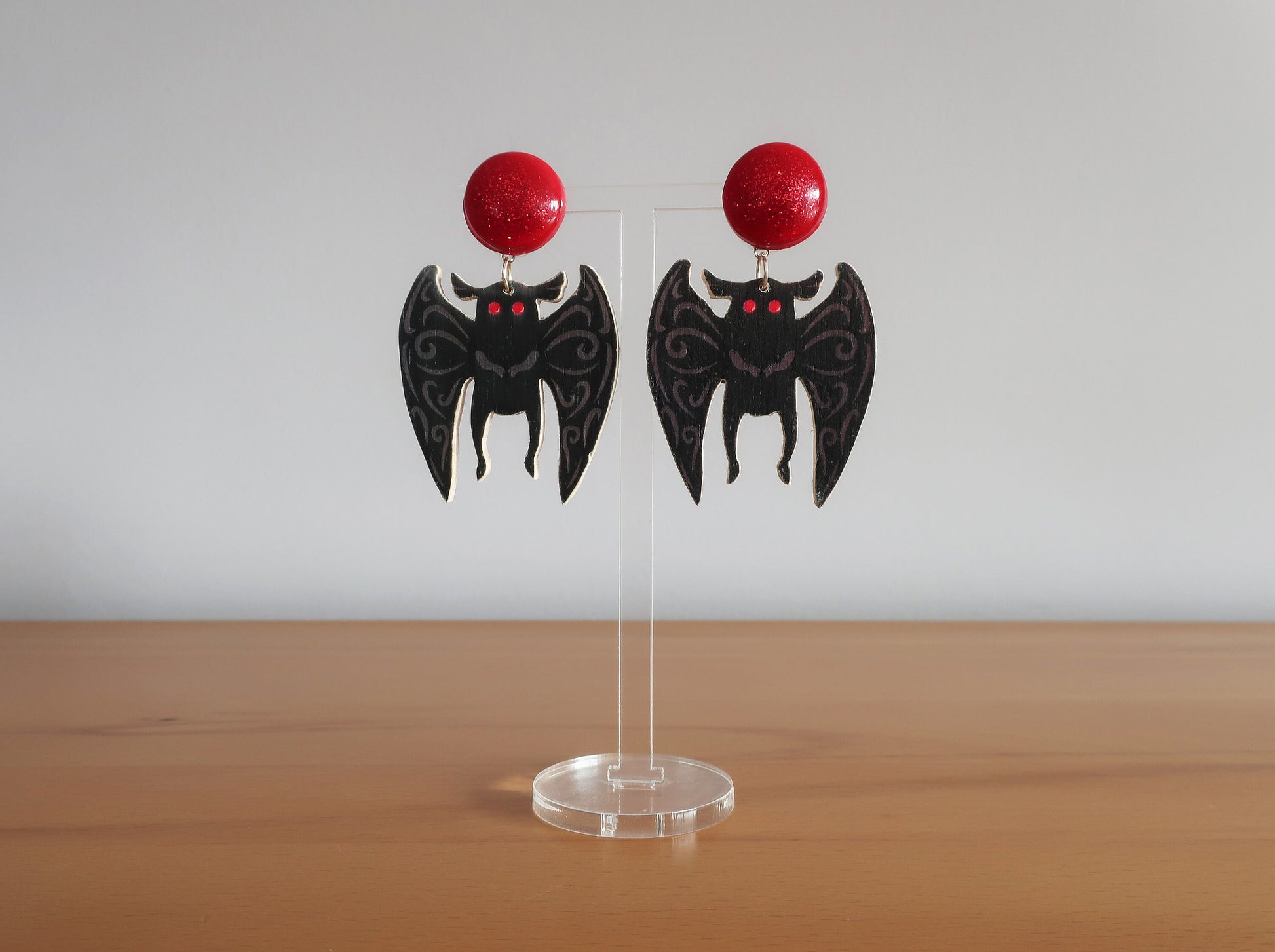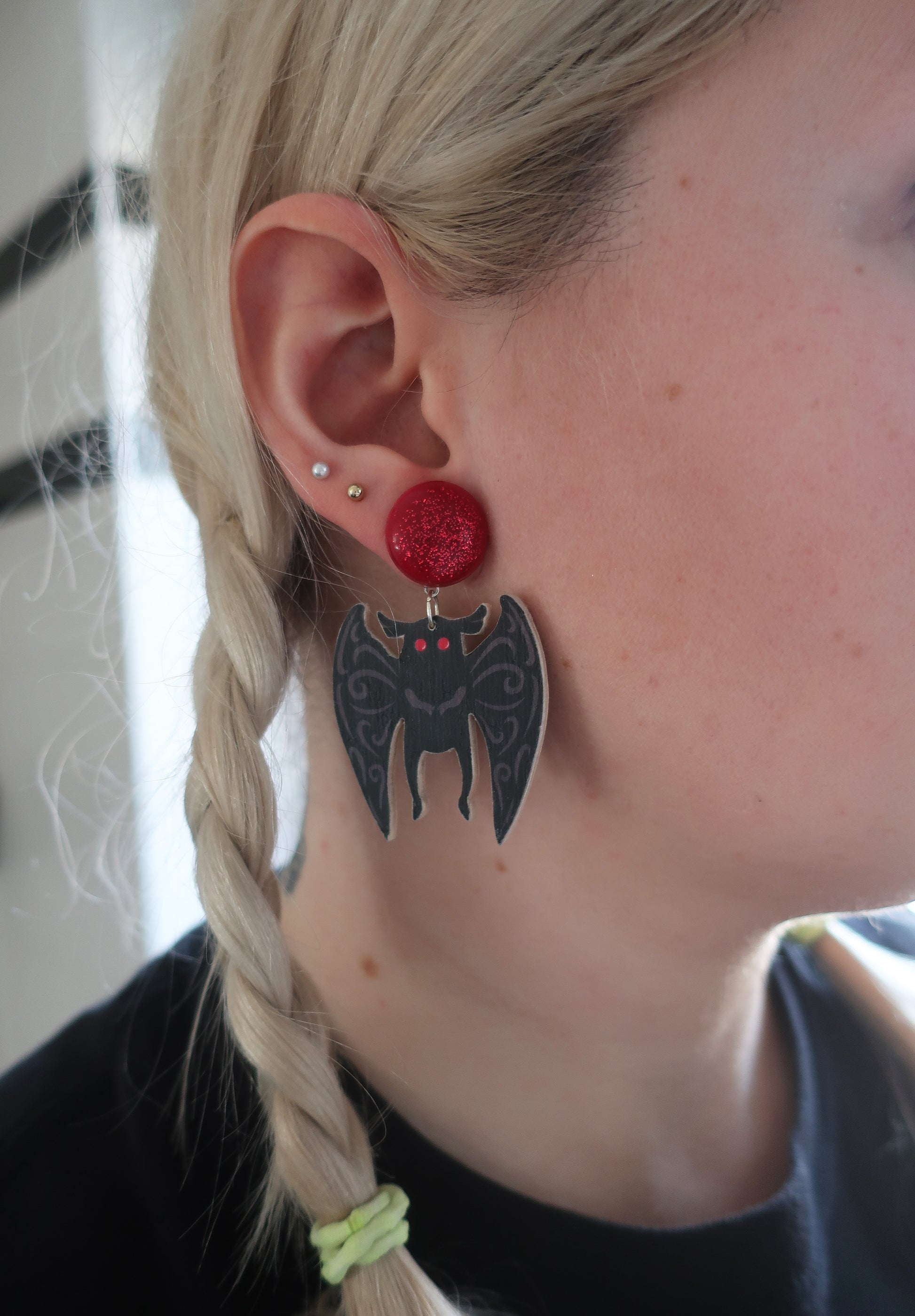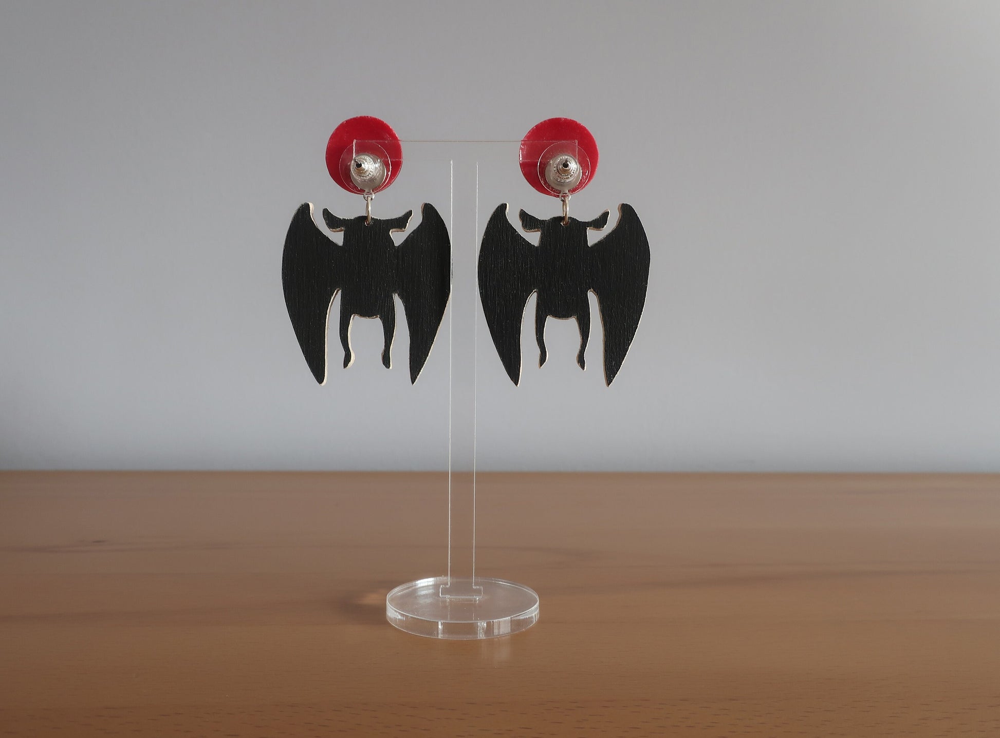Für diese Ohrringe habe ich eine Zeichnung am Computer erstellt, die ich anschließend manuell auf Birkenholz übertragen und dann mit einer Dekupiersäge ausgesägt habe. Um die Haltbarkeit zu verbessern wurde eine Schicht matter Lack aufgetragen.