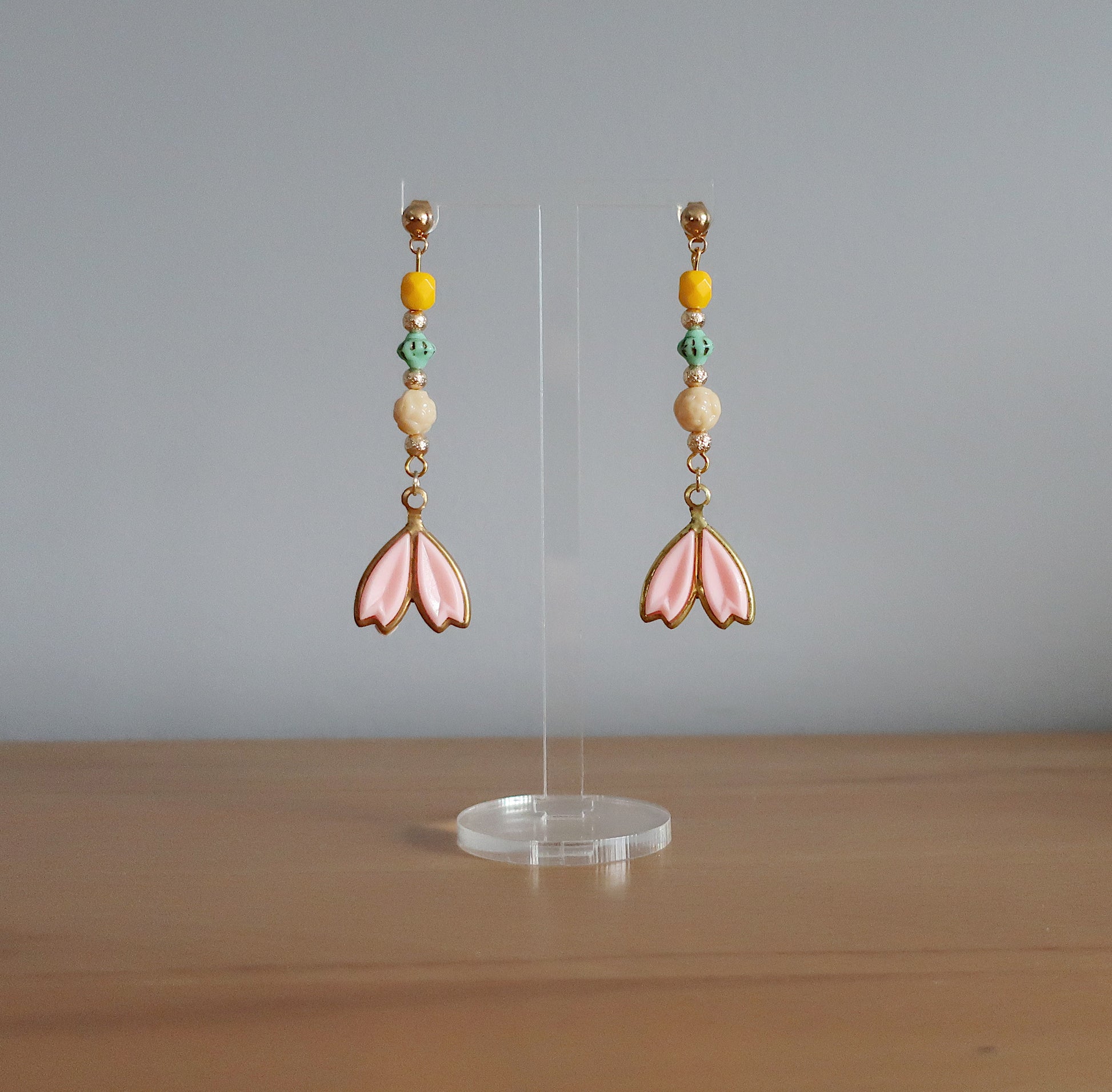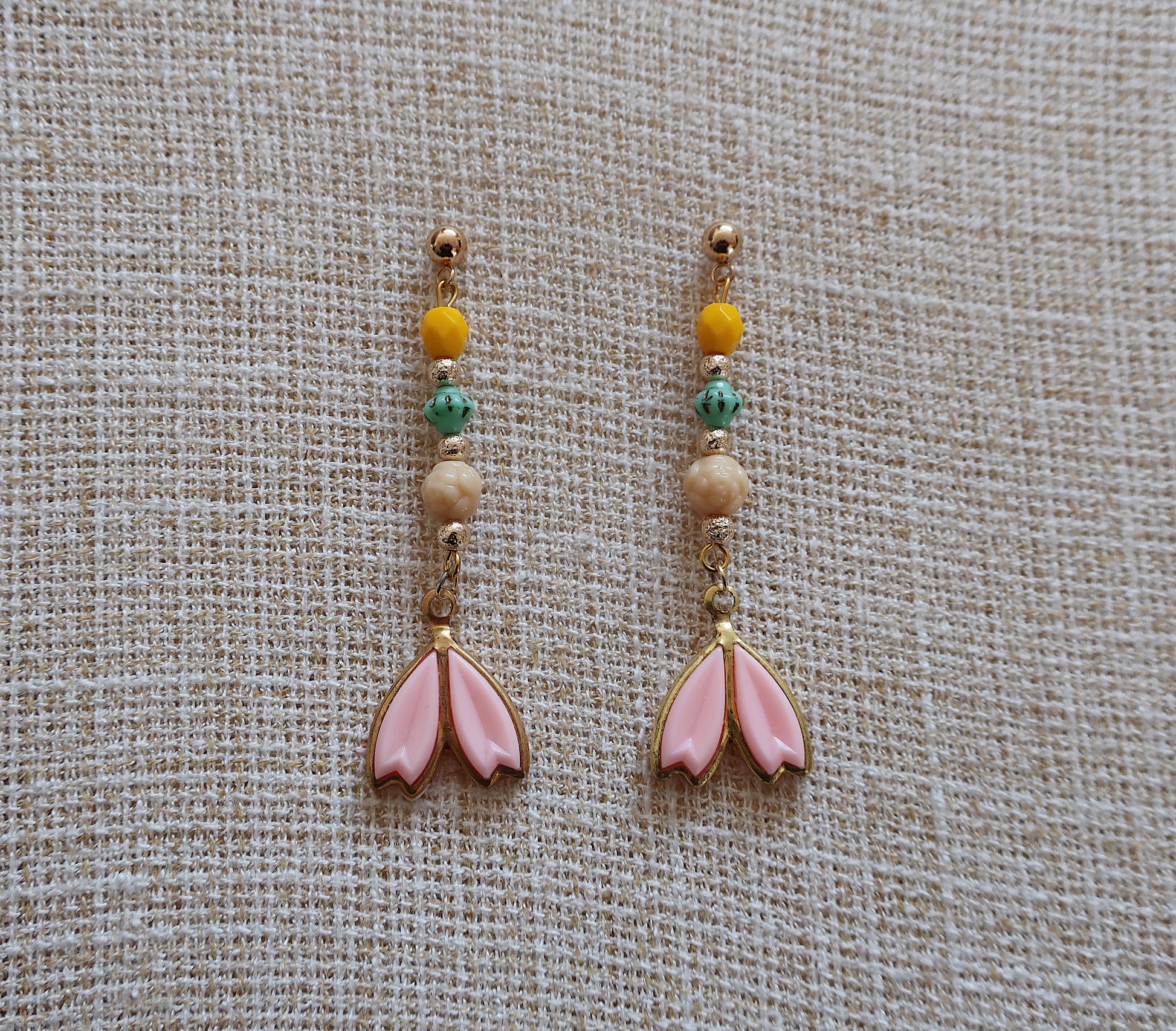 Materialien: Ösenstifte, Glasperlen, Metallperlen, Edelstahlstecker, Blütenanhänger