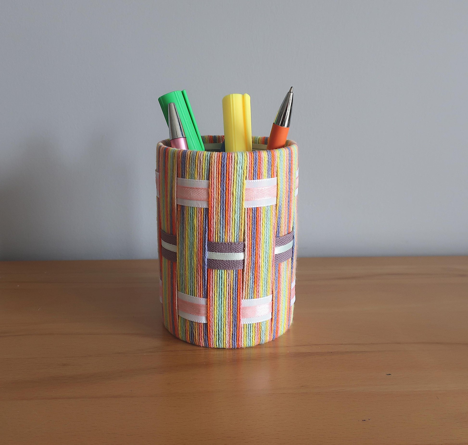Stifthalter mit Regenbogengarn