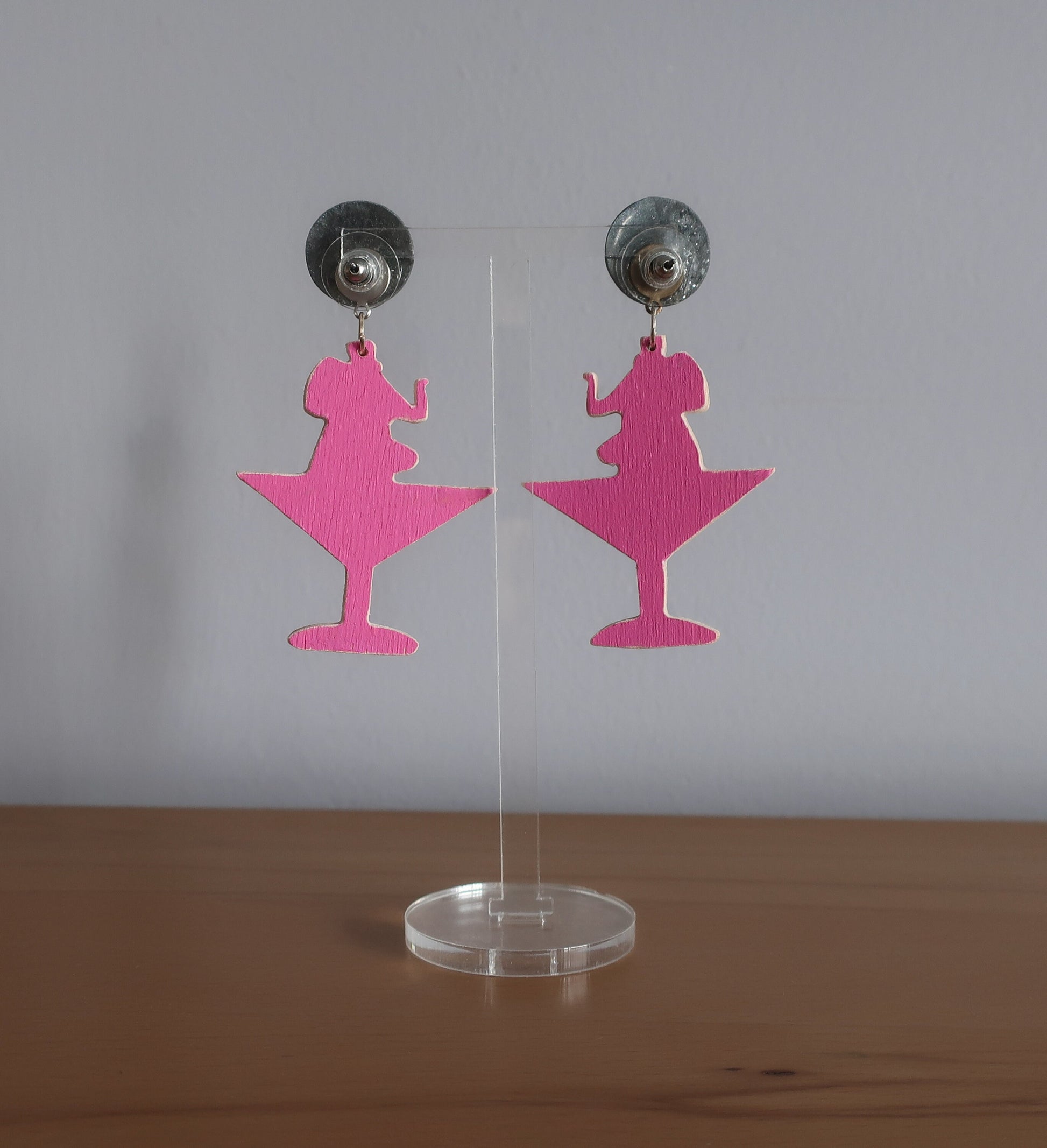 Für diese Ohrringe habe ich eine Zeichnung am Computer erstellt, die ich anschließend manuell auf Birkenholz übertragen und dann mit einer Dekupiersäge ausgesägt habe. Um die Haltbarkeit zu verbessern wurde eine Schicht matter Lack aufgetragen.