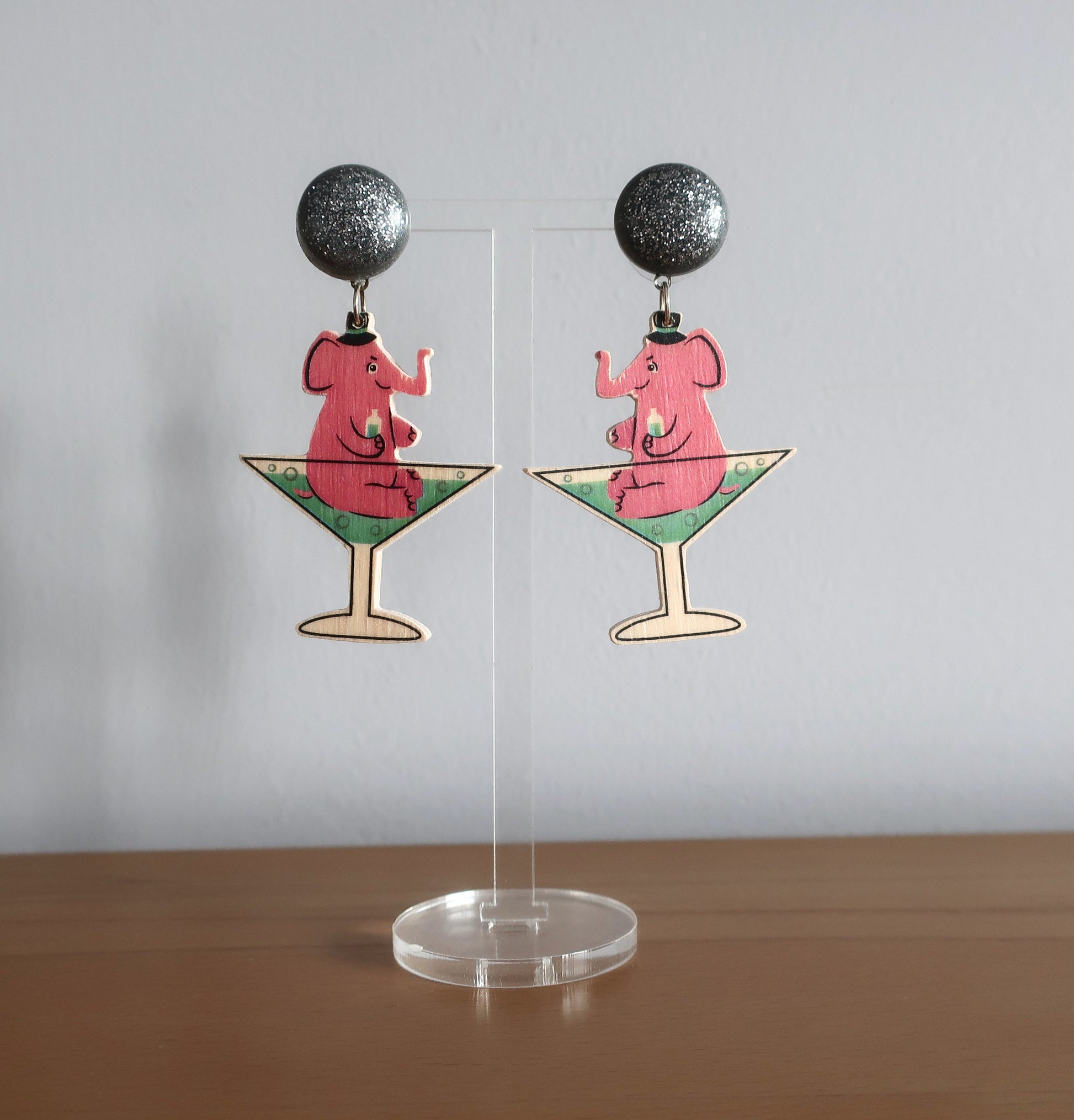 Materialien: Birkensperrholz, Epoxidharz, Glitzer, Edelstahlstecker, Binderinge