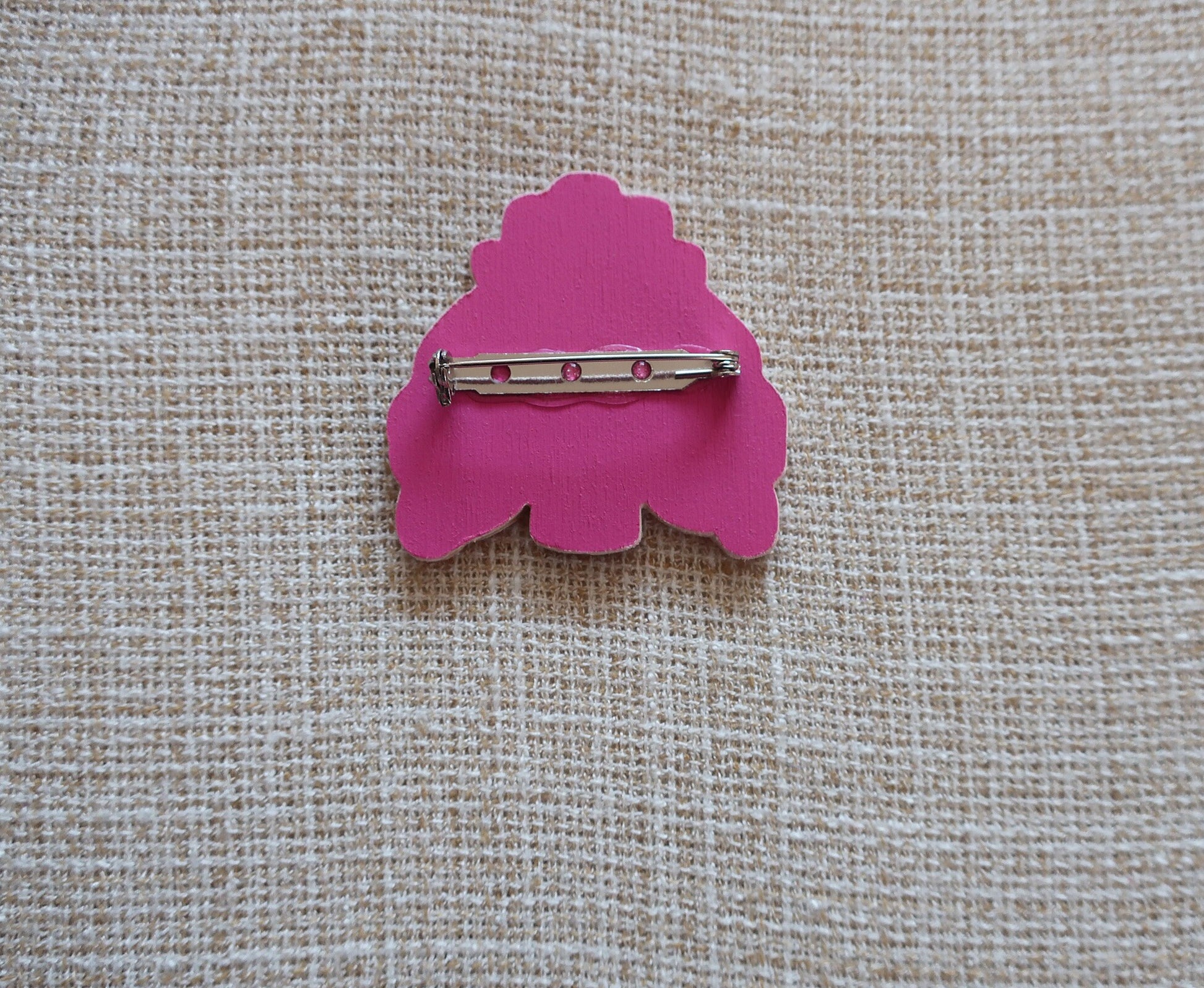 Für diese Brosche habe ich eine Zeichnung am Computer erstellt, die ich anschließend manuell auf Birkenholz übertragen und dann mit einer Dekupiersäge ausgesägt habe. Um die Haltbarkeit zu verbessern wurde eine Schicht matter Lack aufgetragen.