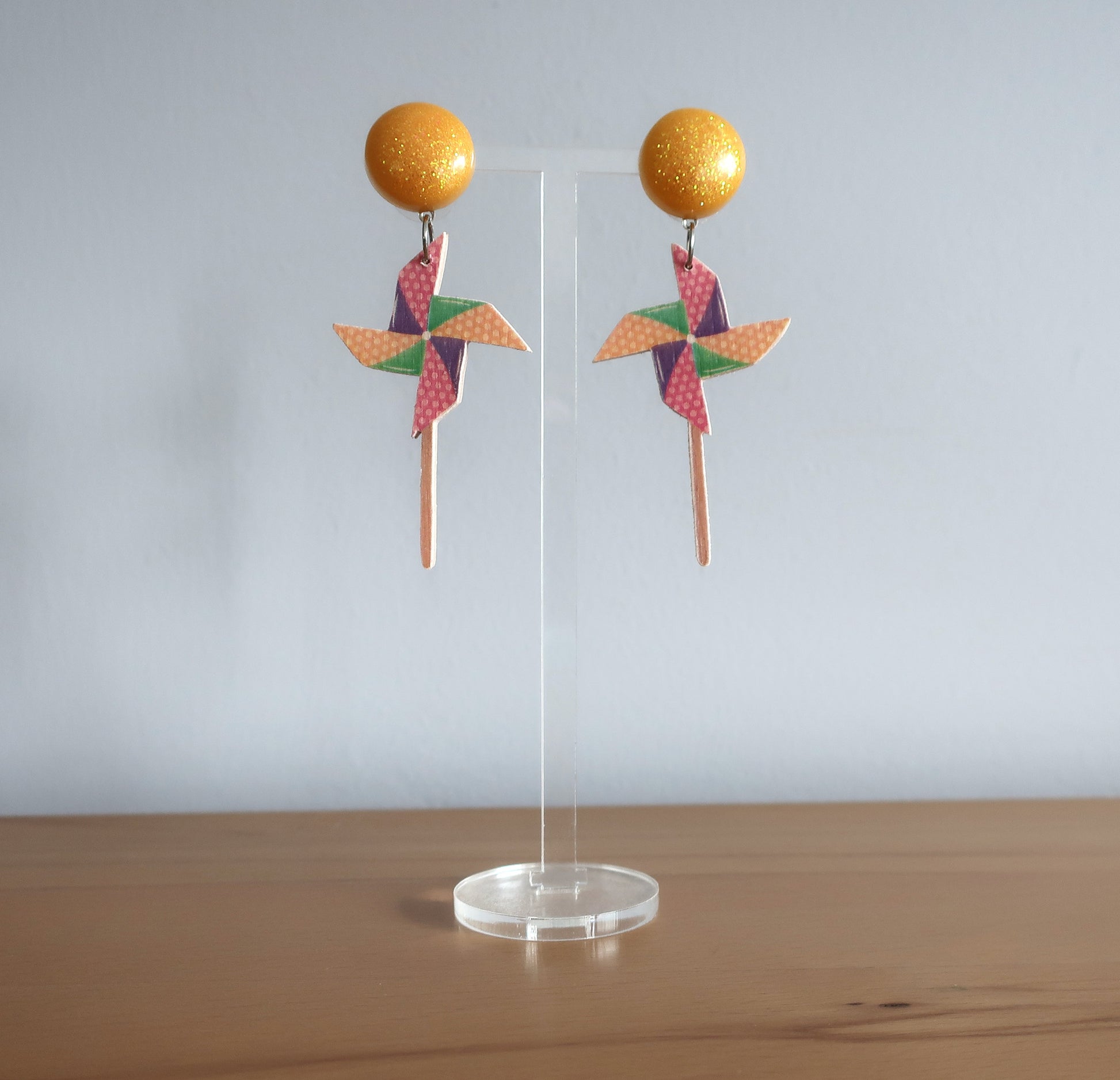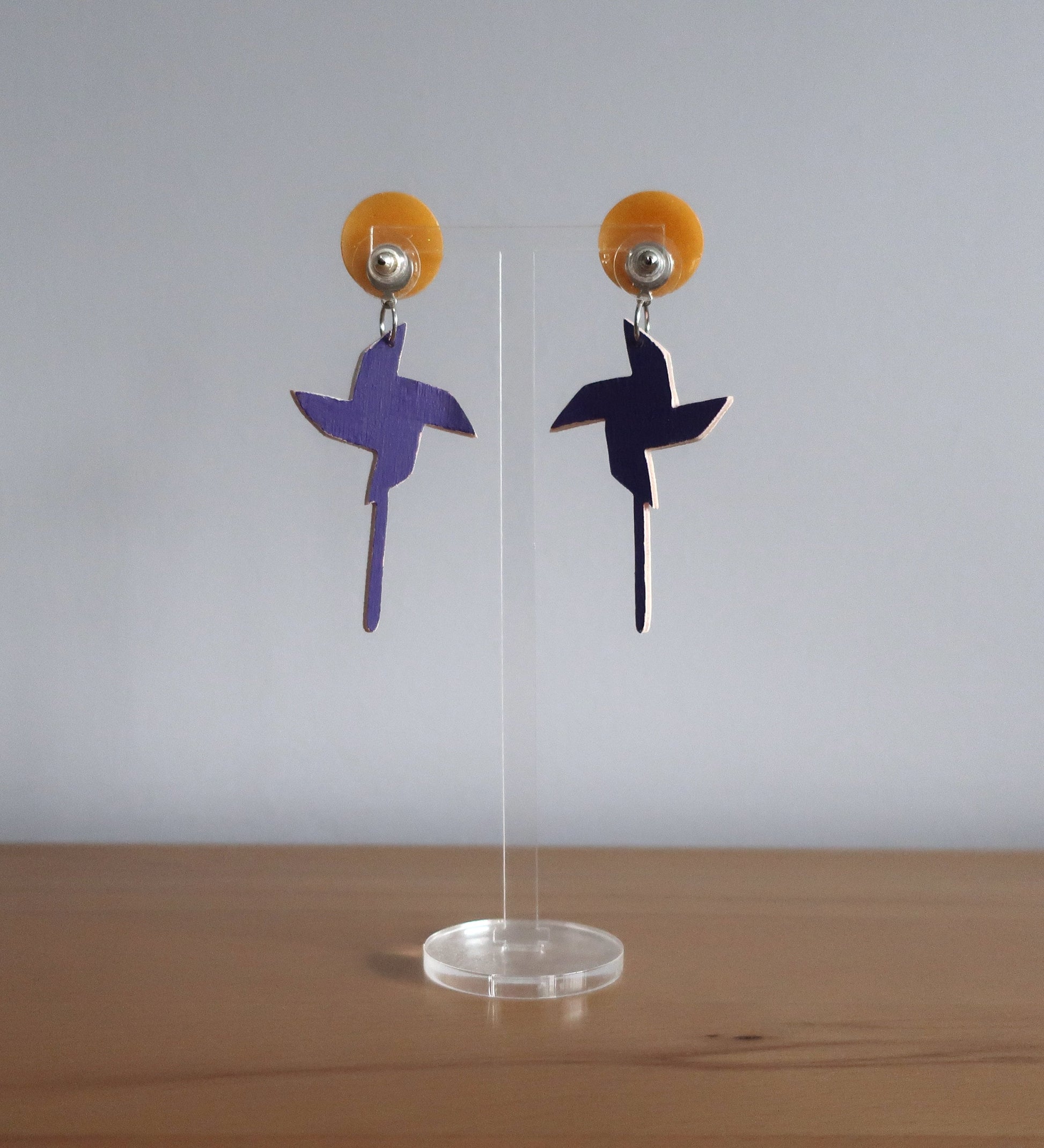 Für diese Ohrringe habe ich eine Zeichnung am Computer erstellt, die ich anschließend manuell auf Birkenholz übertragen und dann mit einer Dekupiersäge ausgesägt habe. Um die Haltbarkeit zu verbessern wurde eine Schicht matter Lack aufgetragen.