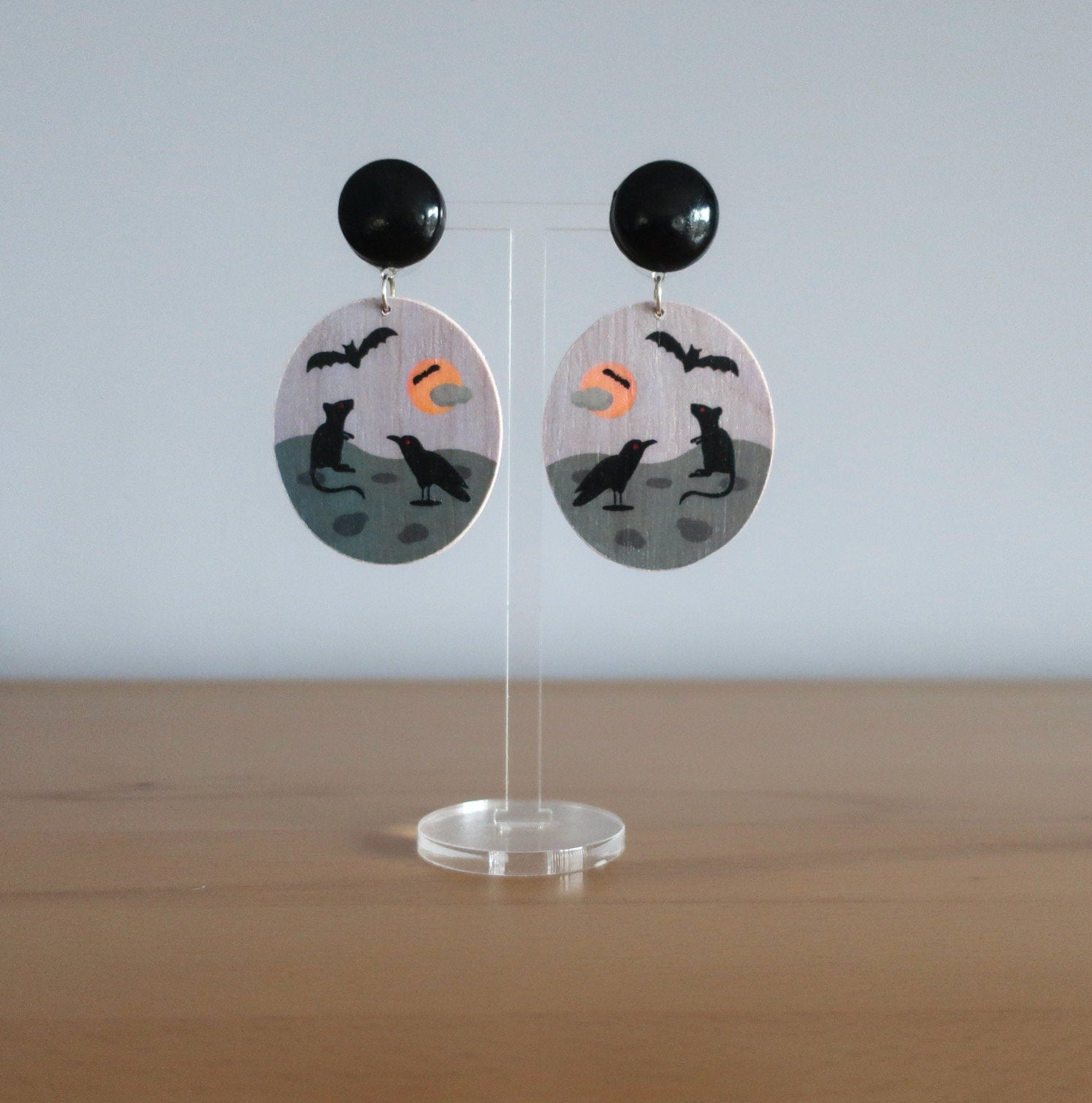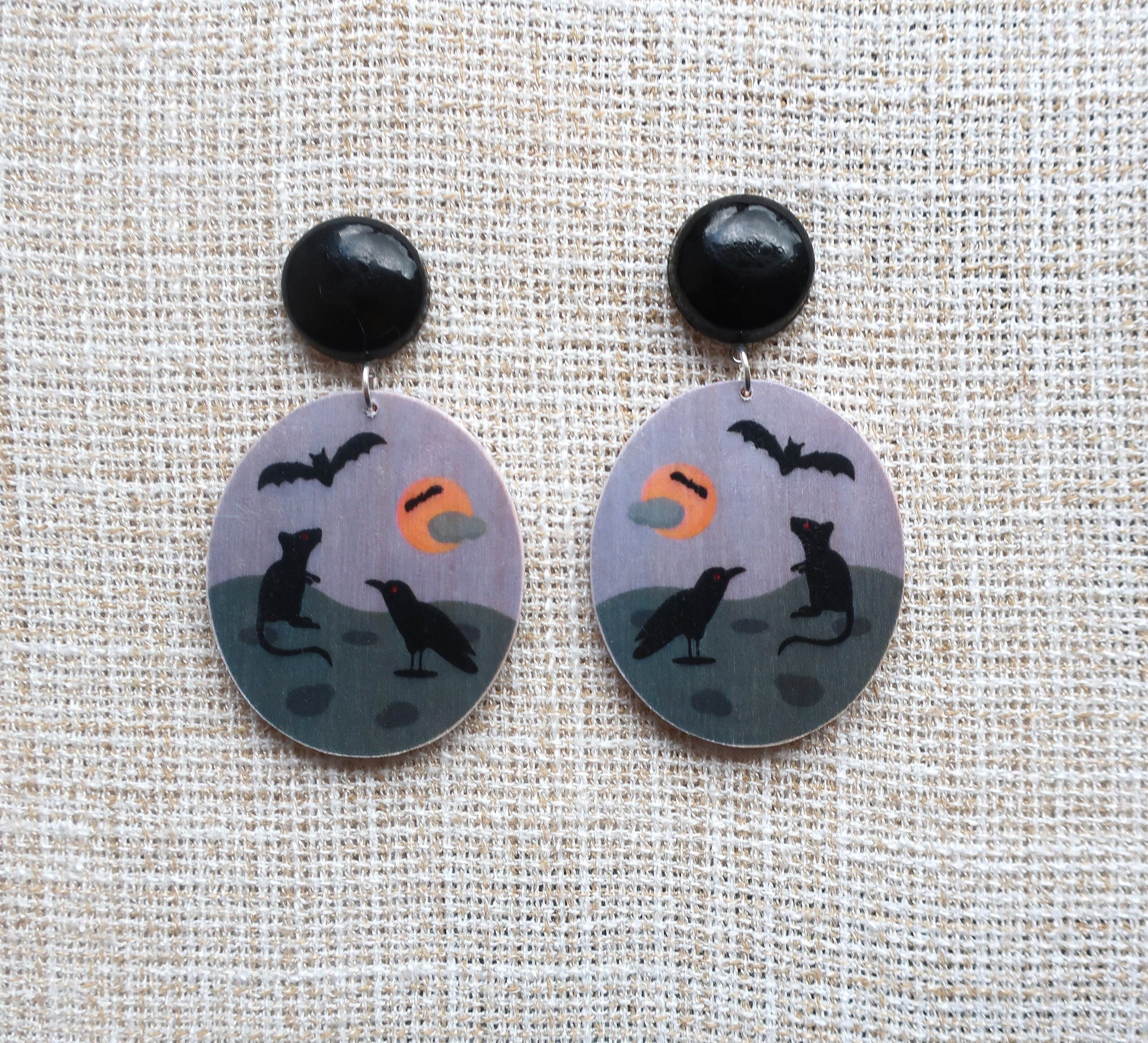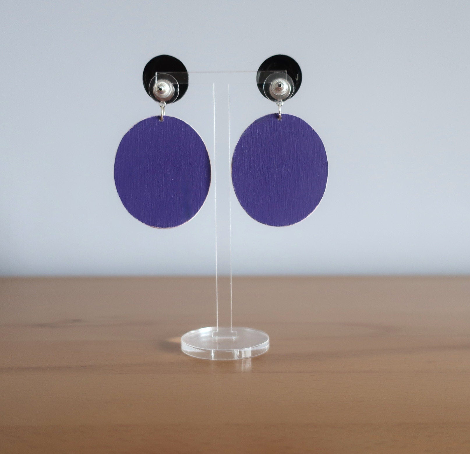Für diese Ohrringe habe ich eine Zeichnung am Computer erstellt, die ich anschließend manuell auf Birkenholz übertragen und dann mit einer Dekupiersäge ausgesägt habe. Um die Haltbarkeit zu verbessern wurde eine Schicht matter Lack aufgetragen.