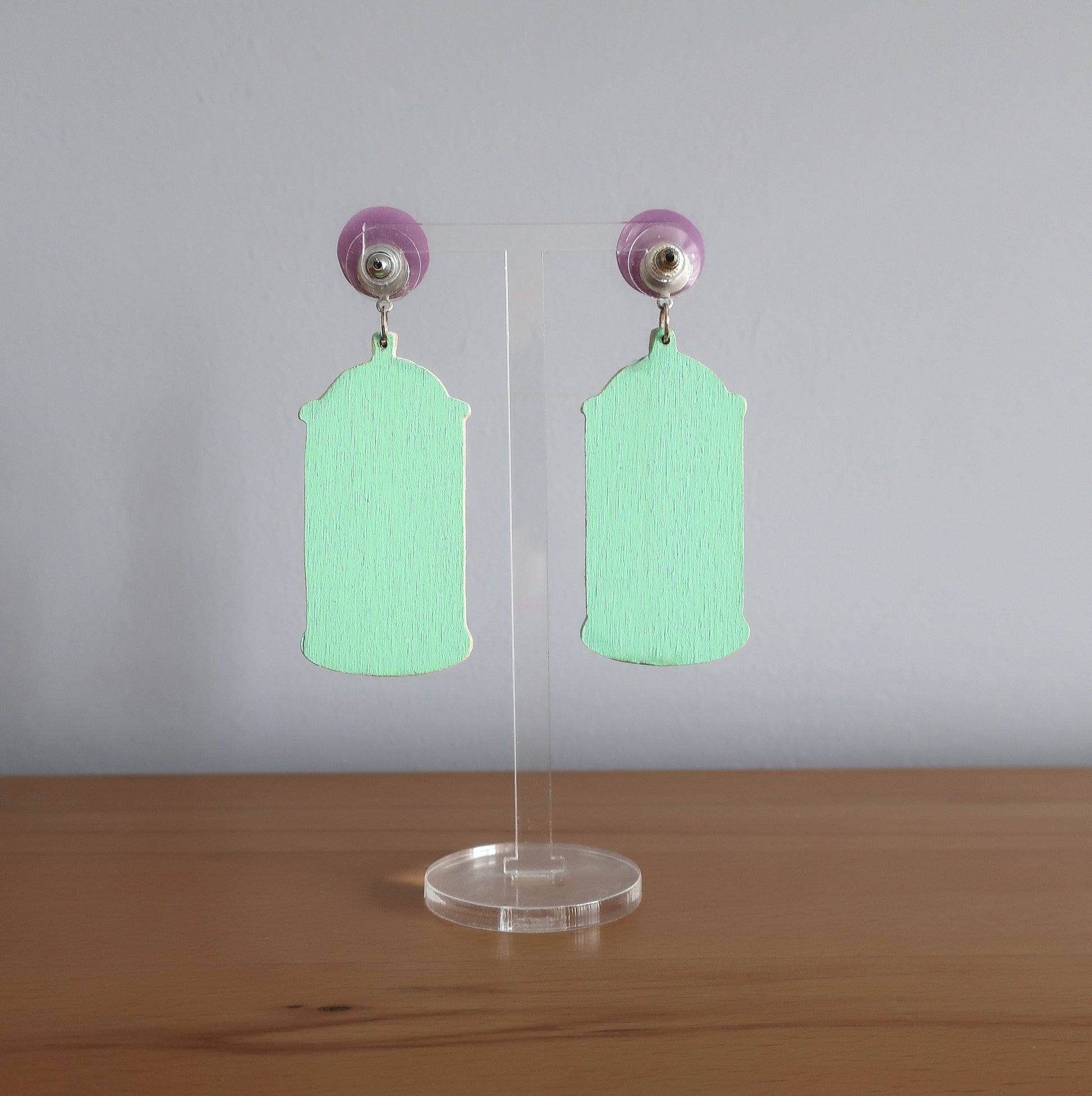 Für diese Ohrringe habe ich eine Zeichnung am Computer erstellt, die ich anschließend manuell auf Birkenholz übertragen und dann mit einer Dekupiersäge ausgesägt habe. Um die Haltbarkeit zu verbessern wurde eine Schicht matter Lack aufgetragen.