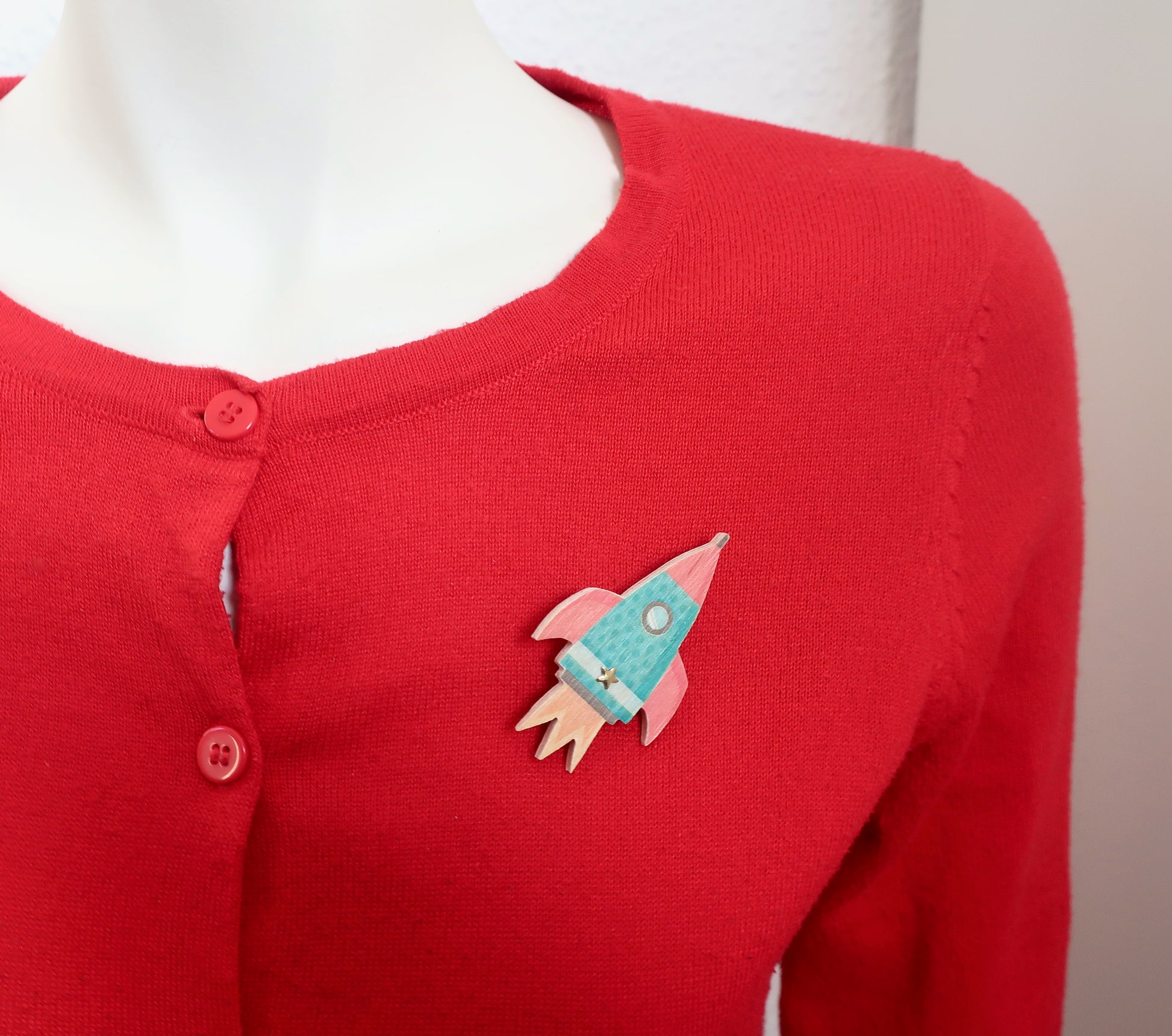 Für diese Brosche habe ich eine Zeichnung am Computer erstellt, die ich anschließend manuell auf Birkenholz übertragen und dann mit einer Dekupiersäge ausgesägt habe. Um die Haltbarkeit zu verbessern wurde eine Schicht matter Lack aufgetragen.