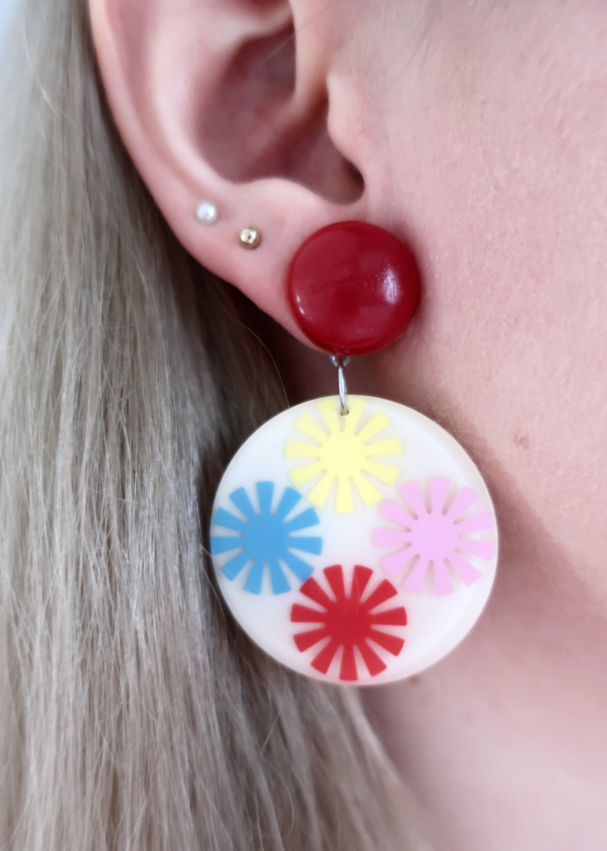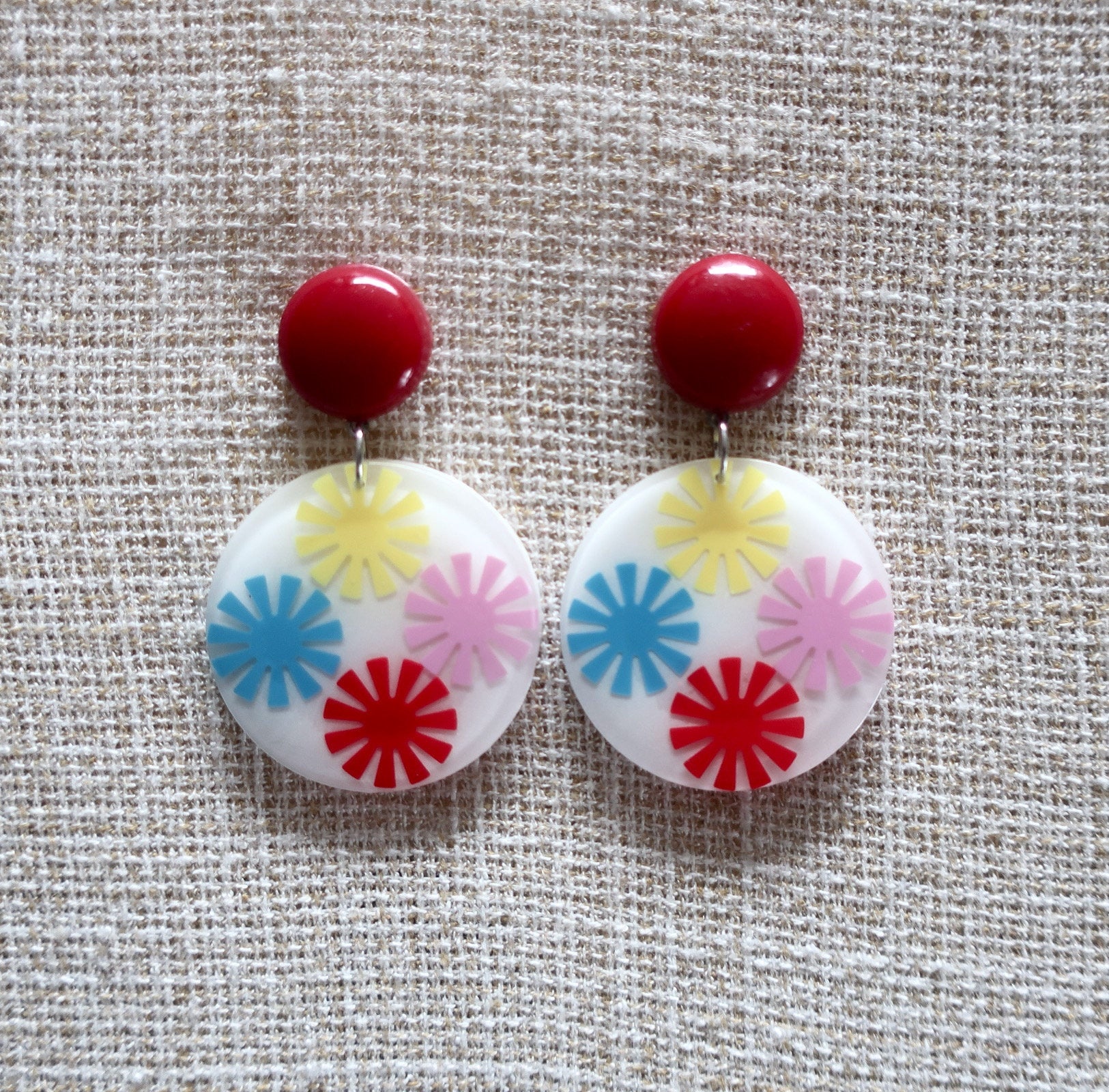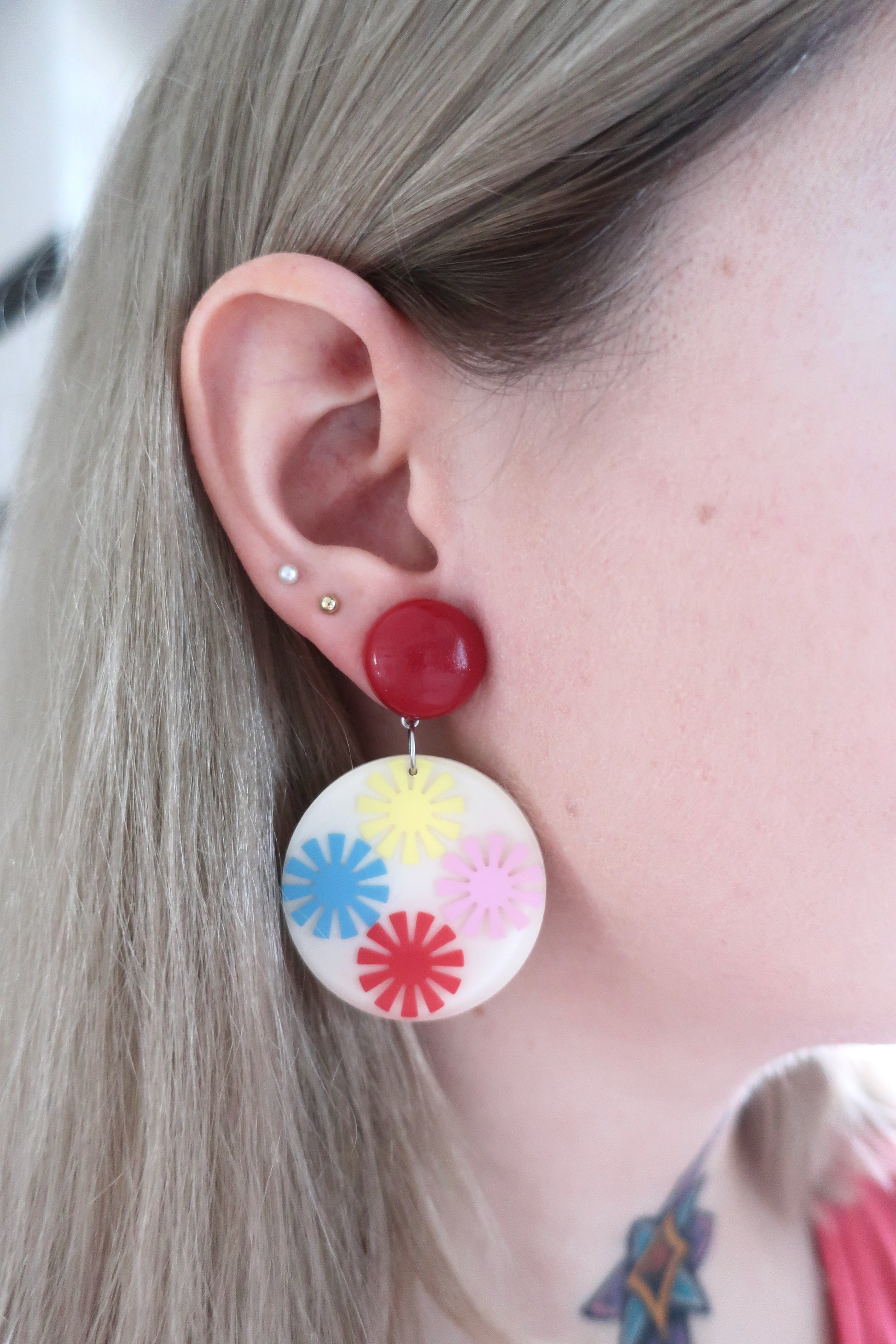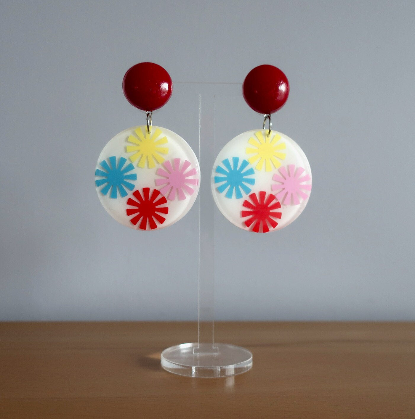 Materialien: Epoxidharz, Pailletten, Edelstahlstecker, Binderinge