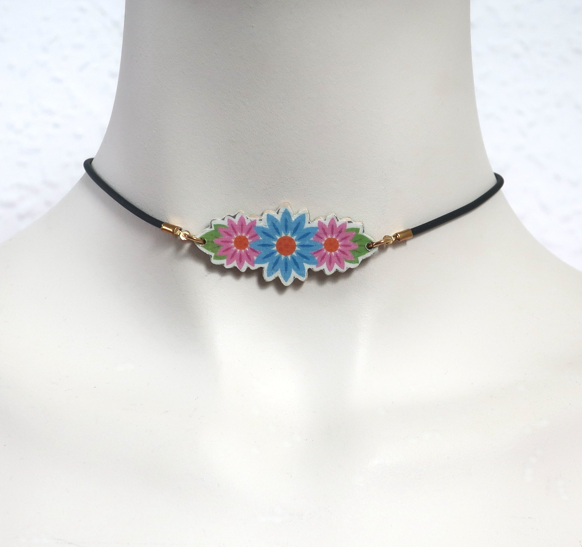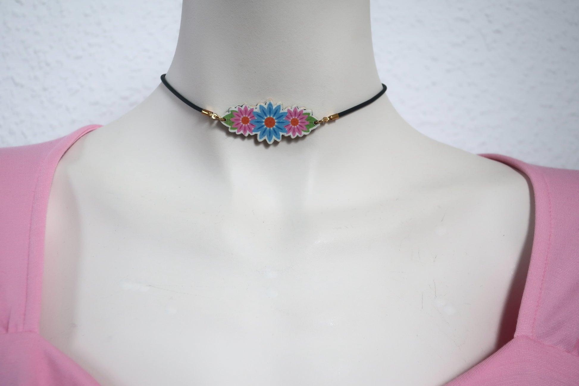Schwarzer Kautschukchoker mit Blumen-Charm