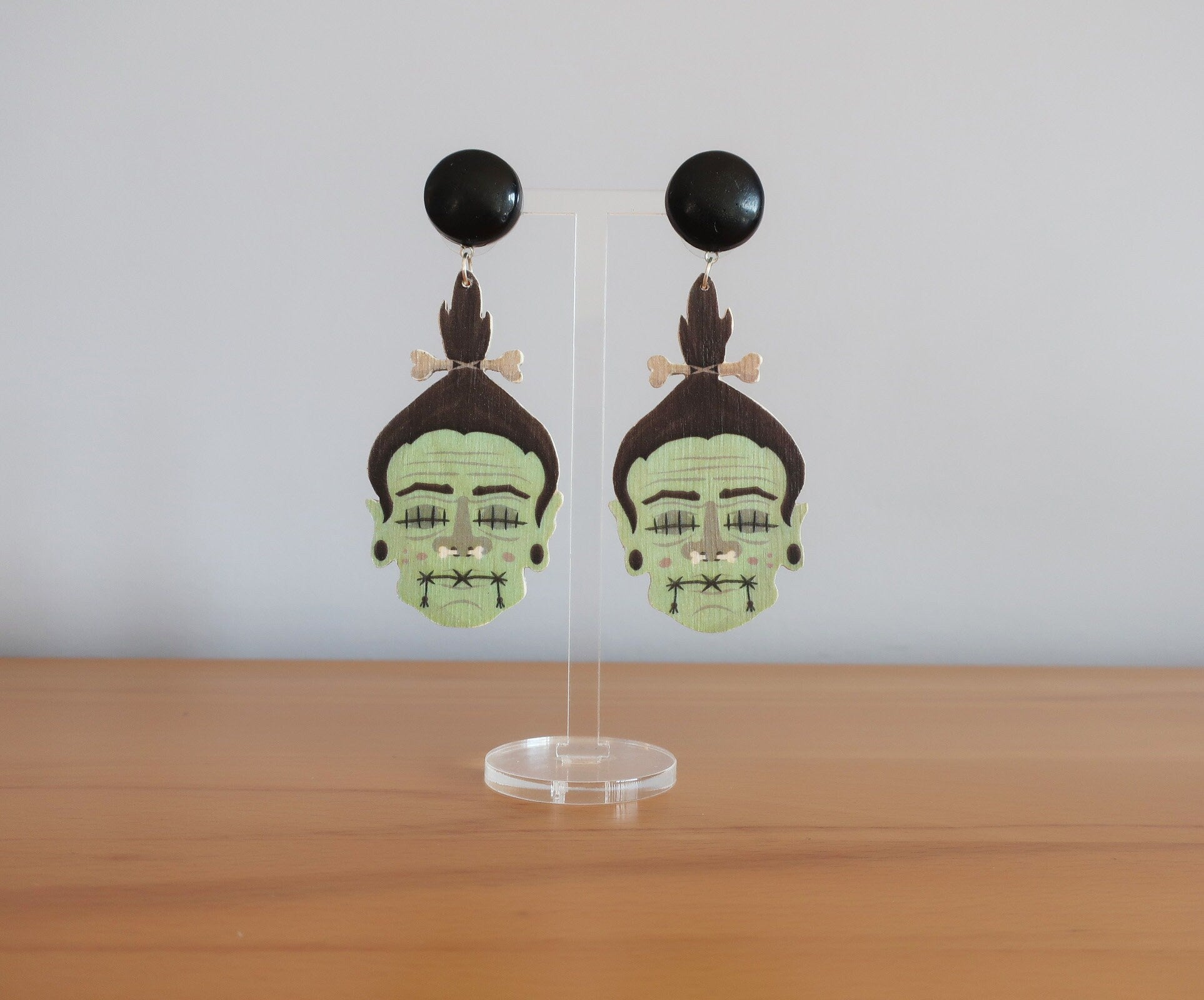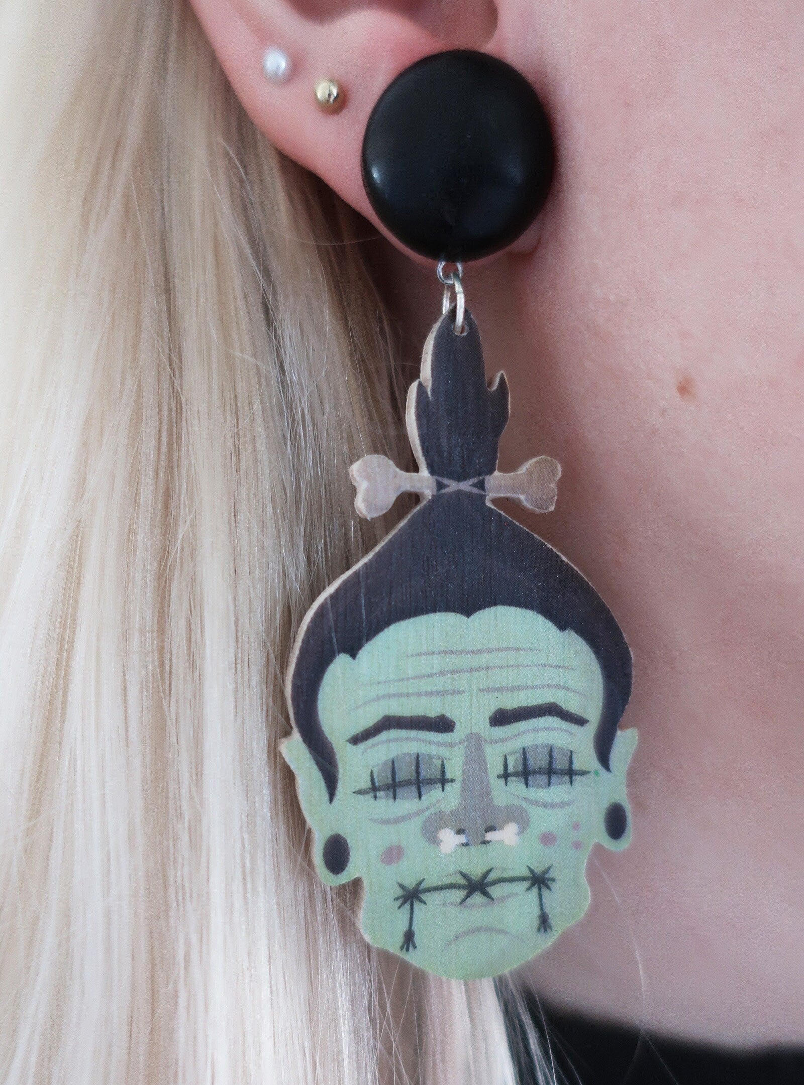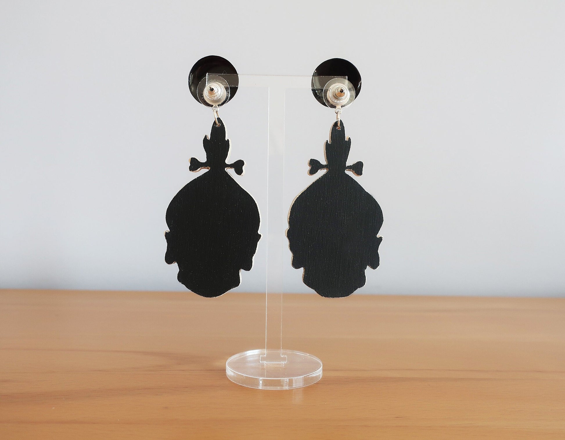 Für diese Ohrringe habe ich eine Zeichnung am Computer erstellt, die ich anschließend manuell auf Birkenholz übertragen und dann mit einer Dekupiersäge ausgesägt habe. Um die Haltbarkeit zu verbessern wurde eine Schicht matter Lack aufgetragen.