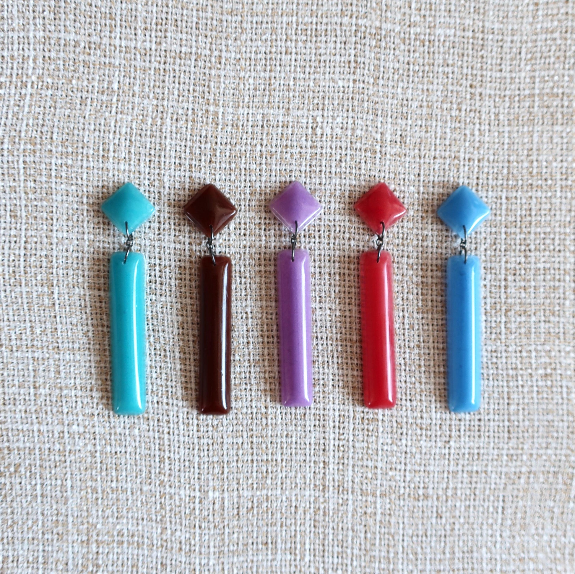 Ich habe diese Ohrringe aus gefärbtem Epoxidharz erstellt.