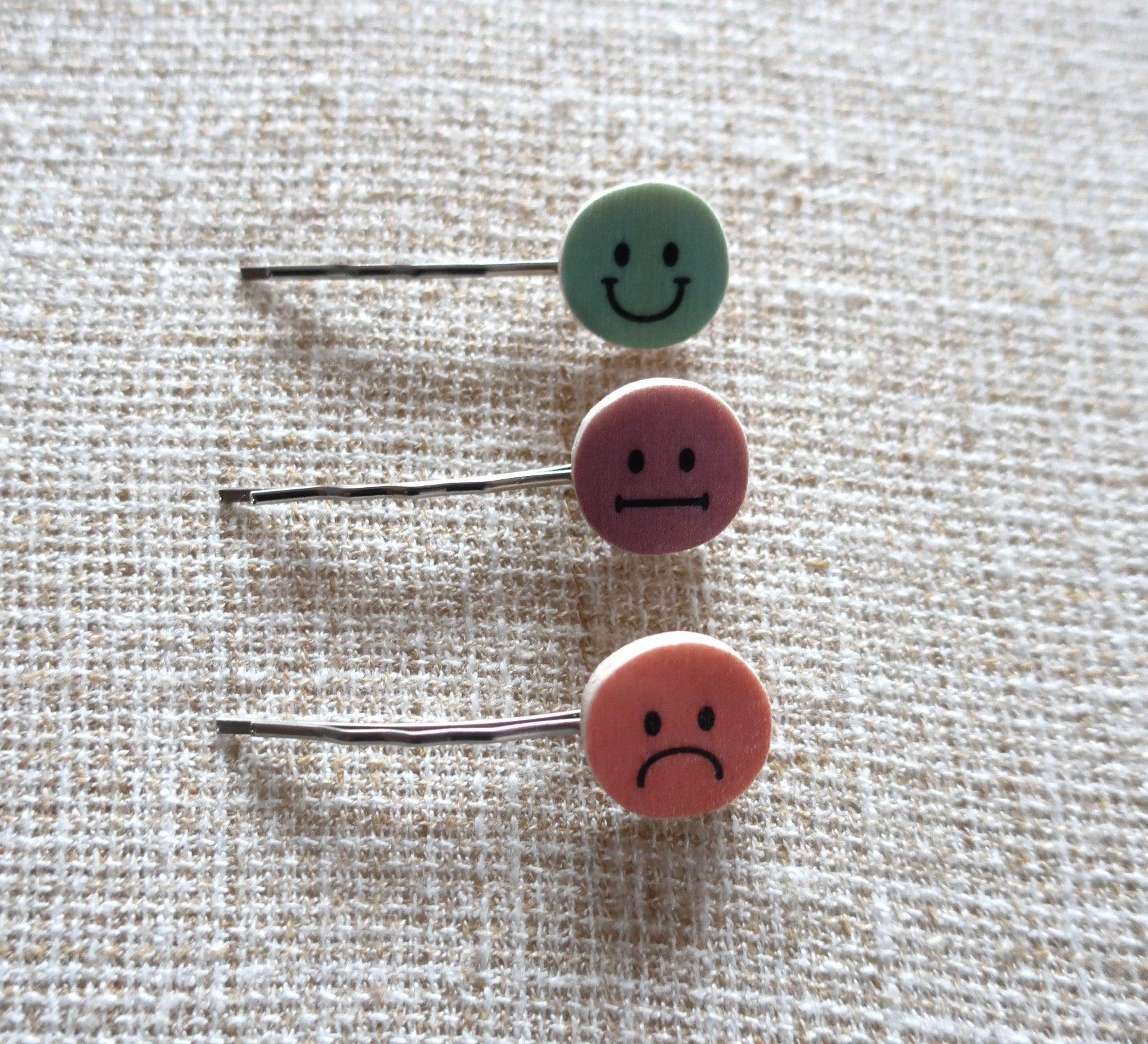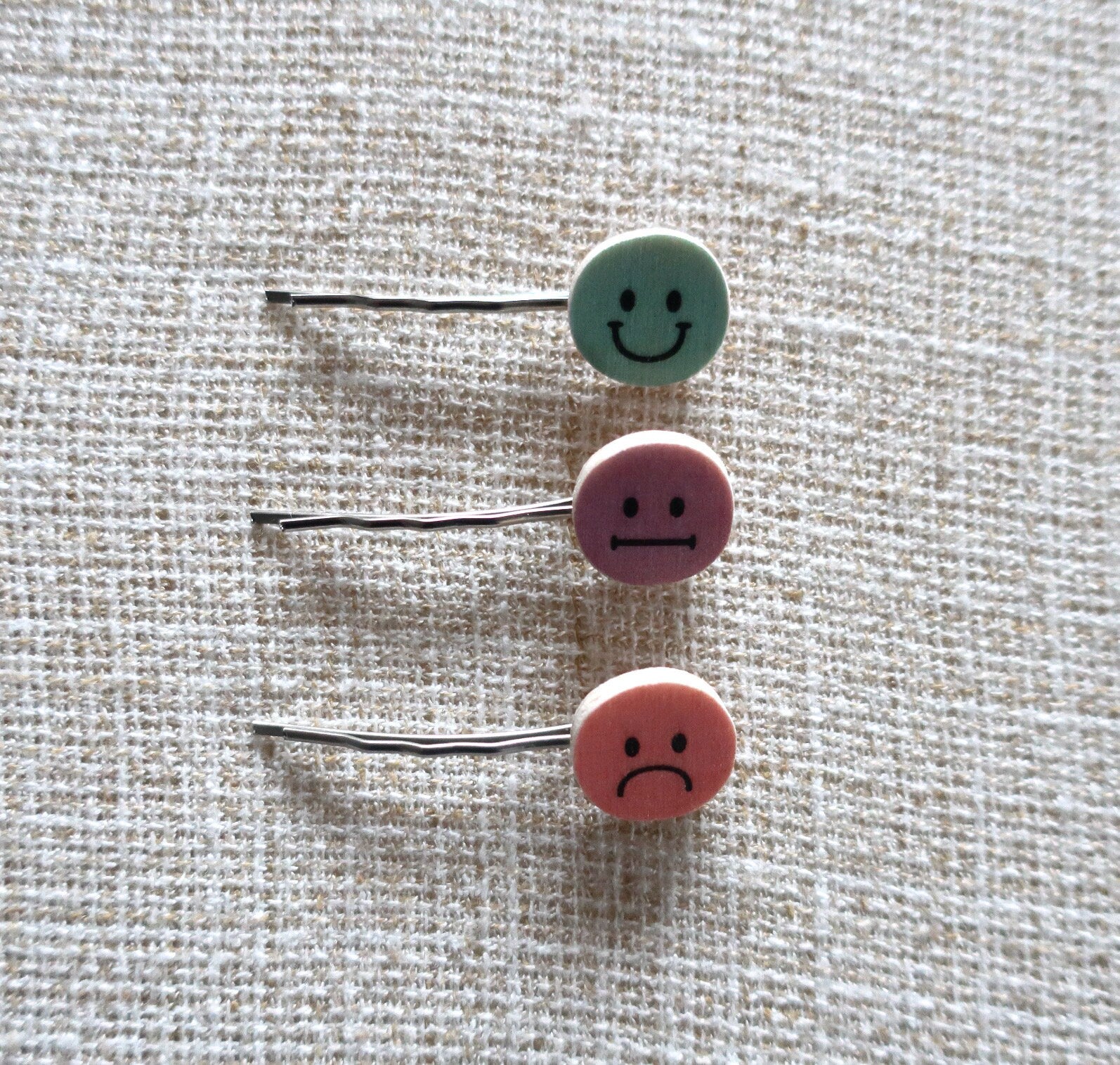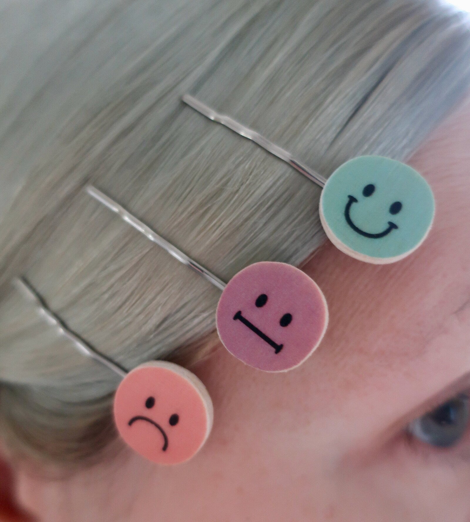 Haarnadeln 'Smileys', Set mit drei Smiley-Haarpins