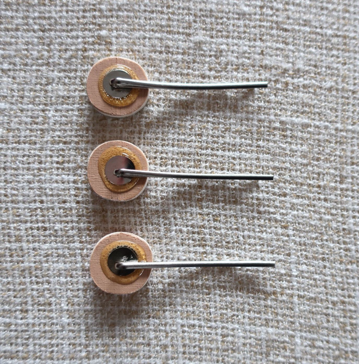 Das Set besteht aus 3 silberfarbenen Haarpins mit verschiedenen Smileys aus Birkensperrholz. Die Pins sind ungefähr 5 cm lang.