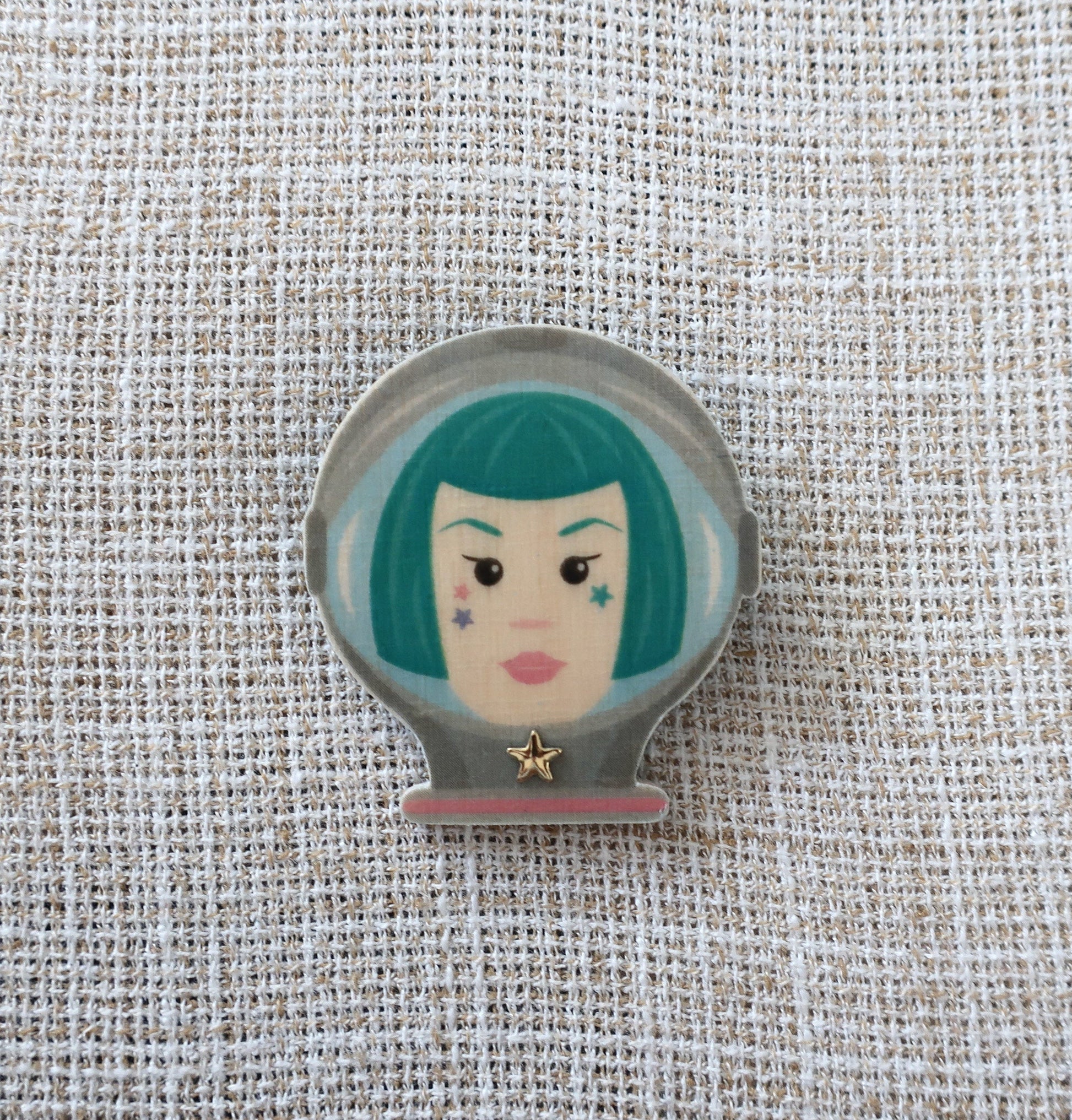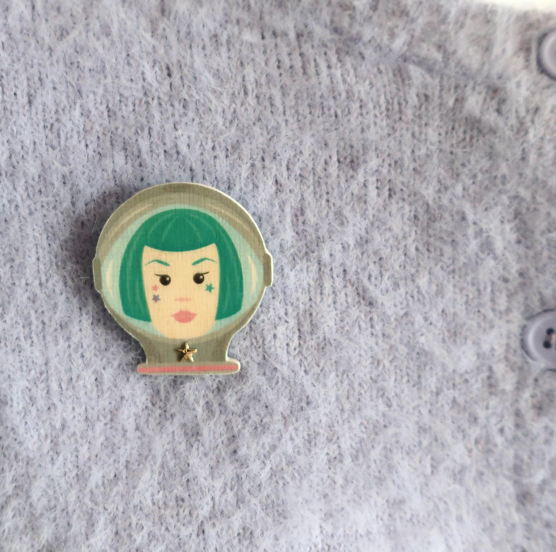 Für diese Brosche habe ich eine Zeichnung am Computer erstellt, die ich anschließend manuell auf Birkenholz übertragen und dann mit einer Dekupiersäge ausgesägt habe. Um die Haltbarkeit zu verbessern wurde eine Schicht matter Lack aufgetragen.