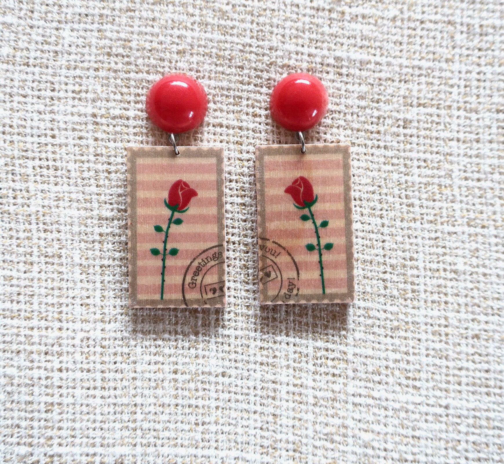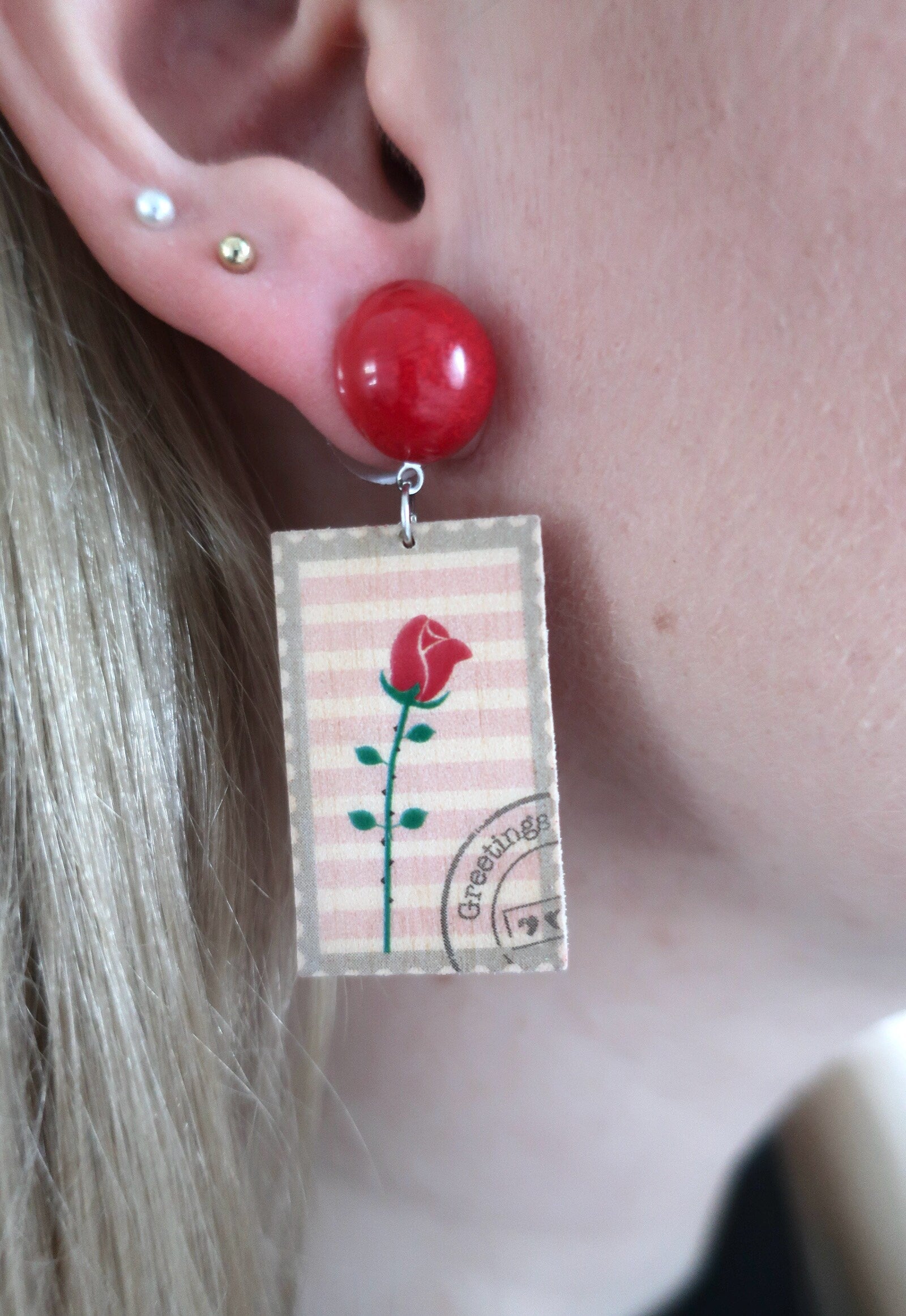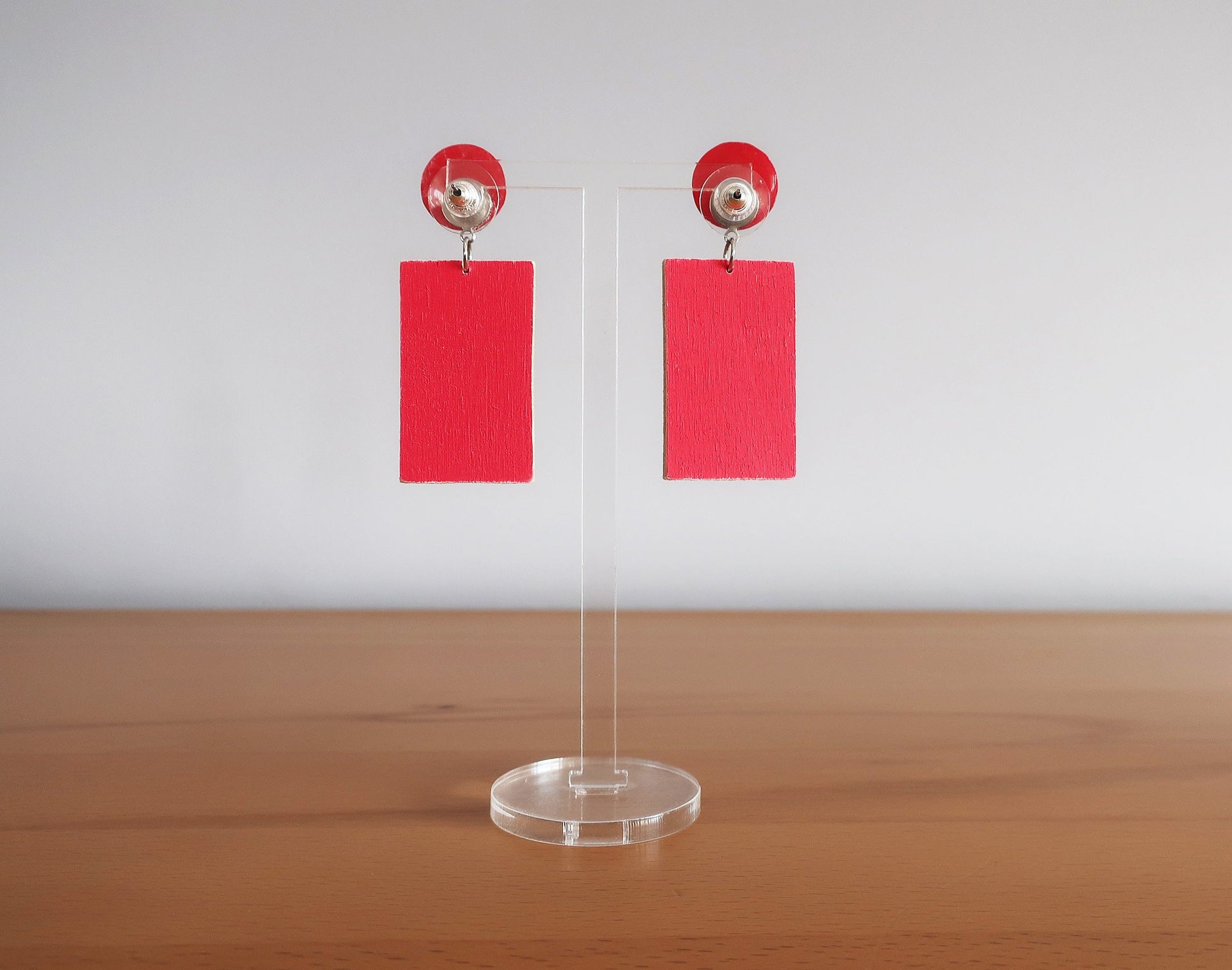 Für diese Ohrringe habe ich eine Zeichnung am Computer erstellt, die ich anschließend manuell auf Birkenholz übertragen und dann mit einer Dekupiersäge ausgesägt habe. Um die Haltbarkeit zu verbessern wurde eine Schicht matter Lack aufgetragen.