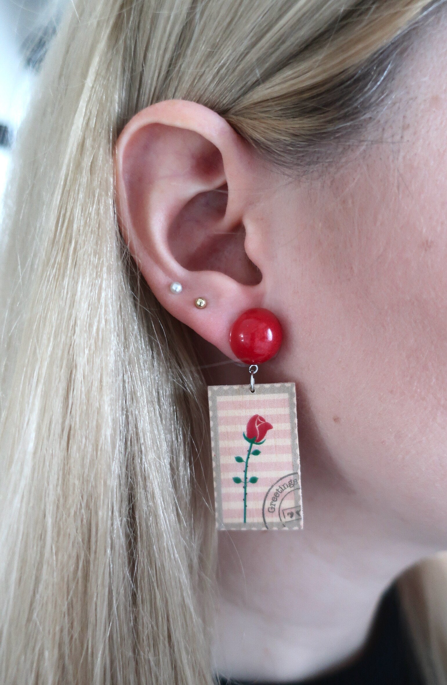 Die Ohrringe sind ungefähr 5,5 cm lang und 2,1 cm breit. Sie sind wirklich leicht.