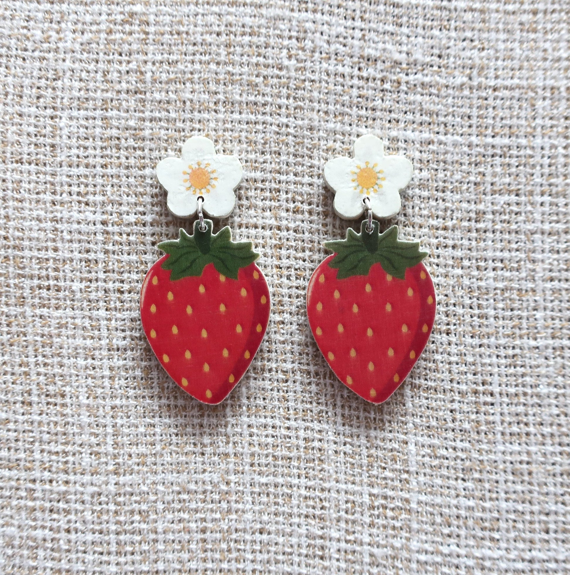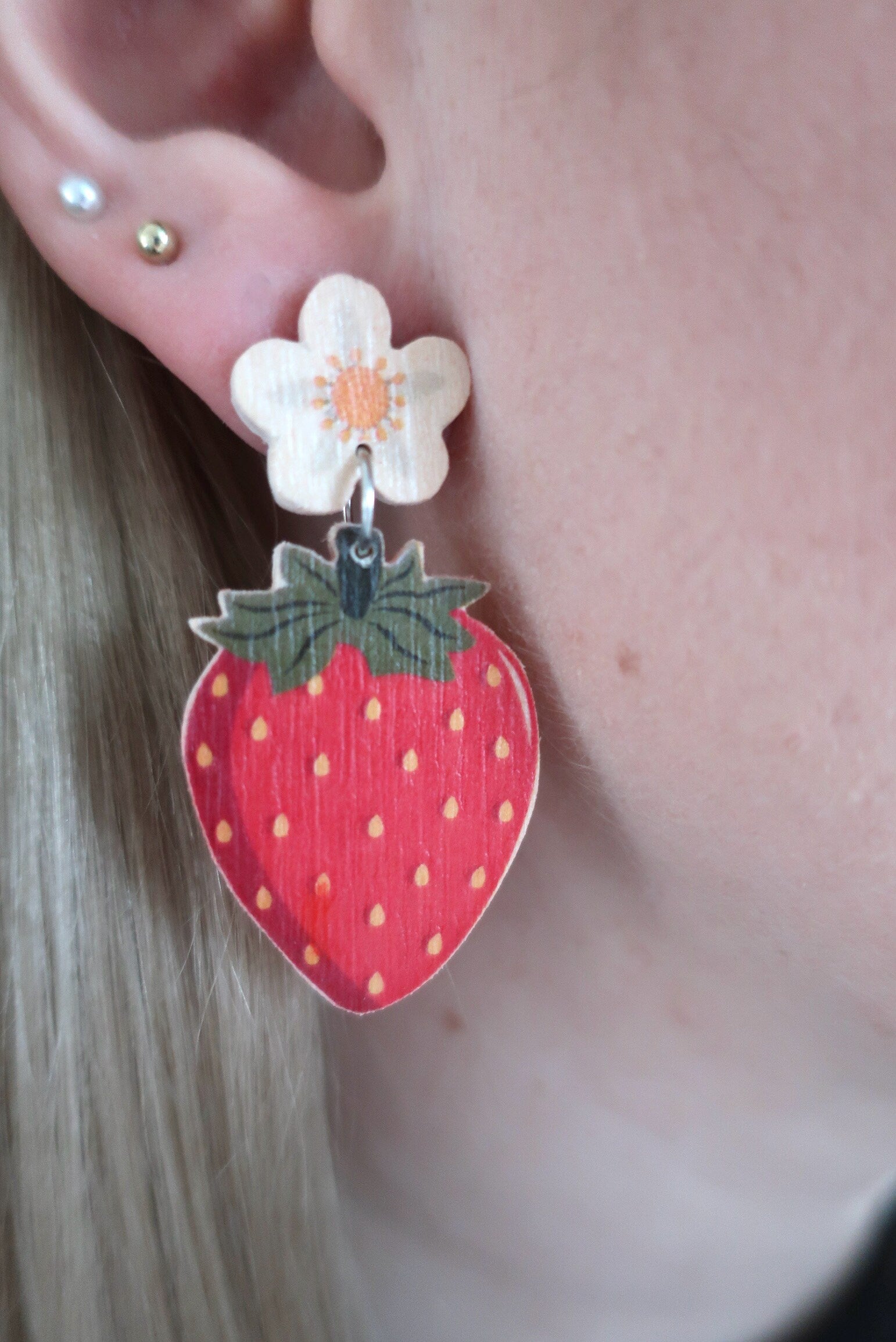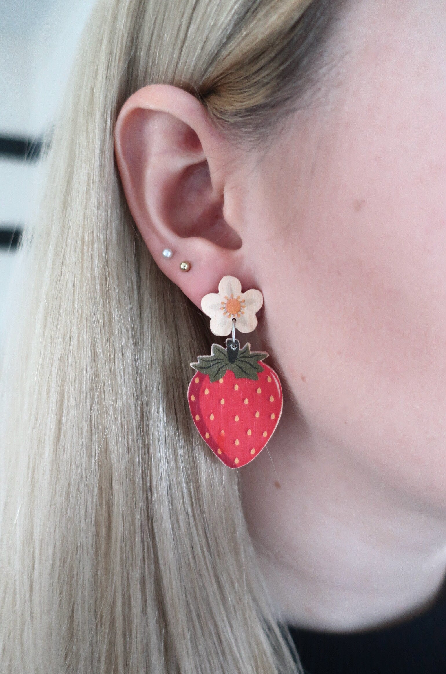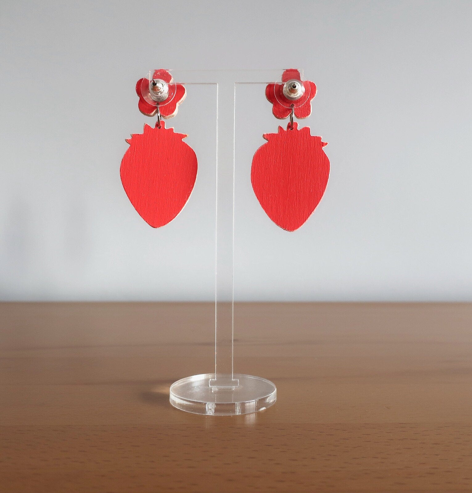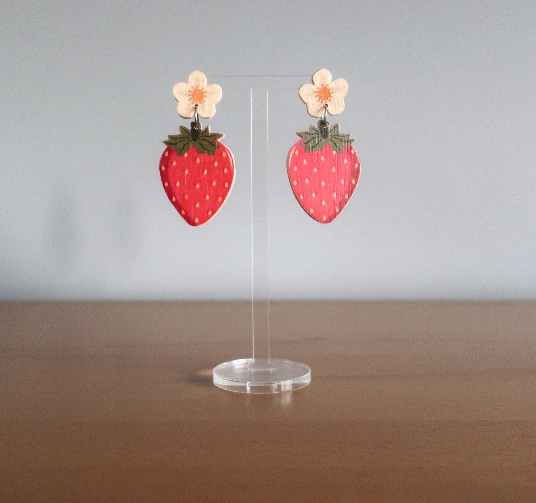 Für diese Ohrringe habe ich eine Zeichnung am Computer erstellt, die ich anschließend manuell auf Birkenholz übertragen und dann mit einer Dekupiersäge ausgesägt habe. Um die Haltbarkeit zu verbessern wurde eine Schicht matter Lack aufgetragen.