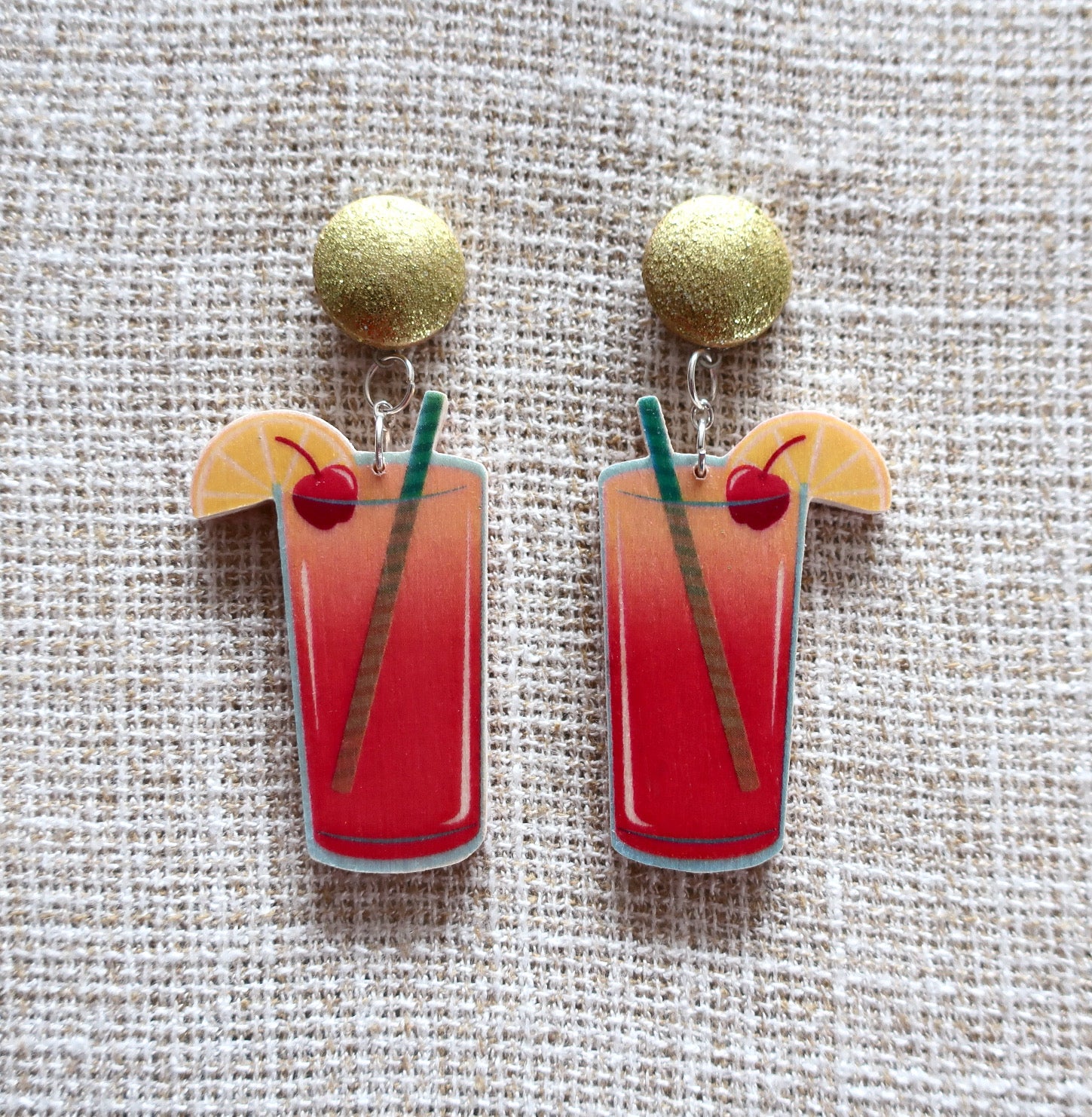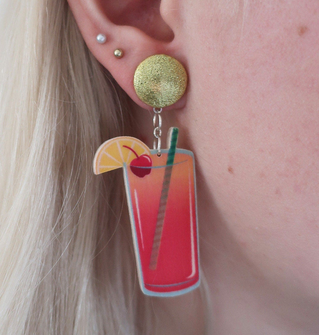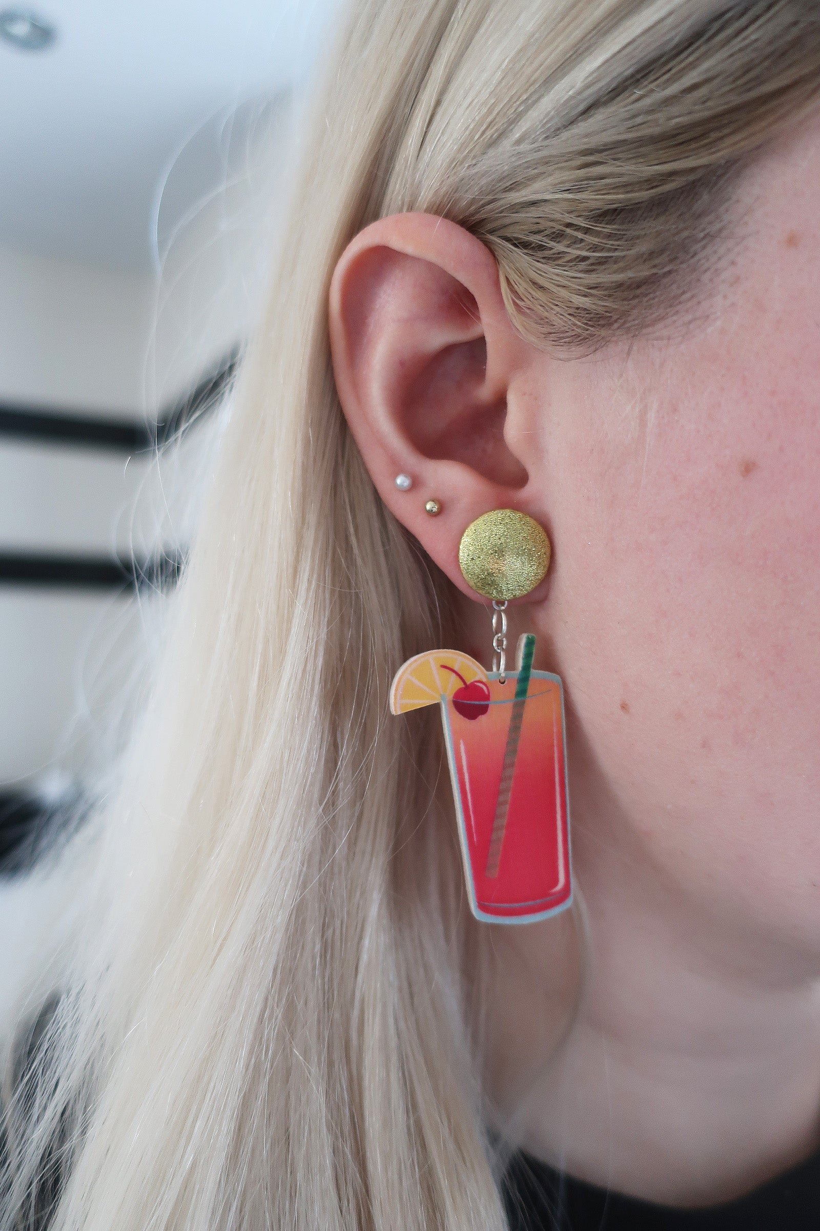 Die Stecker wurden aus mit goldener Glitzerfarbe bemalten Holzcabochons und Edelstahlsteckern gefertigt.